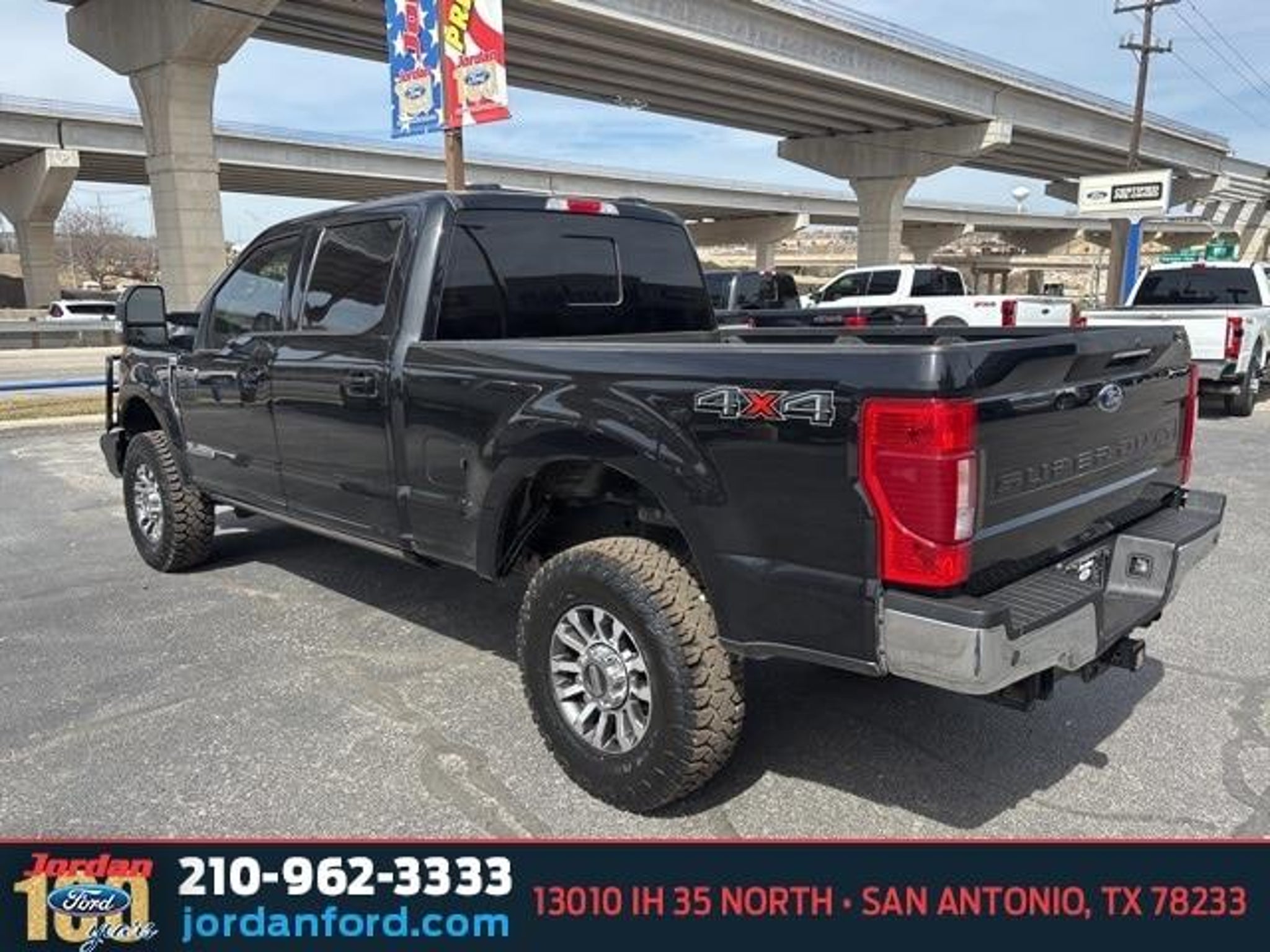 CARFAX One-Owner. Agate Black Metallic 2022 Ford F-250SD Lariat 4WD Power Stroke 6.7L V8 DI 32V OHV Turbodiesel 10-Speed Automatic 4WD, 10 Speakers, 4-Wheel Disc Brakes, ABS brakes, Adjustable pedals, Air Conditioning, Alloy wheels, AM/FM radio: SiriusXM with 360L, Ambient Lighting - Fixed Color, Auto High-beam Headlights, Auto-dimming Rear-View mirror, Automatic temperature control, Brake assist, Compass, Delay-off headlights, Driver door bin, Driver vanity mirror, Dual front impact airbags, Dual front side impact airbags, Easy Entry?/Exit Memory Driver's Seat Feature, Electronic Stability Control, Electronic-Locking w/3.31 Axle Ratio, Emergency communication system: SYNC 4 911 Assist, Exterior Parking Camera Rear, Flow-Through Console, Front anti-roll bar, Front Bucket Seats, Front Center Armrest, Front dual zone A/C, Front fog lights, Front Leather Seating Surfaces 40/Console/40, Front License Plate Bracket, Front reading lights, Fully automatic headlights, GVWR: 10,000 lb Payload Package, Heated door mirrors, Illuminated entry, Intelligent Access w/Push-Button Start, Lariat Ultimate Package, Leather steering wheel, LED Box Lighting, Low tire pressure warning, Memory Power-Adjustable Pedals, Navigation system: Connected Navigation, Order Code 608A, Outside temperature display, Overhead airbag, Overhead console, Panic alarm, Passenger door bin, Passenger vanity mirror, Power door mirrors, Power driver seat, Power Heated/Ventilated Driver Seat w/Memory, Power Heated/Ventilated Passenger Seat, Power passenger seat, Power steering, Power Telescoping/Tilt Steering Wheel/Column, Power windows, Power-Deployable Running Boards, PowerScope Trailer Tow Mirrors w/Heat, PowerScope Trailer Tow Mirrors w/Memory, Radio data system, Radio: B&O Sound System by Bang & Olufsen, Rear Parking Sensors, Rear reading lights, Rear seat center armrest, Rear step bumper, Rear window defroster, Remote keyless entry, Remote Start System, Remote Tailgate Release, Security system, SiriusXM Radio w/360L, Speed control, Split folding rear seat, Steering wheel mounted audio controls, SYNC 4 w/Enhanced Voice Recognition, Tachometer, Tailgate Step & Handle, Telescoping steering wheel, Tilt steering wheel, Traction control, Trip computer, Turn signal indicator mirrors, Variably intermittent wipers, Wheels: 18 Bright Machined Cast Aluminum. Call (210)653-3673 with any questions or to schedule a test drive! Jordan Ford has proudly served drivers in San Antonio, Texas, and surrounding areas like New Braunfels, Boerne, and Schertz for ov
