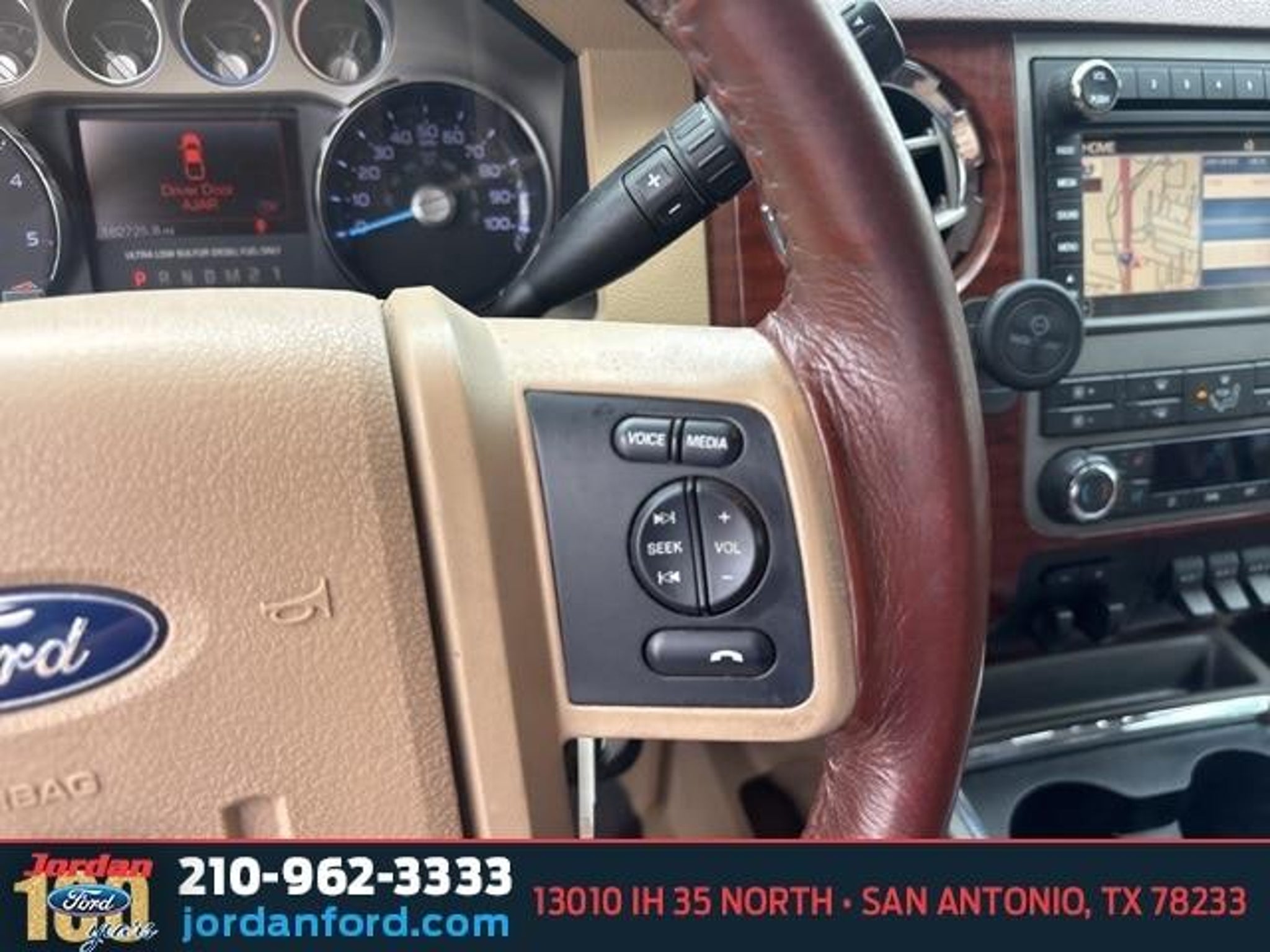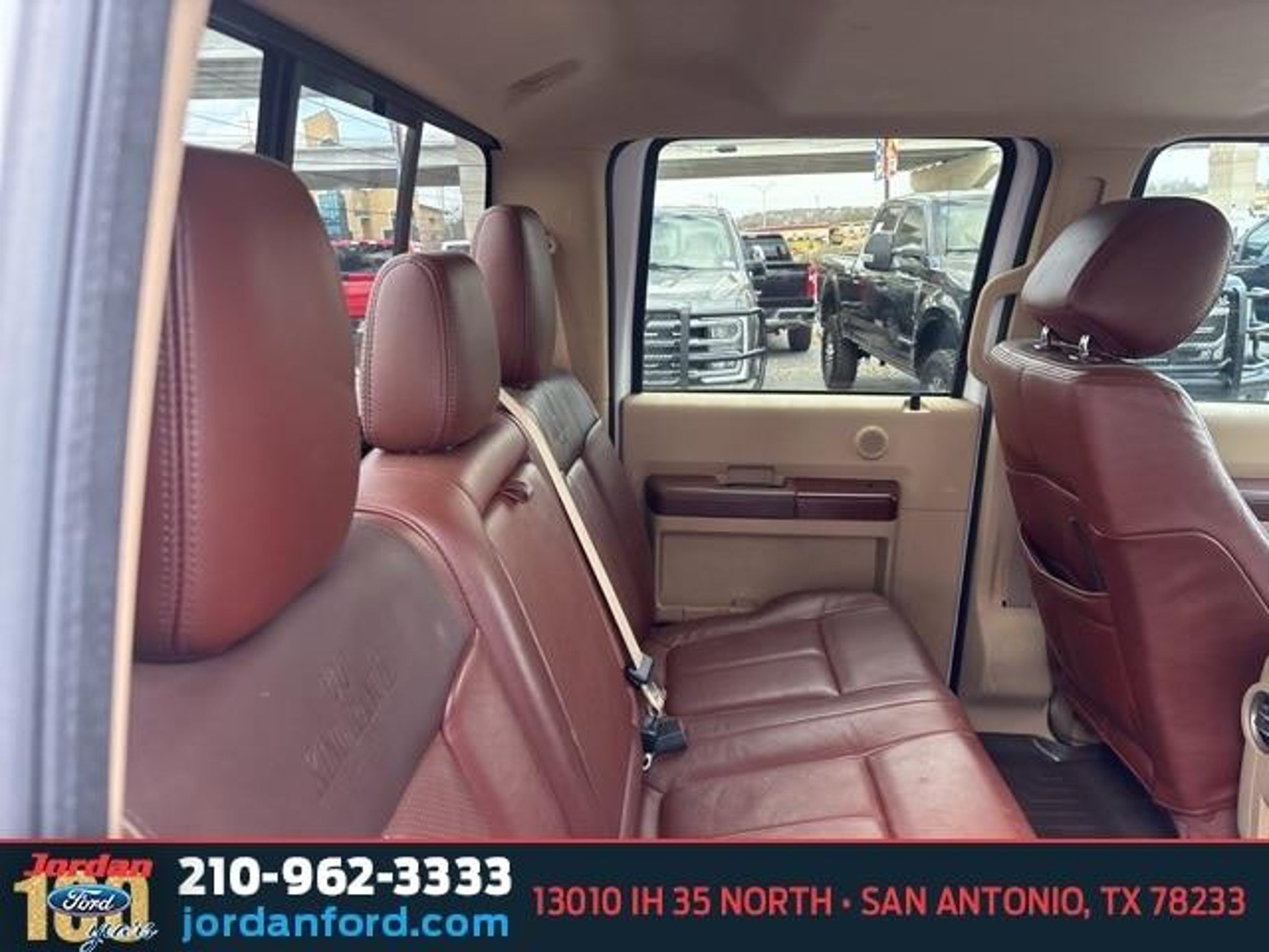 Clean CARFAX. Oxford White 2012 Ford F-350SD King Ranch DRW 4WD Power Stroke 6.7L V8 DI 32V OHV Turbodiesel TorqShift 6-Speed Automatic with Overdrive 4WD, 17 Forged Polished Aluminum Wheels, 3.73 Axle Ratio, 4-Wheel Disc Brakes, ABS brakes, Air Conditioning, Brake assist, Colored Front & Rear Rancho Branded Shocks, Dual front impact airbags, Dual front side impact airbags, Dual rear wheels, Engine Block Heater, Extra Heavy Duty 200-Amp Alternator, Front anti-roll bar, Front reading lights, FX4 Off-Road Package, GVWR: 13,300 lb Payload Package, Outside temperature display, Overhead airbag, Overhead console, Passenger vanity mirror, Power steering, Rear anti-roll bar, Rear reading lights, Rear step bumper, Split folding rear seat, Tachometer, Tailgate Step & Handle w/TailGate Assist, Telescoping steering wheel, Tilt steering wheel, Traction control, Upfitter Switches (4), Variably intermittent wipers. Call (210)653-3673 with any questions or to schedule a test drive! Jordan Ford has proudly served drivers in San Antonio, Texas, and surrounding areas like New Braunfels, Boerne, and Schertz for over 100 years. Since 1919, we?ve been dedicated to providing a simple, transparent car-buying experience with our Simple, Easy Menu Pricing?no hidden fees or surprises. Visit Jordan Ford, conveniently located at 13010 IH 35 North, San Antonio, TX 78233, to shop new Ford vehicles, quality used cars, or schedule expert Ford service today! Awards: * 2012 KBB.com Brand Image Awards