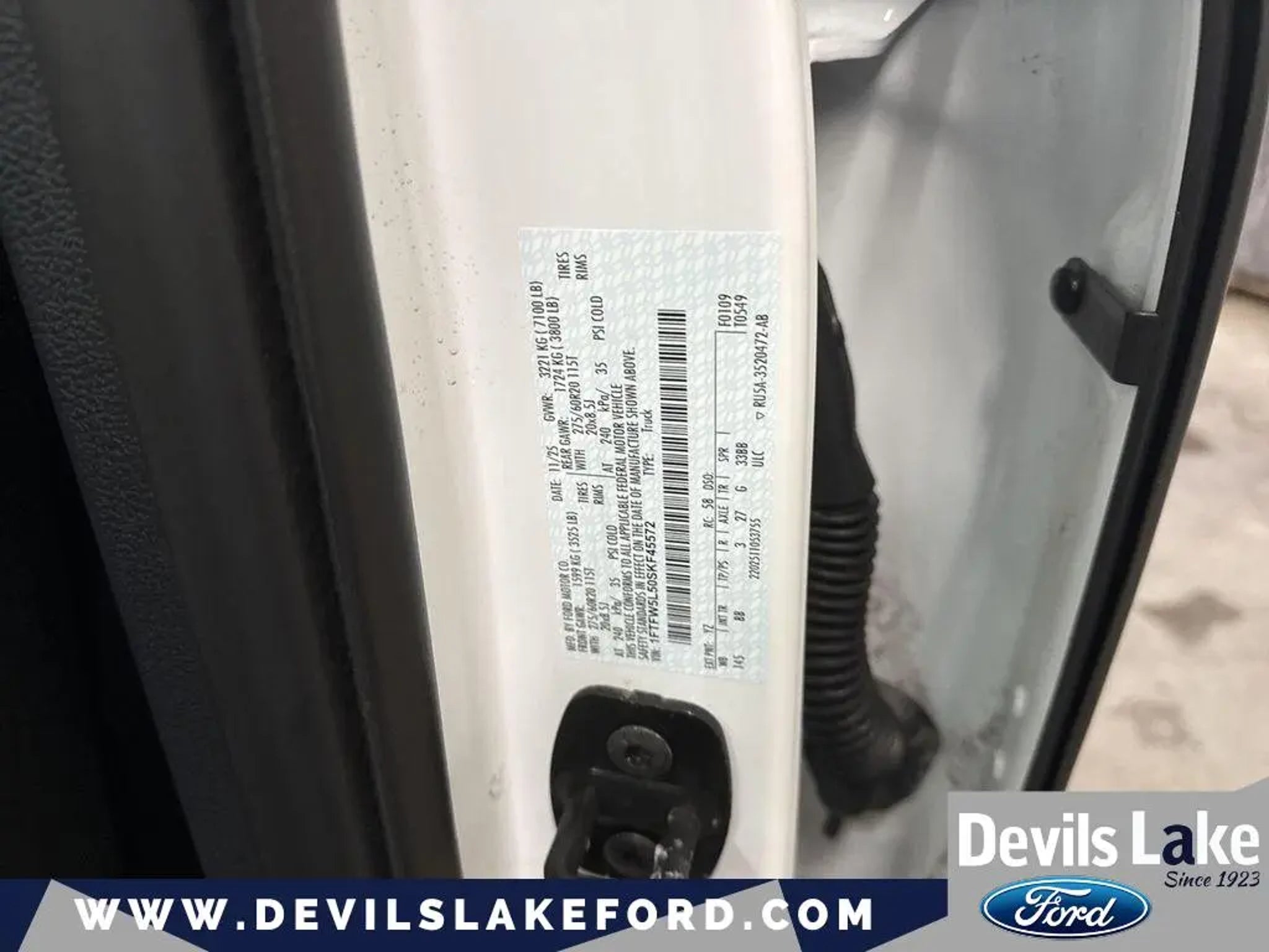 Summary Buy and Drive with Confidence - Devil's Lake Worry Free Guarantee - 3 Day / 300 Mile Return or Exchange, 3 Month / 3,000 mile coverage on powertrain, brakes, bulbs, batteries and tires $0 Deductible. 750 4.8 STARS POSITIVE REVIEWS ON GOOGLE. See why people from all over the country do business with us! Serving North Dakota for over 100 years! Fast, Easy and Great Vehicles. Vehicle Details Price reflects dealer discount and manufacturer rebates. Price does not include Taxes, Titling and doc fee of $299. We reserve the right to correct errors in pricing and erroneous pricing data on third party web sites. Equipment This vehicle offers Apple CarPlay for seamless connectivity. The Ford F-150 features a hands-free Bluetooth phone system. The leather seats in this unit are a must for buyers looking for comfort, durability, and style. You'll never again be lost in a crowded city or a country region with the navigation system on this Ford F-150. This vehicle offers Android Auto for seamless smartphone integration. This 1/2 ton pickup is pure luxury with a heated steering wheel. The Ford F-150 warns of approaching vehicles with Cross-Traffic Alert. Never get into a cold vehicle again with the remote start feature on the Ford F-150. Protect this 2025 Ford F-150 from unwanted accidents with a cutting edge backup camera system. The vehicle has automated speed control that adjusts to maintain a safe following distance, enhancing highway driving convenience. Maintaining a stable interior temperature in this unit is easy with the climate control system. Packages Lariat Black Appearance Package: Black Grille; ActiveX Trimmed Bucket Seats; Black Exterior Badging; Gray Box Side Decal; Body-Color Front and Rear Bumpers; Body-Color Skull Caps and Door Handles; Black Taillamp Bezels; Matte Black Tailgate F-150 Decal; Dark Interior Appliques. Equipment Group 501A Mid: 5.0L V8 Engine; Power-Sliding Rear Window; Electronic 10-Speed Automatic Transmission; 7. 100 lbs Payload Package GVWR; 3.31 Axle Ratio; 6 Angular Bright Anodized Step Bar; B&O Sound System by Bang and Olufsen; Illuminated Driver and Passenger Visors; 275/60R20 All-Terrain Tires. 6 Angular Bright Anodized Step Bar. BlueCruise Equipped (1year Plan). **Equipment listed is based on original vehicle build and subject to change. Please confirm the accuracy of the included equipment by calling the dealer prior to purchase.**