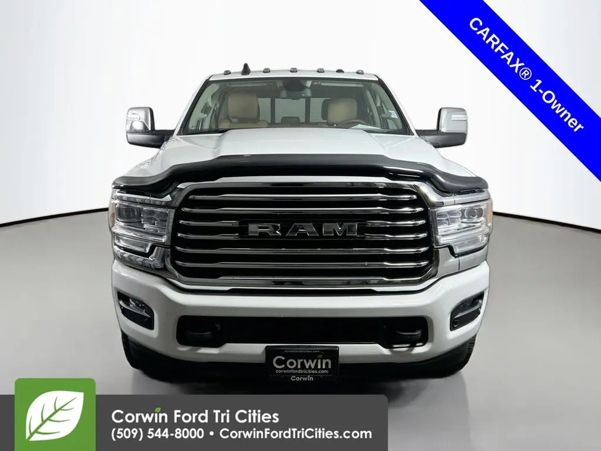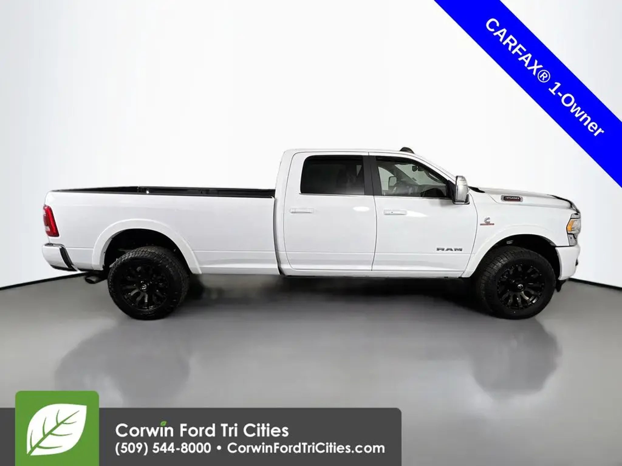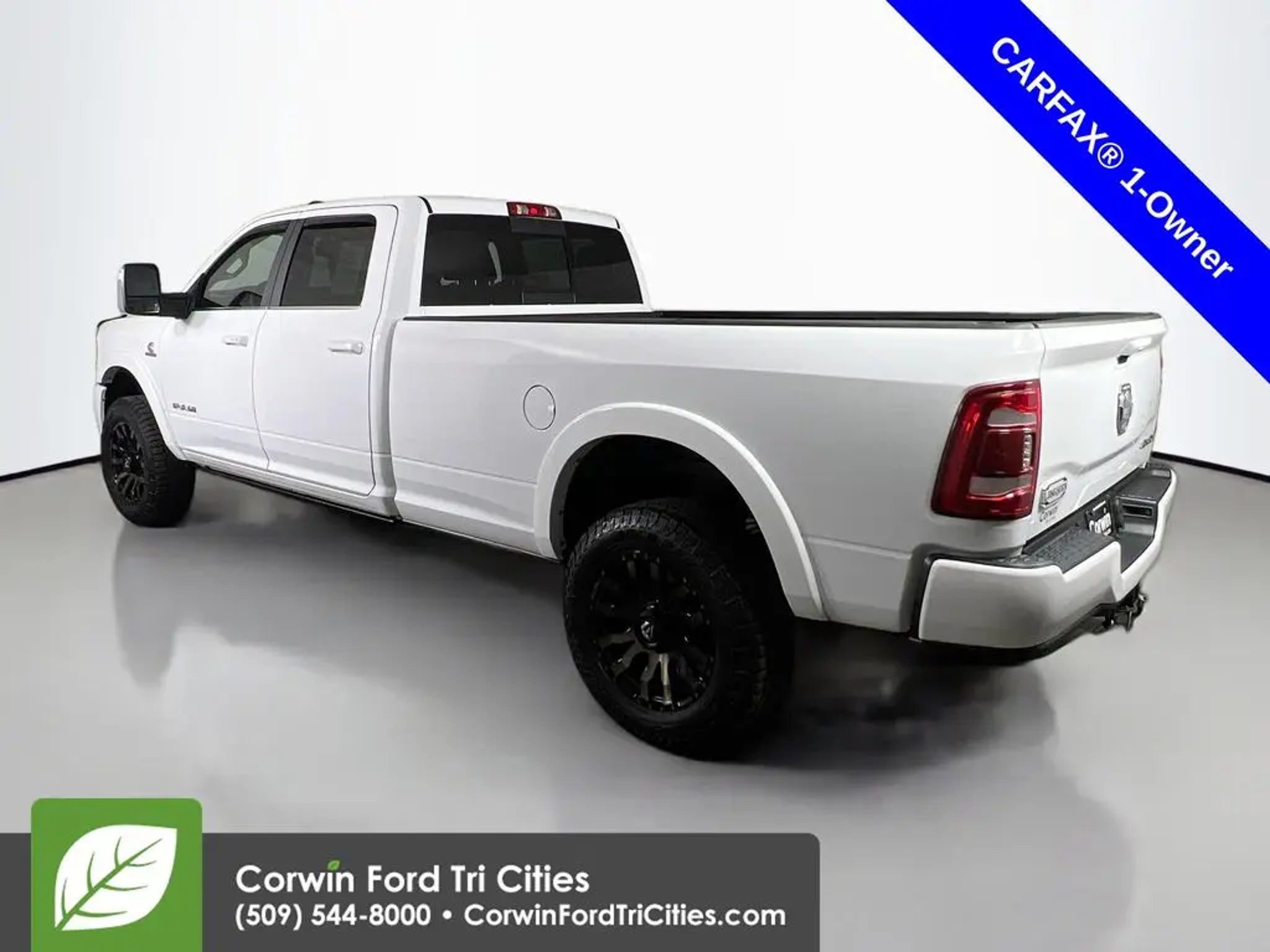 Our Diesel-powered, Accident Free, One Owner 2023 RAM 3500 Limited Longhorn Crew Cab Long Box 4X4 with the Level 1 Pack combines strength and style to stand out from the crowd in Bright White! Motivated by a TurboCharged 6.7 Liter High Output Cummins Diesel 6 Cylinder that generates 420hp and 1075lb-ft of torque for a 6 Speed Aisin Automatic transmission. This Four Wheel Drive truck also inspires confidence with heavy-duty shocks and an anti-spin rear differential, and it turns heads with an exclusive Longhorn grille, chrome side steps, power sunroof, bold black aftermarket wheels, full LED lighting, and our Level 1 Pack for a Mopar spray-in bedliner. Authentic Southwestern design greets you in our Limited Longhorn cabin with heated/ventilated leather power front and heated rear seats, a heated leather steering wheel, dual-zone automatic climate control, a power sliding rear window, and genuine barn-wood accents. Our Level 1 Pack upgrades infotainment with a 12-inch touchscreen, full-color navigation, voice control, wireless charging, Off-Road/Trailer-Tow Pages, WiFi compatibility, Android Auto®, Apple CarPlay®, Bluetooth®, and Harman Kardon audio. RAM supplies key features to help keep you safe, including our Level 1 Pack that adds trailer blind-spot monitoring, to a backup camera, parking sensors, ABS, stability/traction control, hill-start assistance, tire pressure monitoring, trailer-sway control, and more. You're well-prepared for what comes next in our 3500 Limited Longhorn! Save this Page and Call for Availability. We Know You Will Enjoy Your Corwin Ford Tri-City Test Drive Towards Ownership! See us today at Corwin Ford Tri-Cities. Family owned for over 100 years! Excellent selection of New and Used vehicles, Financing options. Serving Pasco, Kennewick, Richland, Walla Walla, Hermiston, Umatilla, Yakima, Spokane, Sunnyside, Grandview, Dayton, Prescott, Benton County, Franklin County, Yakima County, Spokane County, Adams County, Grant County, and the Greater Columbia Basin. *All Prices plus applicable sales tax and licensing. A negotiable documentary service fee up to $200 may be added to sales price or capitalized cost of the vehicle. One vehicle unless otherwise noted and subject to prior sale without notice. While supplies last. EPA mileage estimates are for newly manufactured vehicles only. Your actual mileage will vary depending on how you drive and maintain your vehicle.