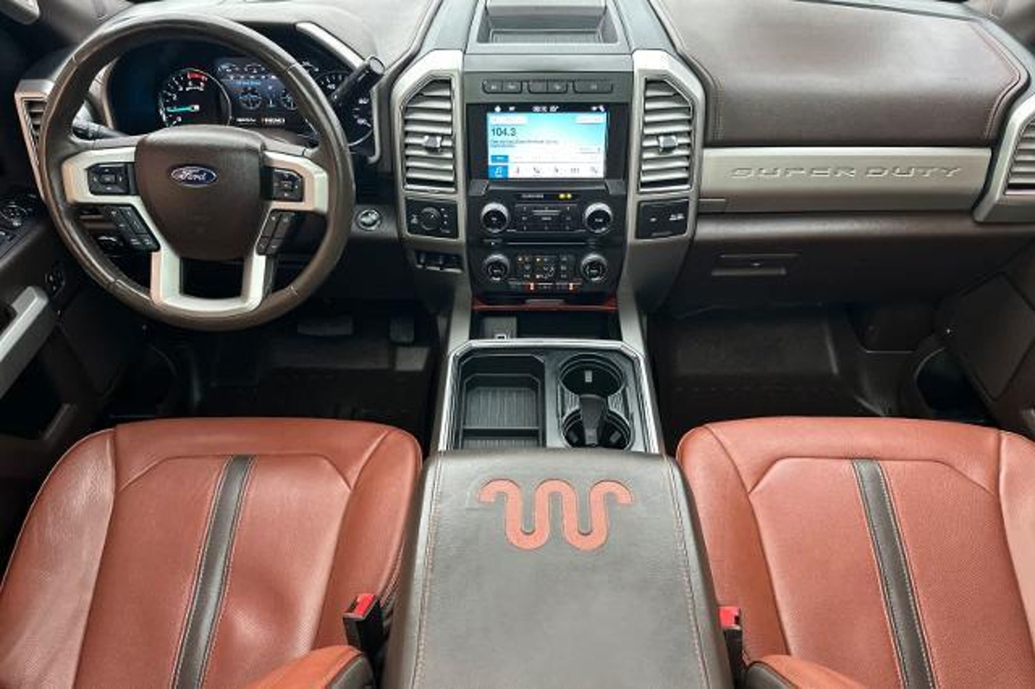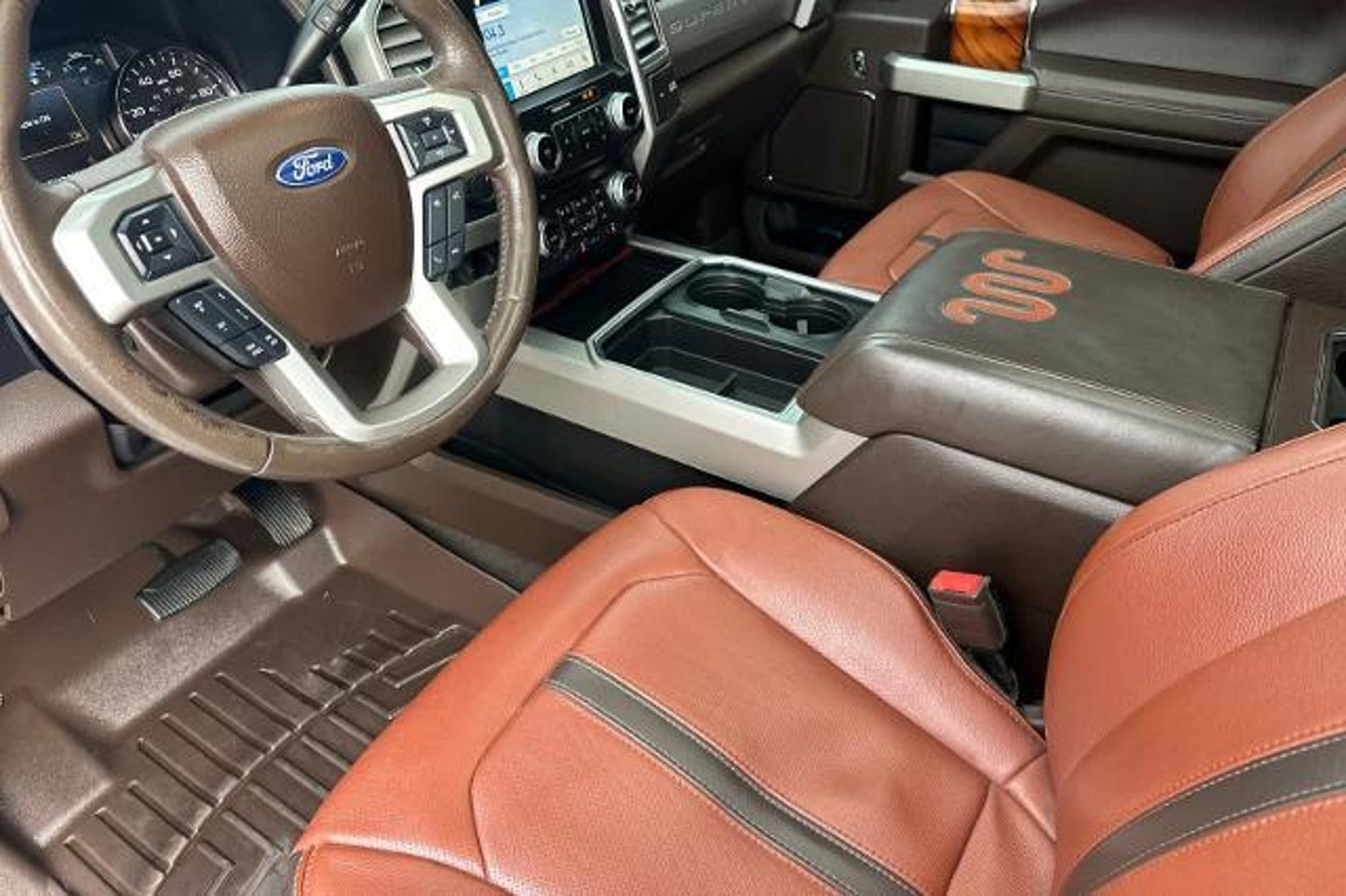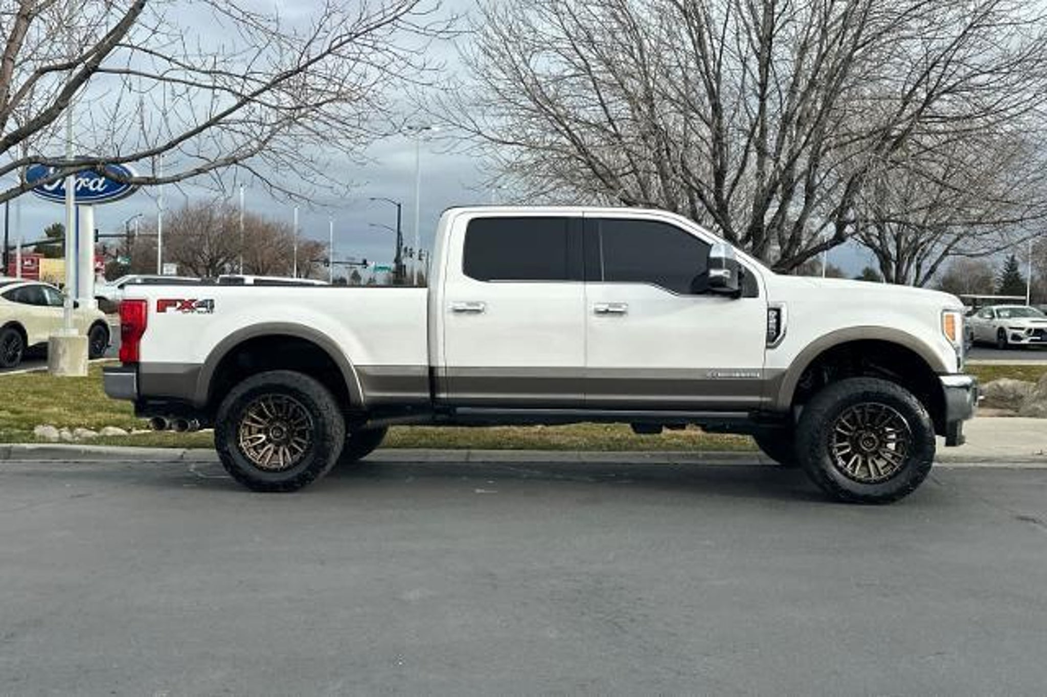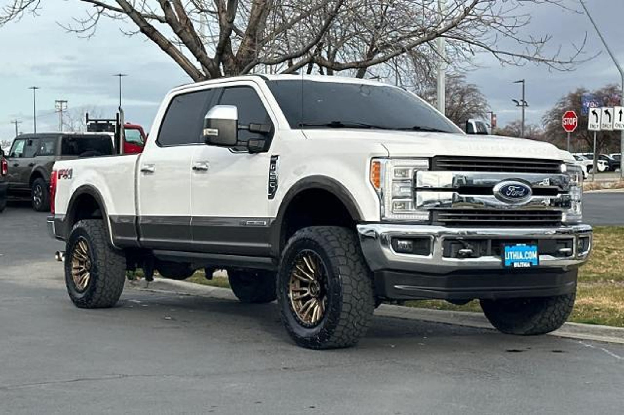 Heated/Cooled Leather Seats, Navigation, 4x4, Alloy Wheels, Bed Liner, Trailer Hitch, ENGINE: 6.7L 4V OHV POWER STROKE V8 TURBO DIESEL B20, ENGINE: 6.7L 4V OHV POWER STROKE V8 T... KING RANCH ULTIMATE PACKAGE, CHROME PACKAGE CLICK ME! KEY FEATURES INCLUDE Leather Seats, Navigation, 4x4, Heated Driver Seat, Cooled Driver Seat, Premium Sound System, Satellite Radio, iPod/MP3 Input, Onboard Communications System, Trailer Hitch, Aluminum Wheels, Remote Engine Start, Dual Zone A/C, WiFi Hotspot, Apple CarPlay MP3 Player, Keyless Entry, Privacy Glass, Child Safety Locks, Steering Wheel Controls. OPTION PACKAGES ENGINE: 6.7L 4V OHV POWER STROKE V8 TURBO DIESEL B20 manual push-button engine-exhaust braking and intelligent oil-life monitor, Extra Heavy-Duty 220 Amp Alternator, 34 Gallon Fuel Tank, 3.31 Axle Ratio, Dual 78-AH 750 CCA Batteries, KING RANCH ULTIMATE PACKAGE Twin Panel Power Moonroof, map lights and moonroof switches, Blind Spot Information System (BLIS), cross-traffic alert and trailer tow (BLIS sensor in taillamp), Tailgate Step & Handle, Quad Beam LED Headlamps & LED Taillamps, LED fog lamps and LED Center High-Mounted Stop Lamp (CHMSL), Power-Deployable Running Boards, Multi-Contour Seats, CHROME PACKAGE 2 front chrome tow hooks and chrome rear tailgate applique, Unique Chrome Mirror Caps, Chrome Front & Rear Bumpers, Wheels: 18 Chrome PVD Aluminum, light caribou wheel ornaments w/King Ranch logo, Body-Color Door Handles w/Chrome Insert, 6 Angular Chrome Step Bars, Chrome Exhaust Tip, ADAPTIVE CRUISE CONTROL & COLLISION WARNING brake support, ULTIMATE TRAILER TOW CAMERA SYSTEM 360 degree camera system and trailer reverse guidance, Display appears in center-stack screen, NOTE: Does not include customer placed trailer camera, Rear CHMSL Camera, Display in center stack screen, LED Center High-Mounted Stop Lamp (CHMSL) w/cargo light and rear video camera, TOUGH BED SPRAY-IN BEDLINER tailgate-guard, black box bed tie-down hooks, black bed attachment bolts and BoxLink mounting plates, ELECTRONIC-LOCKING W/3.55 AXLE RATIO, TRANSMISSION: TORQSHIFT 6-SPEED AUTOMATIC (6R140), SelectShift. 2018 Ford Super Duty F-250 Pickup with White Platinum Metallic Tri-Coat/Stone Gray exterior and Java interior features a 8 Cylinder Engine with 450 HP at 2800 RPM*. EXPERTS ARE SAYING Thanks to its stout engine and chassis, the F-250 is capable of taking on just about anything. Whether its hauling heavy loads or taking the family to dinner, the Super Duty impresses with its smooth ride and responsive powertrain. -Edmun