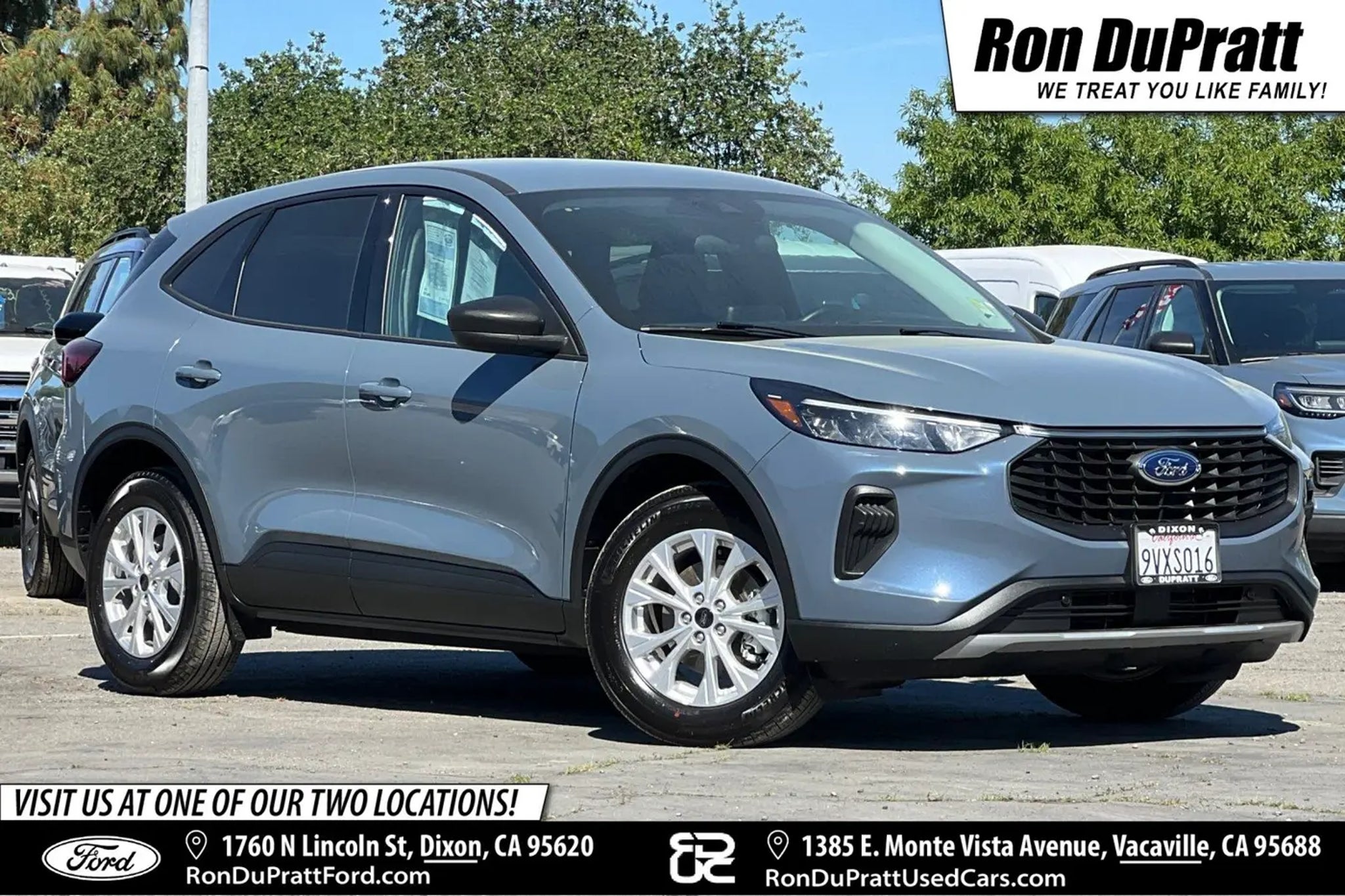 2025 Ford Escape Active 4D Sport Utility FWD CLOTH SEATS, KEY LESS ENTRY, PUSH TO START, BLUETOOTH, APPLE CARPLAY, ANDROID AUTO, BACKUP/REARVIEW CAMERA, BLIND SPOT ALERT, LANE KEEP ASSIST, COLLISION ALERT, POWER LIFTGATE, FACTORY WHEELS, DUAL TIP EXHAUST. Recent Arrival! Clean CARFAX. DEAL #1: MSRP $31,640 MINUS $5,000 MODEL YEAR CLOSE OUT, MINUS $1,000 DUPRATT DIXON DISCOUNT FOR A NET SALES PRICE $25,640* DEAL #2: MSRP $31,640 MINUS $1,000 DISCOUNT FOR A NET SALES PRICE OF $30,640 PLUS FINANCE INCENTIVE 3.9% FOR 72 MONTHS FOR WELL QUALIFIED BUYERS THRU FORD MOTOR CREDIT* *BOTH OFFERS EXPIRE MARCH 31, 2026 AND THEY CANNOT BE COMBINED SEE DEALER FOR DETAILS. Ron DuPratt Ford has been serving Northern California since 1956! Family owned and operated, we are one of the fastest growing Ford dealerships in Northern California, and specialize in affordable vehicles with an excellent selection for you to choose from. Don't take it from us - check out all of our satisfied customers: Google 4.4 stars, Edmunds 5 Star Dealer, Car Gurus 5 Star Dealer, and 12 time Ford President's Award winner. Serving Davis, Vacaville, Fairfield, Woodland, Winters, Elk Grove, West Sacramento, Roseville, Rocklin and Vallejo California. Our friendly staff is fun, approachable, and very knowledgeable. We are trained to help you find the right financing and appropriate vehicle that meets your needs.