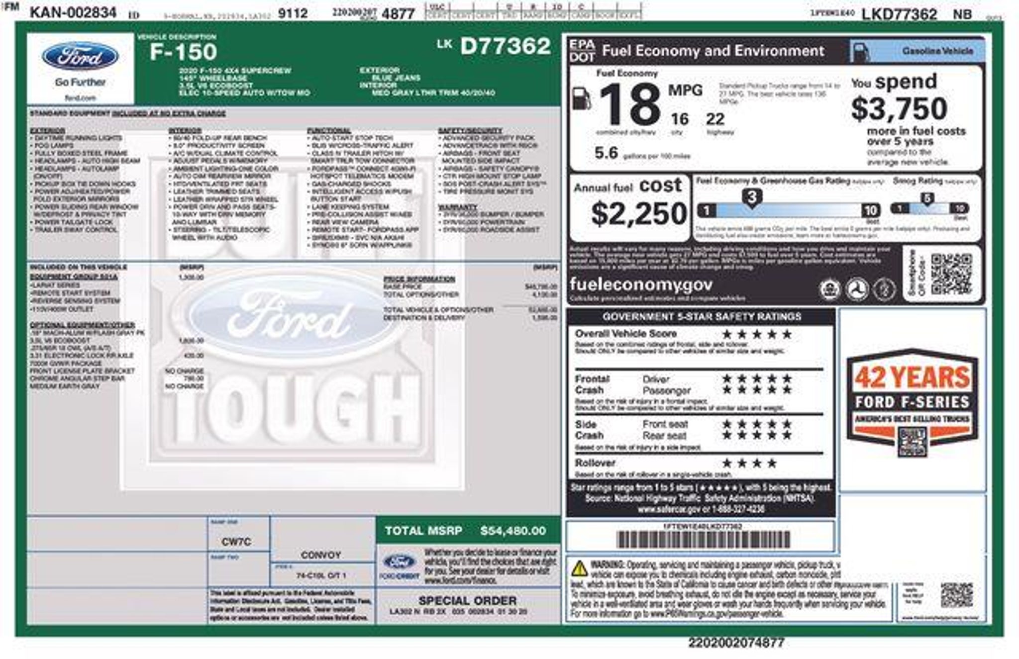 Recent Arrival! Our fantastic 2020 Ford F-150 Lariat SuperCrew 4X4 in Blue Jeans is ready for action! Powered by a Twin-TurboCharged 3.5 Liter EcoBoost V6 that offers 375hp connected to a 10 Speed Automatic transmission for incredible towing and payload capacity. Master each day with robust performance in our Four Wheel Drive truck that also delivers nearly 22mpg on the highway. Our Ford F-150 shows off LED lighting, fog lamps, chrome bumpers, alloy wheels, a SecuriCode keypad, and heated power-folding mirrors for style and substance. Check out our bold Lariat cabin, and you'll find that it pampers you with heated/cooled leather front seats, a heated leather steering wheel, dual-zone automatic climate control, ambient lighting, a power sliding rear window, power-adjustable pedals, keyless access/ignition, multiple power points, and a customizable productivity screen to help you work smarter. Making connections is easy with SYNC technology that has almost everything you need for staying in touch and informed with an 8-inch touchscreen, Android Auto®/Apple CarPlay®, voice recognition, WiFi compatibility, and an impressive sound system! Ford offers superior safety with high-tech benefits such as automatic emergency braking, a blind-spot monitor, lane-keeping assistance, and a backup camera for your peace of mind. Feel free to flex with our first-class F-150 Lariat. Save this Page and Call for Availability. We Know You Will Enjoy Your Corwin Ford Spokane Test Drive Towards Ownership! See us today at Corwin Ford Spokane. Family owned for over 100 years! Excellent selection of New and Used vehicles, Financing options. Serving Spokane, Pasco, Kennewick, Richland, Walla Walla, Hermiston, Umatilla, Yakima, Sunnyside, Grandview, Dayton, Prescott, Denton County, Franklin County, Yakima County, Spokane County, Adams County, Grant County, and the Greater Columbia Basin. *All Prices plus applicable sales tax, license, and a negotiable documentary service fee up to $200 may be added to sales price or capitalized cost of the vehicle. One vehicle unless otherwise noted and subject to prior sale without notice. While supplies last. EPA mileage estimates are for newly manufactured vehicles only. Your actual mileage will vary depending on how you drive and maintain your vehicle.