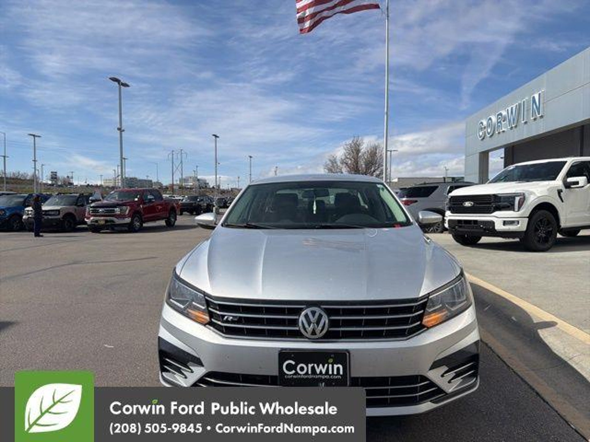 2017 Volkswagen Passat 1.8T R-Line Available at Corwin Ford Nampa located in the Idaho Center Auto Mall. Clean CARFAX. 2017 Volkswagen Passat 1.8T R-Line FWD 1.8L TSI Silver 23/34 City/Highway MPG Corwin Ford Nampa! Based upon current new inventory shortages, deals subject to dealer approval based upon trade, loyalty, and proximity to dealership. Friendly service and aggressive pricing is why we are your new and pre-owned vehicle dealer serving, Nampa, Boise, Meridian, Caldwell, Kuna, Eagle, Emmett, Idaho City, Wilder, New Plymouth, Star, Middleton, Weiser, Payette, Horseshoe Bend, Mountain Home, Idaho, and surrounding states. Although every reasonable effort has been made to ensure the accuracy of the information contained on this site, absolute accuracy cannot be guaranteed. This site, and all information and materials appearing on it, are presented to the user as is without warranty of any kind, either express or implied. All vehicles are subject to prior sale. Price does not include applicable tax, title, and $499 Dealer Documentation. Awards: * 2017 IIHS Top Safety Pick * 2017 KBB.com 10 Best Used Cars Under $20,000 * 2017 KBB.com 10 Most Comfortable Cars Under $30,000