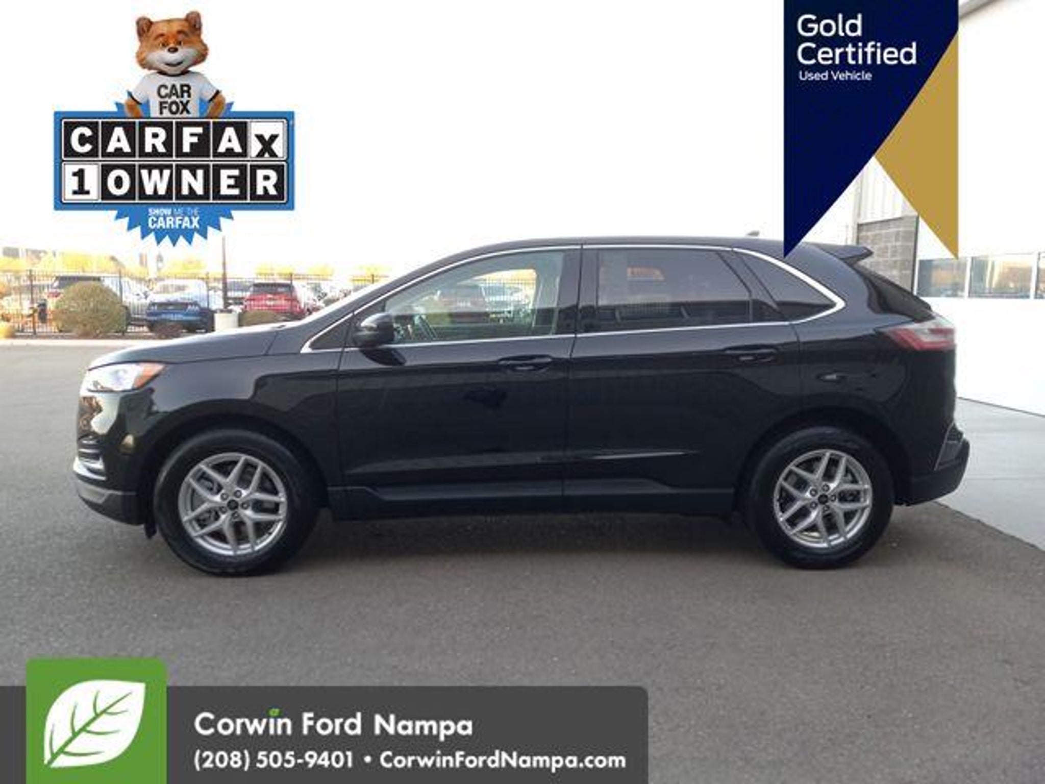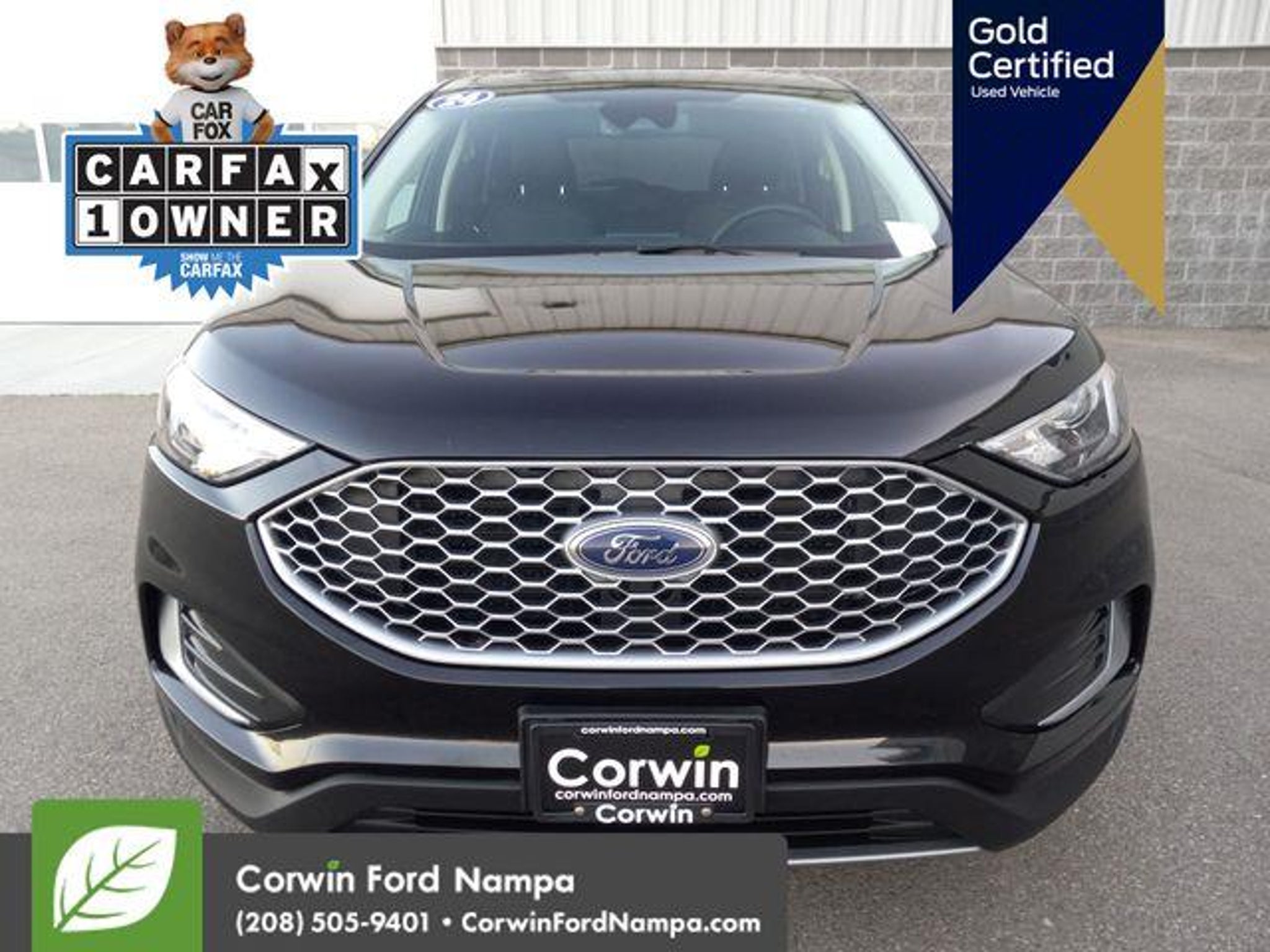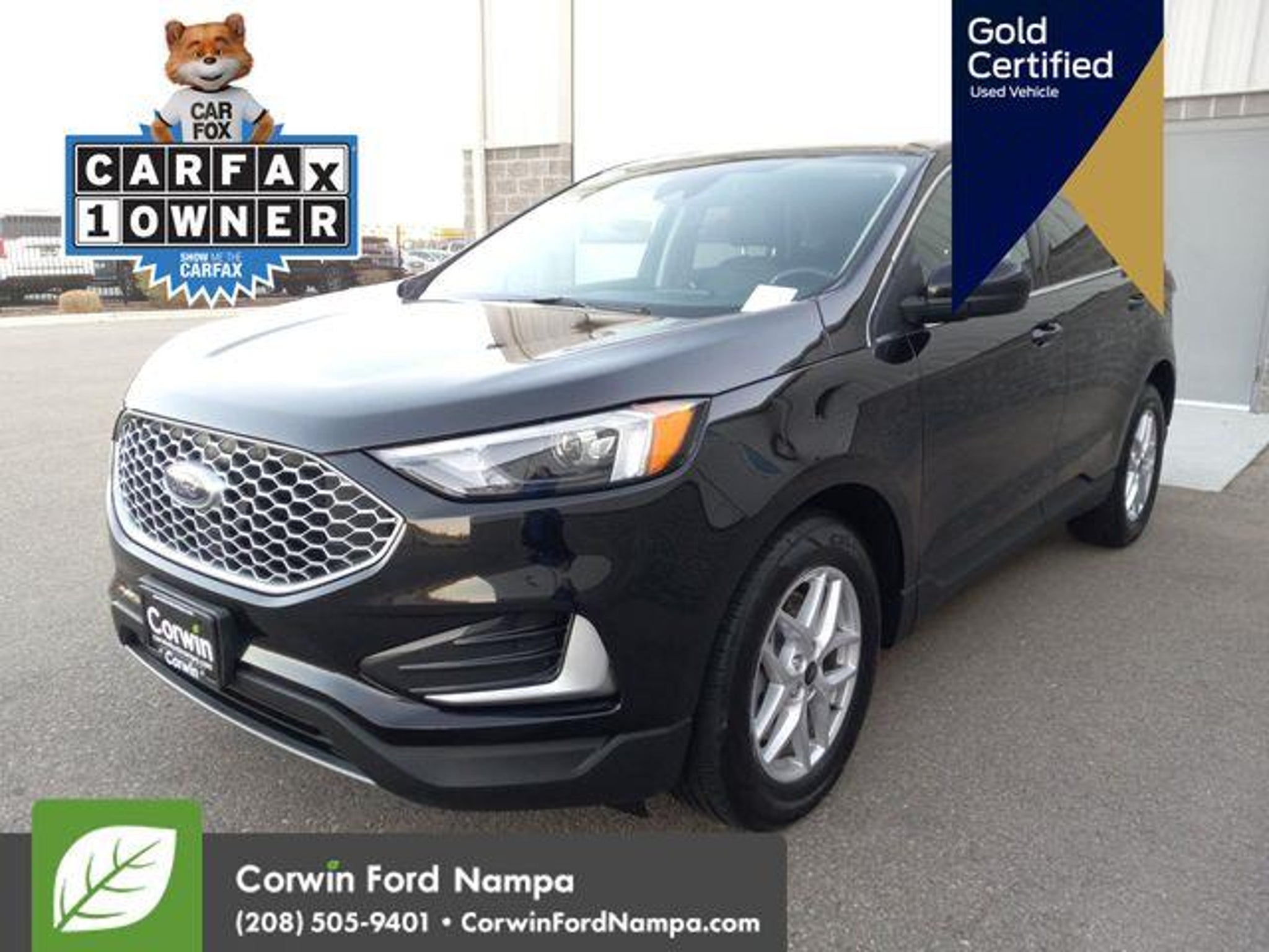 Introducing our fun to drive Certified, One Owner 2024 Ford Edge SEL AWD that's ready for adventure in Agate Black Metallic! Motivated by a TurboCharged 2.0 Liter EcoBoost 4 Cylinder offering 250hp to an 8 Speed Automatic transmission with a rotary gear shifter. Take command of this All Wheel Drive SUV to enjoy confident capability, responsive handling, and the ability to return nearly 28mpg on the highway. Sophisticated details help our Edge make a dramatic impression with signature LED lighting, fog lamps, heated power mirrors, dual integrated exhaust outlets, bright beltline moldings, and alloy wheels. Our SEL cabin brings you rewarding amenities for life on the road, including heated ActiveX power front seats, a leather-wrapped steering wheel, dual-zone automatic climate control, keyless access, pushbutton ignition, dual 4.2-inch driver display, and exclusive SYNC infotainment technology. Use that with the 12-inch touchscreen and voice control to manage WiFi compatibility, Android AutoÂ/Apple CarPlayÂ, BluetoothÂ, and a six-speaker audio system with SiriusXM compatibility. Ford safeguards your journeys with smart Co-Pilot360 systems like automatic braking, blind-spot monitoring, lane-keeping assistance, a rearview camera, hill-start assistance, tire-pressure monitoring, Safety Canopy airbags, and more! Own our Edge SEL and cut through the crowd in style! Save this Page and Call for Availability. We Know You Will Enjoy Your Test Drive Towards Ownership! Corwin Ford Nampa! Friendly service and aggressive pricing is why we are your new and pre-owned vehicle dealer serving, Nampa, Boise, Meridian, Caldwell, Kuna, Eagle, Emmett, Idaho City, Wilder, New Plymouth, Star, Middleton, Weiser, Payette, Horseshoe Bend, Mountain Home, Idaho, and surrounding states.