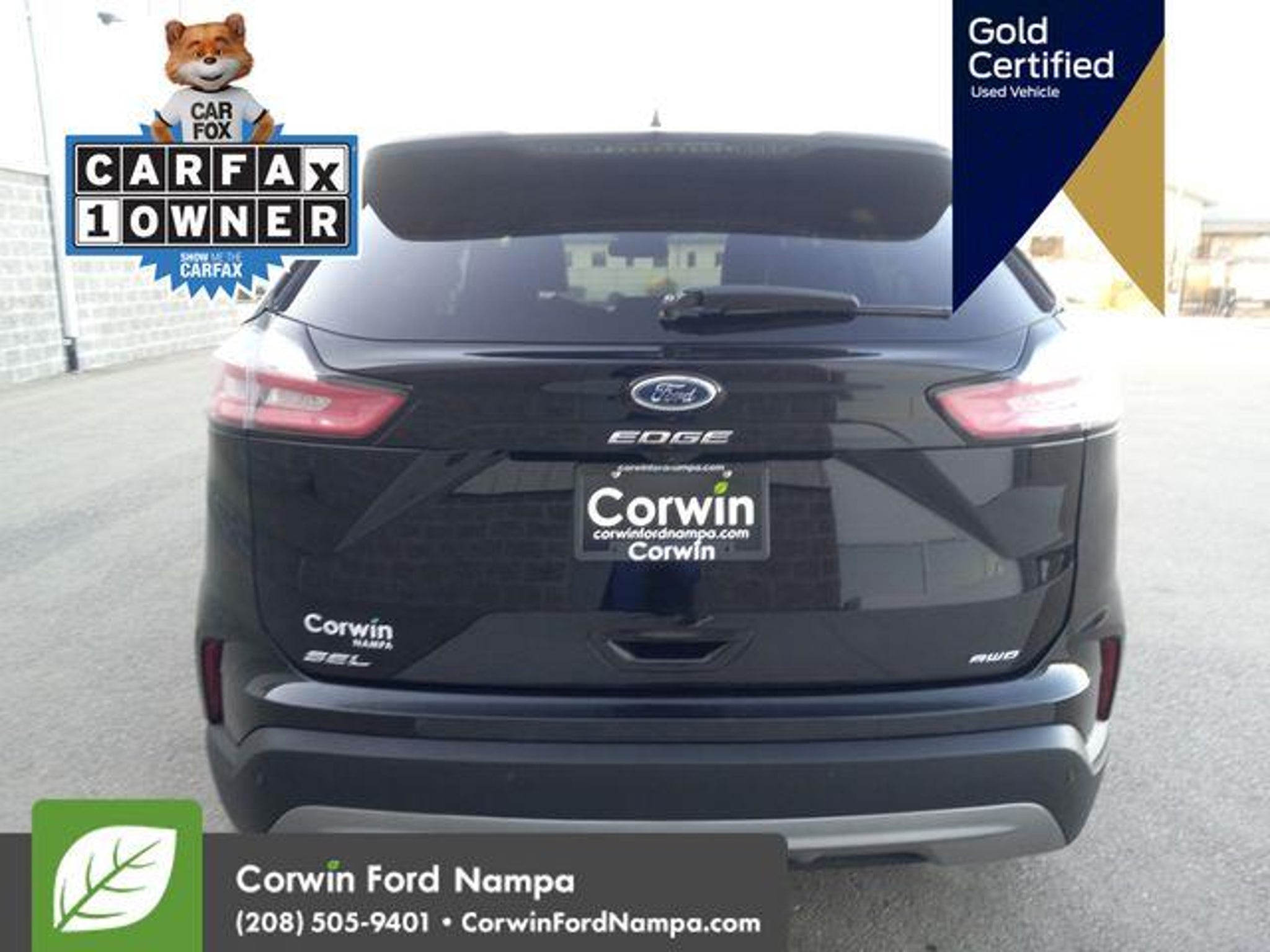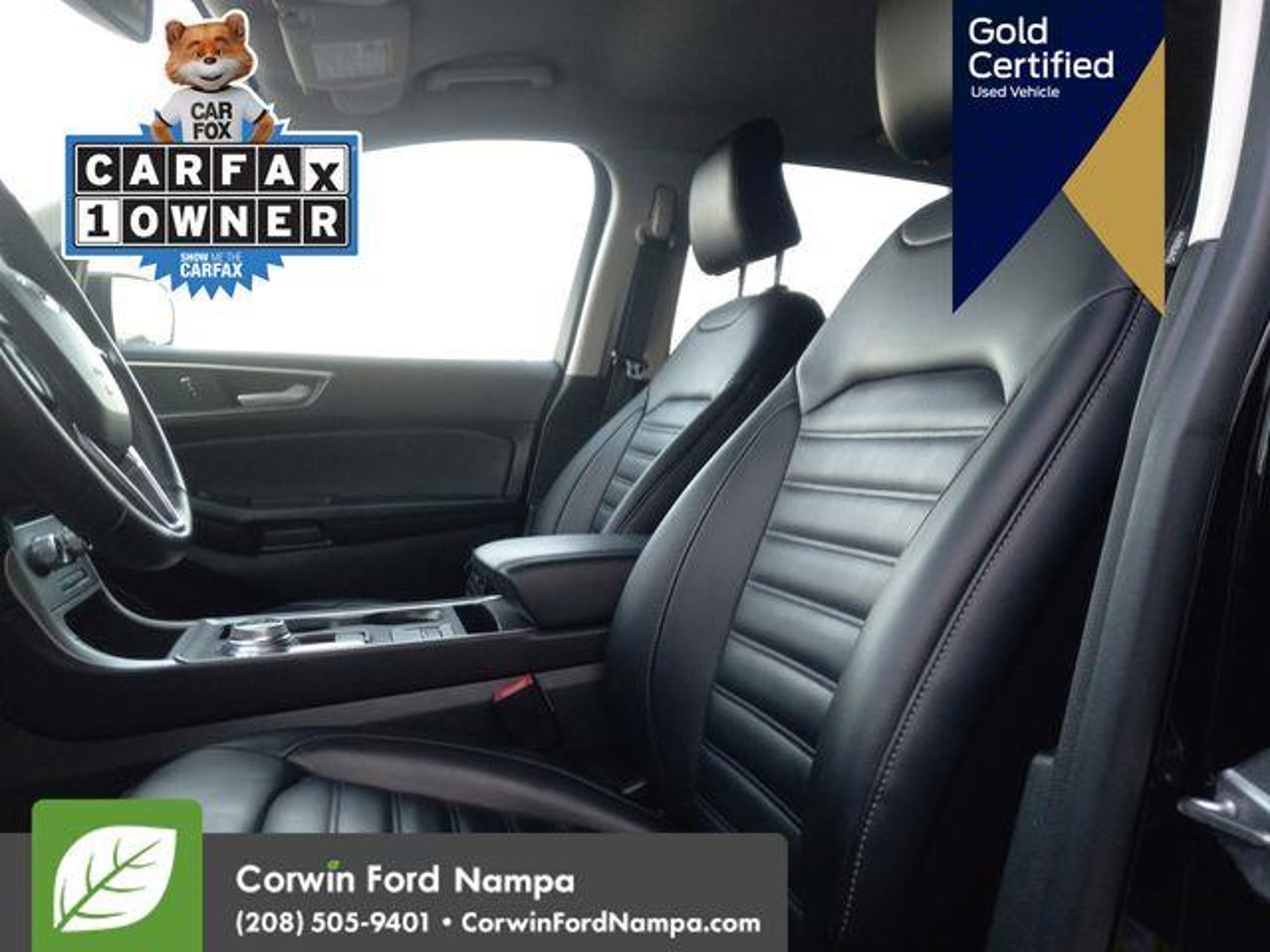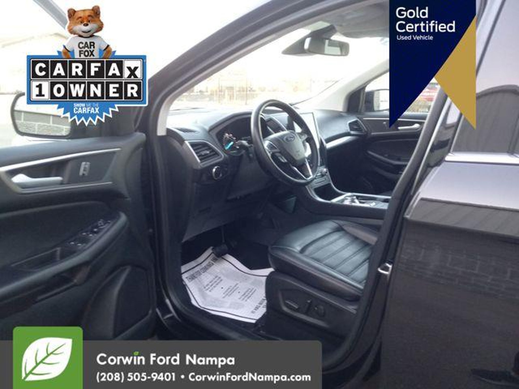 Introducing our fun to drive Certified, One Owner 2024 Ford Edge SEL AWD that's ready for adventure in Agate Black Metallic! Motivated by a TurboCharged 2.0 Liter EcoBoost 4 Cylinder offering 250hp to an 8 Speed Automatic transmission with a rotary gear shifter. Take command of this All Wheel Drive SUV to enjoy confident capability, responsive handling, and the ability to return nearly 28mpg on the highway. Sophisticated details help our Edge make a dramatic impression with signature LED lighting, fog lamps, heated power mirrors, dual integrated exhaust outlets, bright beltline moldings, and alloy wheels. Our SEL cabin brings you rewarding amenities for life on the road, including heated ActiveX power front seats, a leather-wrapped steering wheel, dual-zone automatic climate control, keyless access, pushbutton ignition, dual 4.2-inch driver display, and exclusive SYNC infotainment technology. Use that with the 12-inch touchscreen and voice control to manage WiFi compatibility, Android AutoÂ/Apple CarPlayÂ, BluetoothÂ, and a six-speaker audio system with SiriusXM compatibility. Ford safeguards your journeys with smart Co-Pilot360 systems like automatic braking, blind-spot monitoring, lane-keeping assistance, a rearview camera, hill-start assistance, tire-pressure monitoring, Safety Canopy airbags, and more! Own our Edge SEL and cut through the crowd in style! Save this Page and Call for Availability. We Know You Will Enjoy Your Test Drive Towards Ownership! Corwin Ford Nampa! Friendly service and aggressive pricing is why we are your new and pre-owned vehicle dealer serving, Nampa, Boise, Meridian, Caldwell, Kuna, Eagle, Emmett, Idaho City, Wilder, New Plymouth, Star, Middleton, Weiser, Payette, Horseshoe Bend, Mountain Home, Idaho, and surrounding states.
