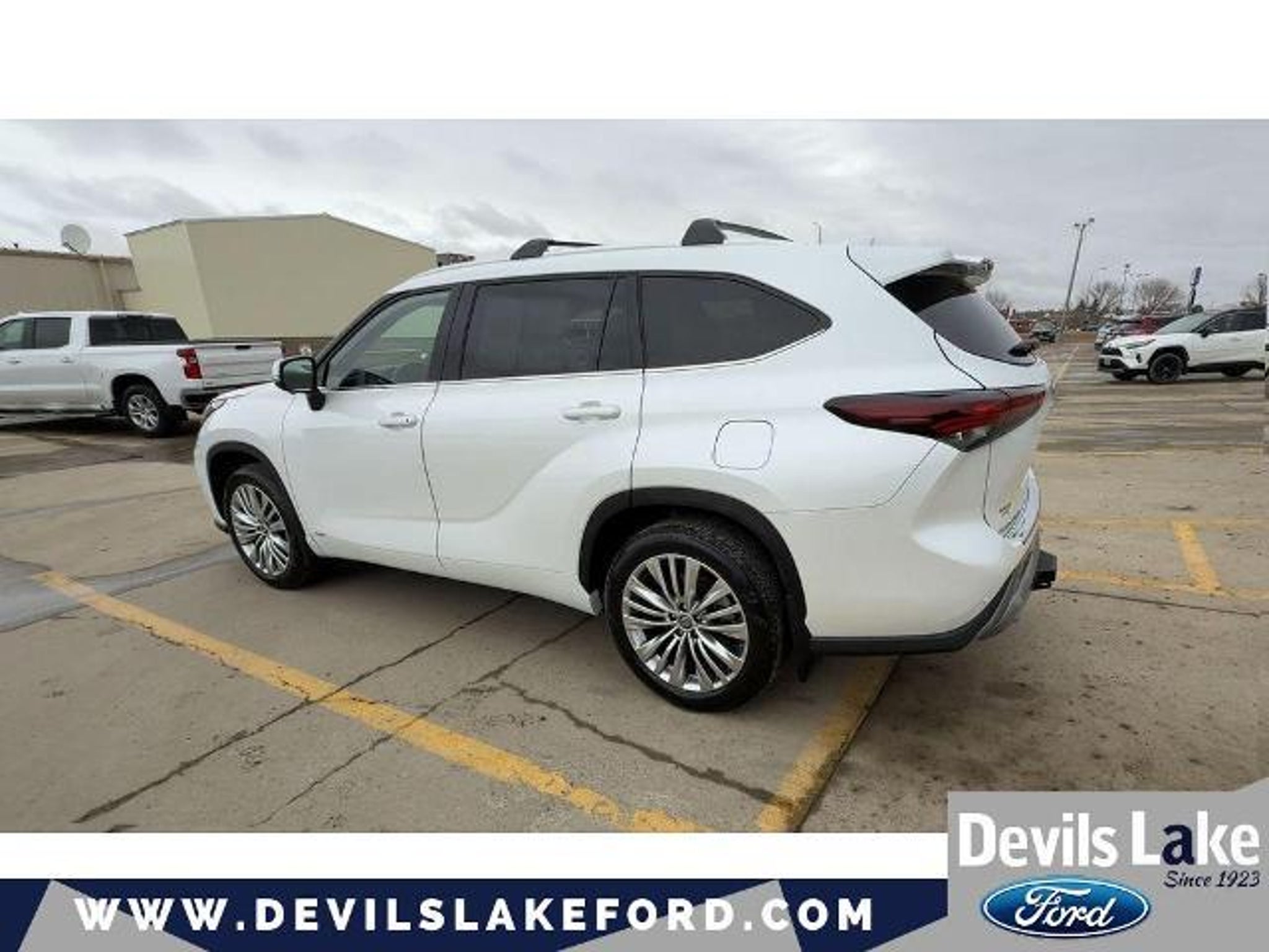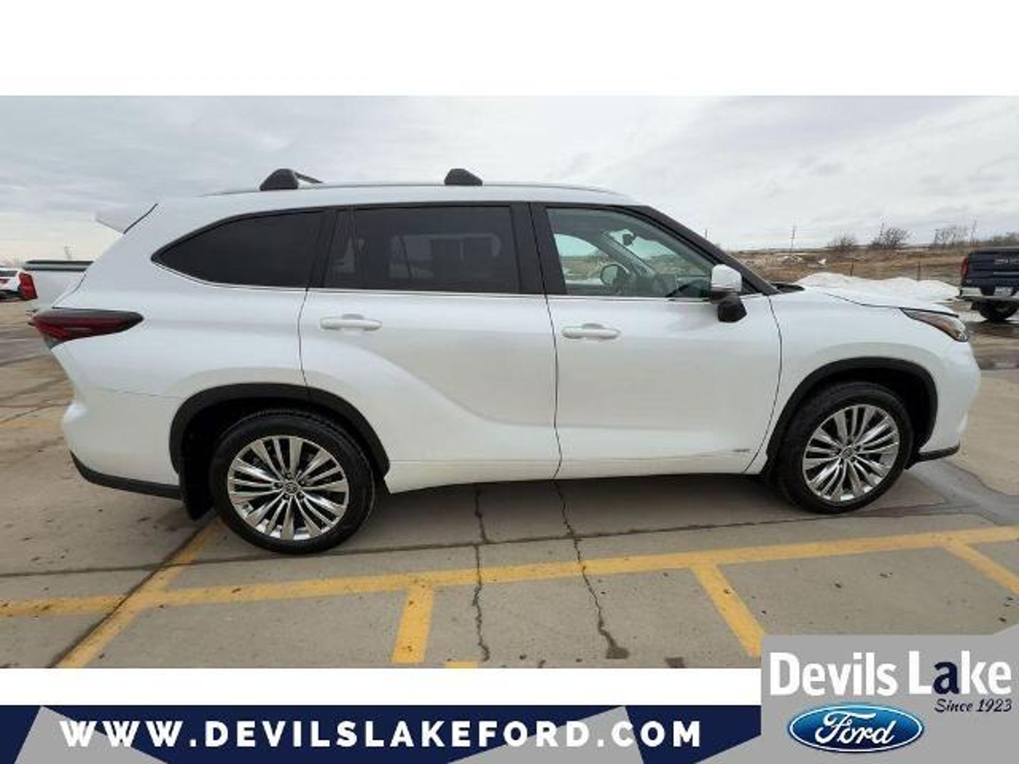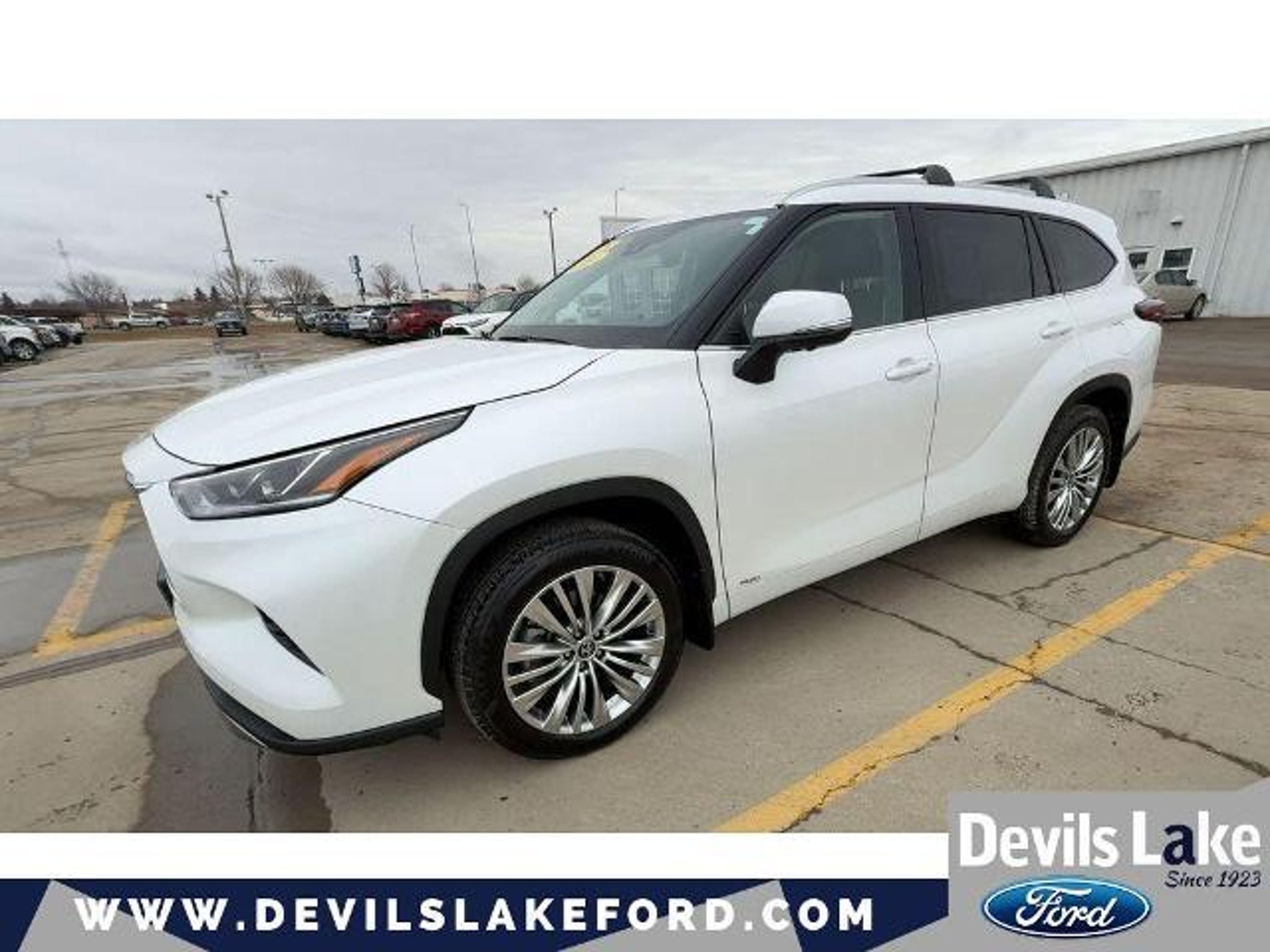 Summary Buy and Drive with Confidence - Devil's Lake Worry Free Guarantee - 3 Day / 300 Mile Return or Exchange, 3 Month / 3,000 mile coverage on powertrain, brakes, bulbs, batteries and tires $0 Deductible. 750 4.8 STARS POSITIVE REVIEWS ON GOOGLE. See why people from all over the country do business with us! Serving North Dakota for over 100 years! Fast, Easy and Great Vehicles. For all the details on this vehicle call me Jodie Longie . Keep your hands warm all winter with a heated steering wheel in the vehicle . See what's behind you with the back up camera on this model. The leather seats in this mid-size suv are a must for buyers looking for comfort, durability, and style. It features a hands-free Bluetooth phone system. You'll never again be lost in a crowded city or a country region with the navigation system on this Toyota Highlander Hybrid. Good News! This certified CARFAX 1-owner vehicle has only had one owner before you. This model's blind spot monitor enhances safety. Enjoy the convenience of the power liftgate on this unit. This 2025 Toyota Highlander Hybrid embodies class and sophistication with its refined white exterior. The vehicle is equipped with all wheel drive. This mid-size suv has a 4 Cyl, 2.5L high output engine. Maintaining a stable interior temperature in this mid-size suv is easy with the climate control system. Packages Platinum Package: Electronic Inner Mirror; Panoramic Sunroof and Moonroof; High Grade LED; Panoramic View Monitor. Tow Hitch. Special Color. Paint Protection Film. All-Weather Floor/cargo Liner. Cargo Cross Bars. Wheel Locks. Quick Charge Cable. **Equipment listed is based on original vehicle build and subject to change. Please confirm the accuracy of the included equipment by calling the dealer prior to purchase.** Equipment Keep your hands warm all winter with a heated steering wheel in the vehicle . See what's behind you with the back up camera on this model. The leather seats in this mid-size suv are a must for buyers looking for comfort, durability, and style. It features a hands-free Bluetooth phone system. You'll never again be lost in a crowded city or a country region with the navigation system on this Toyota Highlander Hybrid. Good News! This certified CARFAX 1-owner vehicle has only had one owner before you. This model's blind spot monitor enhances safety. Enjoy the convenience of the power liftgate on this unit. This 2025 Toyota Highlander Hybrid embodies class and sophistication with its refined white exterior. The vehicle is equipped with all wheel drive. This mid-size suv has a 4 Cyl, 2.5L high output engine. Maintaining a stable interior temperature in this mid-size suv is easy with the climate control system. Packages Platinum Package: Electronic Inner Mirror; Panoramic Sunroof and Moonroof; High Grade LED; Panoramic View Monitor. Tow Hitch. Special Color. Paint Protection Film. All-Weather Floor/cargo Liner. Cargo Cross Bars. Wheel Locks. Quick Charge Cable. **Equipment listed is based on original vehicle build and subject to change. Please confirm the accuracy of the included equipment by calling the dealer prior to purchase.**