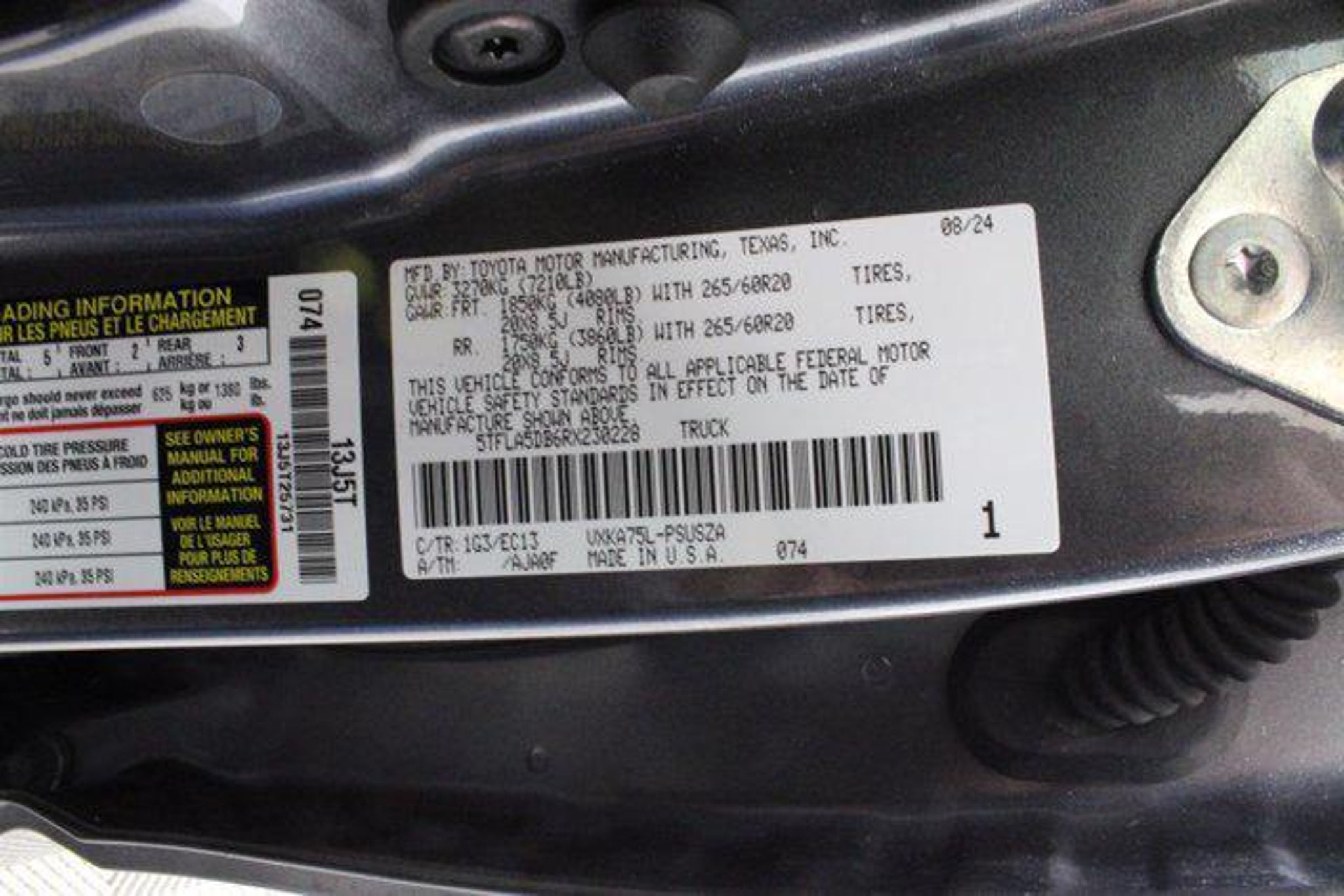 Details > 2024 Toyota Tundra 4X4 SR5 4DR Crewmax Cab Pickup SB For Sale in Wichita, KS Private Party Sellers Click here to place your ad now! You auta tell them you saw the ad in AutaBuy when you call or email. 1/37 2/37 3/37 4/37 5/37 6/37 7/37 8/37 9/37 10/37 11/37 12/37 13/37 14/37 15/37 16/37 17/37 18/37 19/37 20/37 21/37 22/37 23/37 24/37 25/37 26/37 27/37 28/37 29/37 30/37 31/37 32/37 33/37 34/37 35/37 36/37 37/37 View 37 Photos View All Add to My Garage Parked in Your Garage! Eddy's Volkswagen of Wichita Contact Seller: I would like to: Make Offer Check Availability Ask A Question Request More Photos Check Financing Options Send a copy of this message to me Add this listing to my garage Send to Mobile Mileage 6,286 Exterior Color Gray Interior Color Boulder Doors 4 Engine 3.4L V6 Transmission 10 Speed Auto Stock # P2172 VIN 5TFLA5DB6RX230228 Estimated Monthly Payment $887 mo Apply Now J.J. Best Banc & Co. 2024 Toyota Tundra 4X4 SR5 4DR Crewmax Cab Pickup SB Description: Eddy's Volkswagen of Wichita · Mileage: 6,286 · Color: Gray Price: $50,993. Mileage 6,286 Exterior Color Gray Interior Color Boulder Doors 4 Engine 3.4L V6 Transmission 10 Speed Auto Stock # P2172 VIN 5TFLA5DB6RX230228 Estimated Monthly Payment $887 mo Apply Now J.J. Best Banc & Co. Add to My Garage Parked in Your Garage! Message Seller Eddy's Volkswagen of Wichita Contact Seller: I would like to: Make Offer Check Availability Ask A Question Request More Photos Check Financing Options Send a copy of this message to me Add this listing to my garage Offered for sale by Eddy's Volkswagen of Wichita WICHITA, KS Price: $50,993. Offered for sale by Eddy's Volkswagen of Wichita WICHITA, KS [entire inventory] Ask Auta Intelligence The first collector-car AI built directly into a classic car marketplace Can you show me more pickups/trucks for a similar price? How many Tundras were produced in Gray? What factory options were available on this model? Tell me about this model Where is this located? What kind of mileage do these get? What's the typical towing capacity in this configuration? What size tires does this run from the factory? How many of these were produced? When was this model first introduced? What transmission options did these offer? How easy are parts to find for this model? What does this VIN number tell me? What engine options did these come with? What trim levels were available for this model? What colors did these come in? How far is this from me? Do you have a similar car to sell? List It Now! Questions about this car? Ask Auta Intelligence for production numbers, available options, etc. · Subscribe to AutaBuy! · Send a Gift Subscription Notice to a Friend