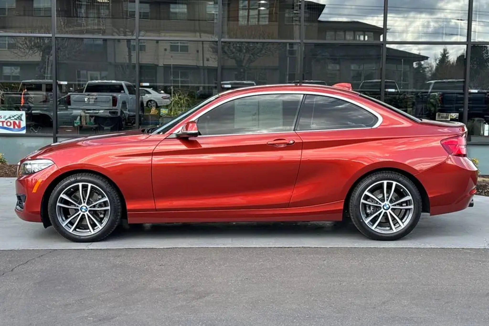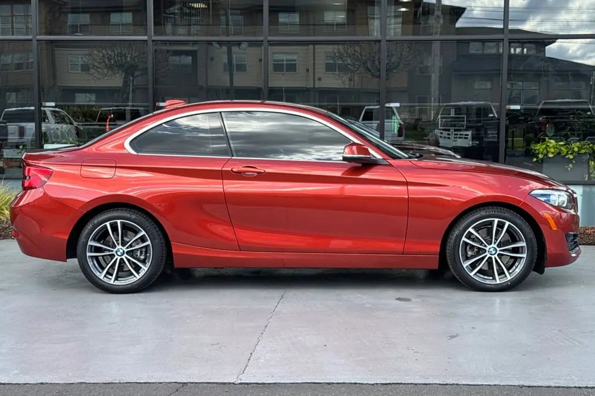 2018 BMW 2 Series 230i Sunset Orange Metallic Fresh Oil Change, No Accident on Carfax, 4-Wheel Disc Brakes, 6 Speakers, ABS brakes, AM/FM radio, CD player, Dual front impact airbags, Dual front side impact airbags, Emergency communication system: BMW Assist eCall, Exterior Parking Camera Rear, Front anti-roll bar, Front Bucket Seats, Front dual zone A/C, Fully automatic headlights, Hands-Free Bluetooth & USB Audio Connection, Heated door mirrors, Heated Front Seats, Heated Steering Wheel, Hi-Fi Sound System, Knee airbag, Low tire pressure warning, Occupant sensing airbag, Outside temperature display, Panic alarm, Power door mirrors, Power Front Seats, Rear anti-roll bar, Remote keyless entry, SensaTec Upholstery, Speed-sensing steering, Split folding rear seat, Sport steering wheel, Steering wheel mounted audio controls, Telescoping steering wheel, Tilt steering wheel, Turn signal indicator mirrors, Variable Sport Steering. 24/35 City/Highway MPG