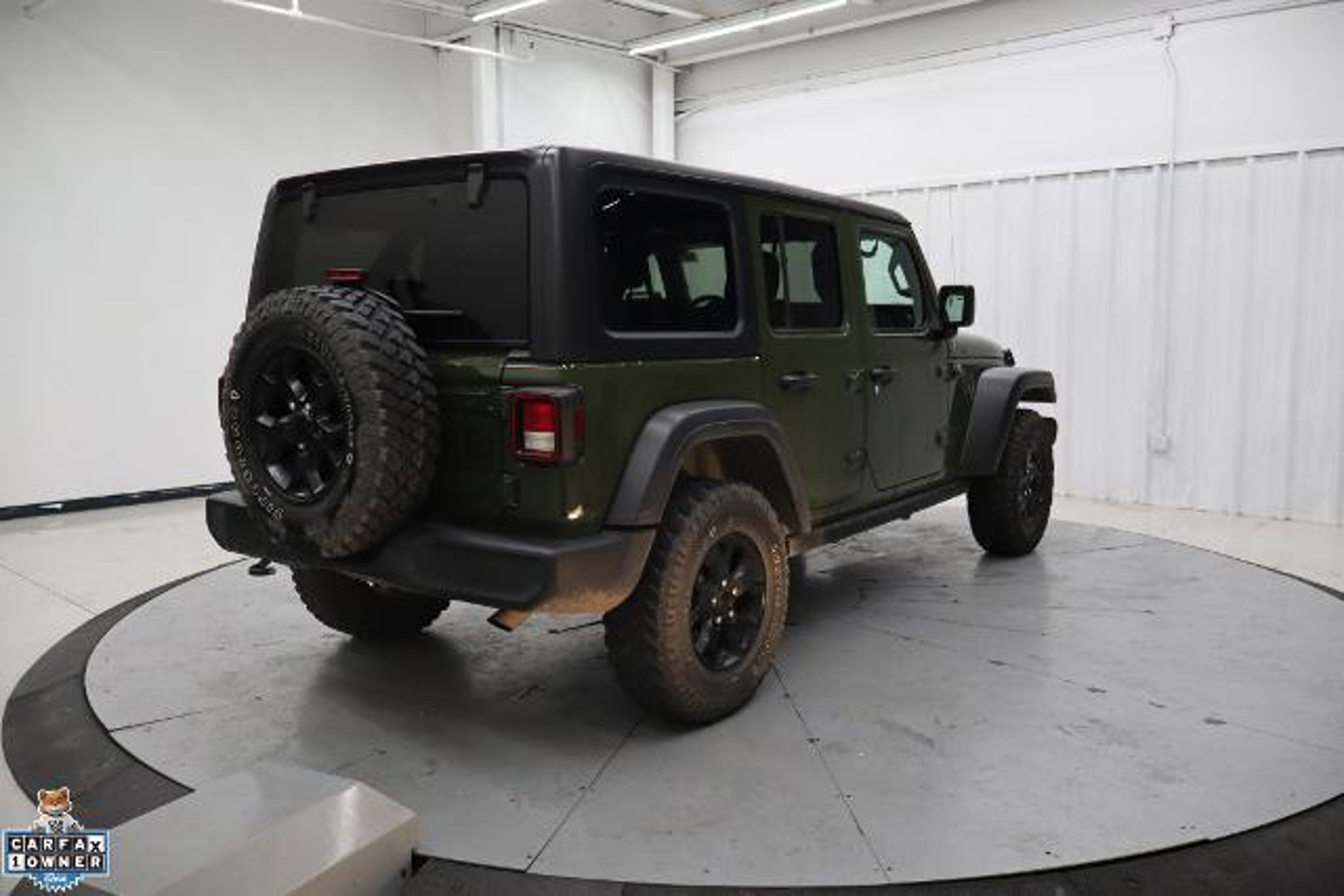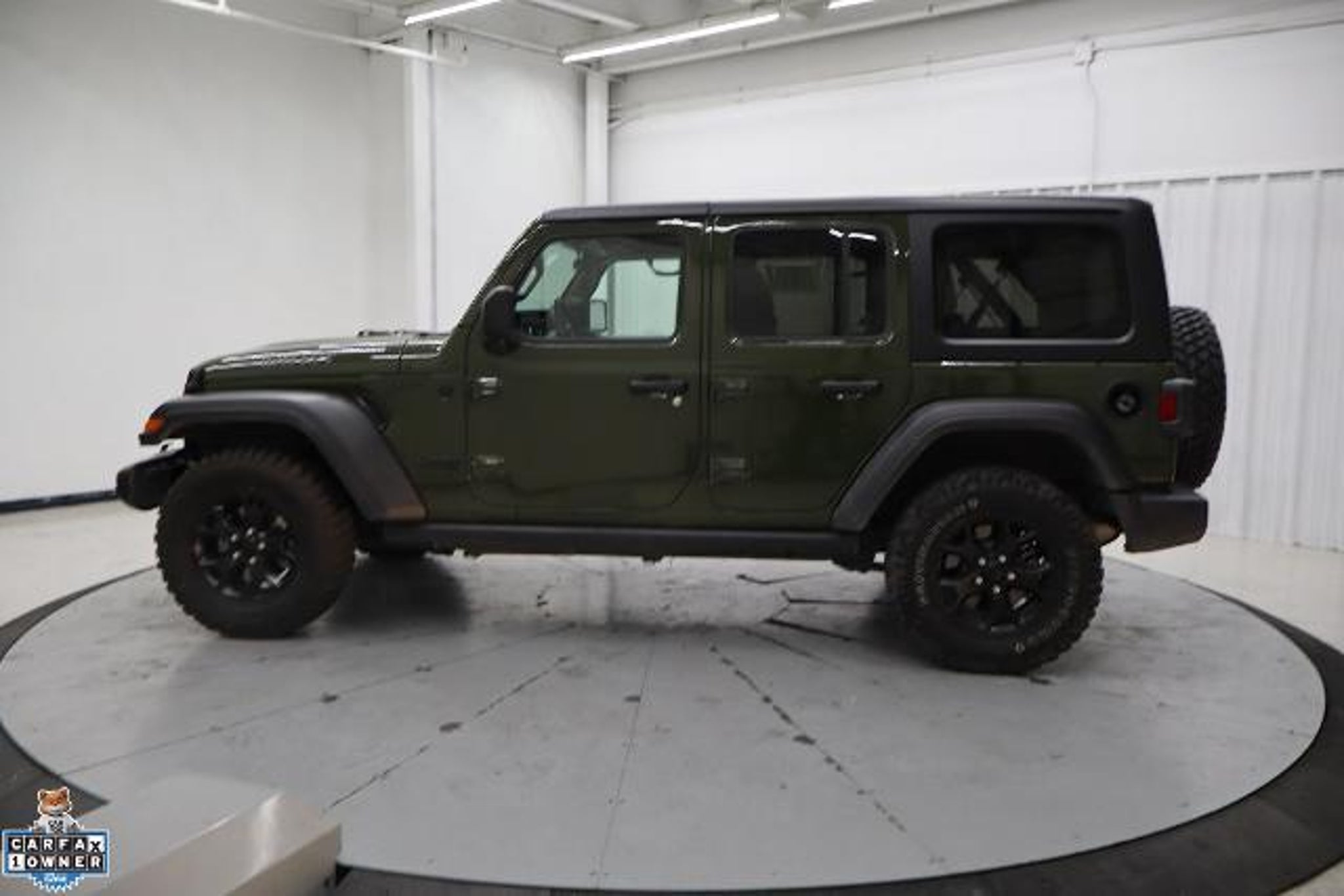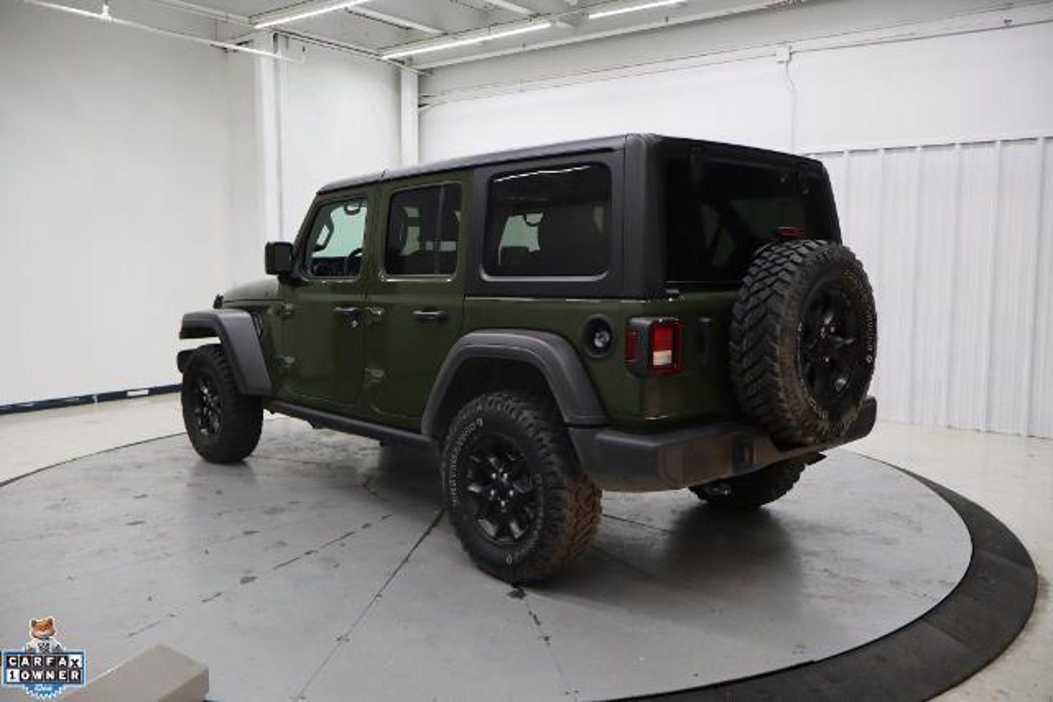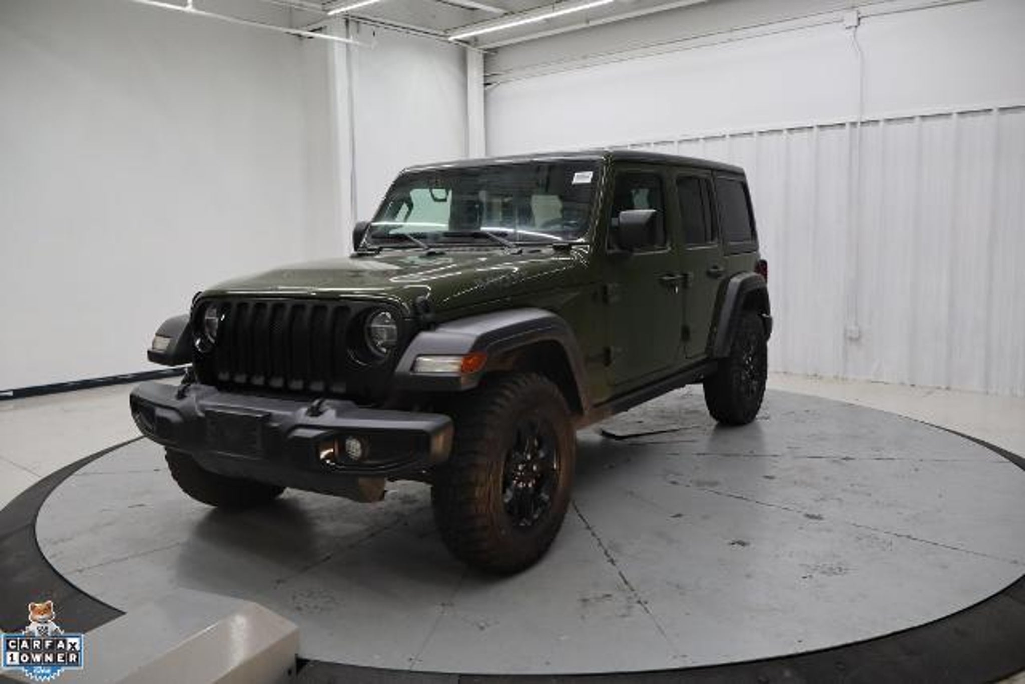 CARFAX One-Owner. Clean CARFAX. 2021 Jeep Wrangler 4D Sport Utility Unlimited Willys Sarge Green Clearcoat 4WD 2.0L I4 DOHC 8-Speed Automatic 4-Wheel Drive Swing Gate Decal, 7.0 Touchscreen Display, Air Conditioning w/Auto Temperature Control, Air Filtering, Anti-Spin Differential Rear Axle, Apple CarPlay, Automatic Headlamps, Black Grille, Black Trail Rated Badge, Cluster 7.0 TFT Color Display, Convenience Group, Deep Tint Sunscreen Windows, For More Info, Call 800-643-2112, Front 1-Touch Down Power Windows, Front LED Fog Lamps, Google Android Auto, GPS Antenna Input, Integrated Center Stack Radio, Leather Wrapped Steering Wheel, LED Headlamp & Fog Lamp Group, LED Premium Reflector Headlamps, Matte Black Jeep Badge, Mold In Color Bumper w/Gloss Black, MOPAR All-Weather Floor Mats, Power Heated Mirrors, Quick Order Package 22W Willys, Radio: Uconnect 4 w/7 Display, Remote Keyless Entry, Security Alarm, SiriusXM Radio Service, SiriusXM Satellite Radio, Speed Sensitive Power Locks, Sun Visors w/Illuminated Vanity Mirrors, Technology Group, Universal Garage Door Opener, USB Host Flip, Wheels: 17 x 7.5 Moab Black Aluminum, Willys, Willys Hood Decal, Wrangler Decal. Convenience Group (Universal Garage Door Opener), LED Headlamp & Fog Lamp Group (Front LED Fog Lamps and LED Premium Reflector Headlamps), Quick Order Package 22W Willys (4-Wheel Drive Swing Gate Decal, Anti-Spin Differential Rear Axle, Automatic Headlamps, Black Grille, Black Trail Rated Badge, Deep Tint Sunscreen Windows, Front 1-Touch Down Power Windows, Leather Wrapped Steering Wheel, Matte Black Jeep Badge, Mold In Color Bumper w/Gloss Black, MOPAR All-Weather Floor Mats, Power Heated Mirrors, Remote Keyless Entry, Security Alarm, Speed Sensitive Power Locks, Sun Visors w/Illuminated Vanity Mirrors, Wheels: 17 x 7.5 Moab Black Aluminum, Willys, Willys Hood Decal, and Wrangler Decal), Technology Group (7.0 Touchscreen Display, Air Conditioning w/Auto Temperature Control, Air Filtering, Apple CarPlay, Cluster 7.0 TFT Color Display, For More Info, Call 800-643-2112, Google Android Auto, GPS Antenna Input, Integrated Center Stack Radio, Radio: Uconnect 4 w/7 Display, SiriusXM Radio Service, SiriusXM Satellite Radio, and USB Host Flip), Cold Weather Group (Heated Front Seats and Heated Steering Wheel), 3.45 Rear Axle Ratio, 4-Wheel Disc Brakes, 8 Speakers, ABS brakes, Air Conditioning, AM/FM radio, Aux Battery, Black 3-Piece Hard Top, Brake assist, Cloth Low-Back Bucket Seats, Compass, Delay-off headlights, Driver door bin, Driver vanity mirror, Du