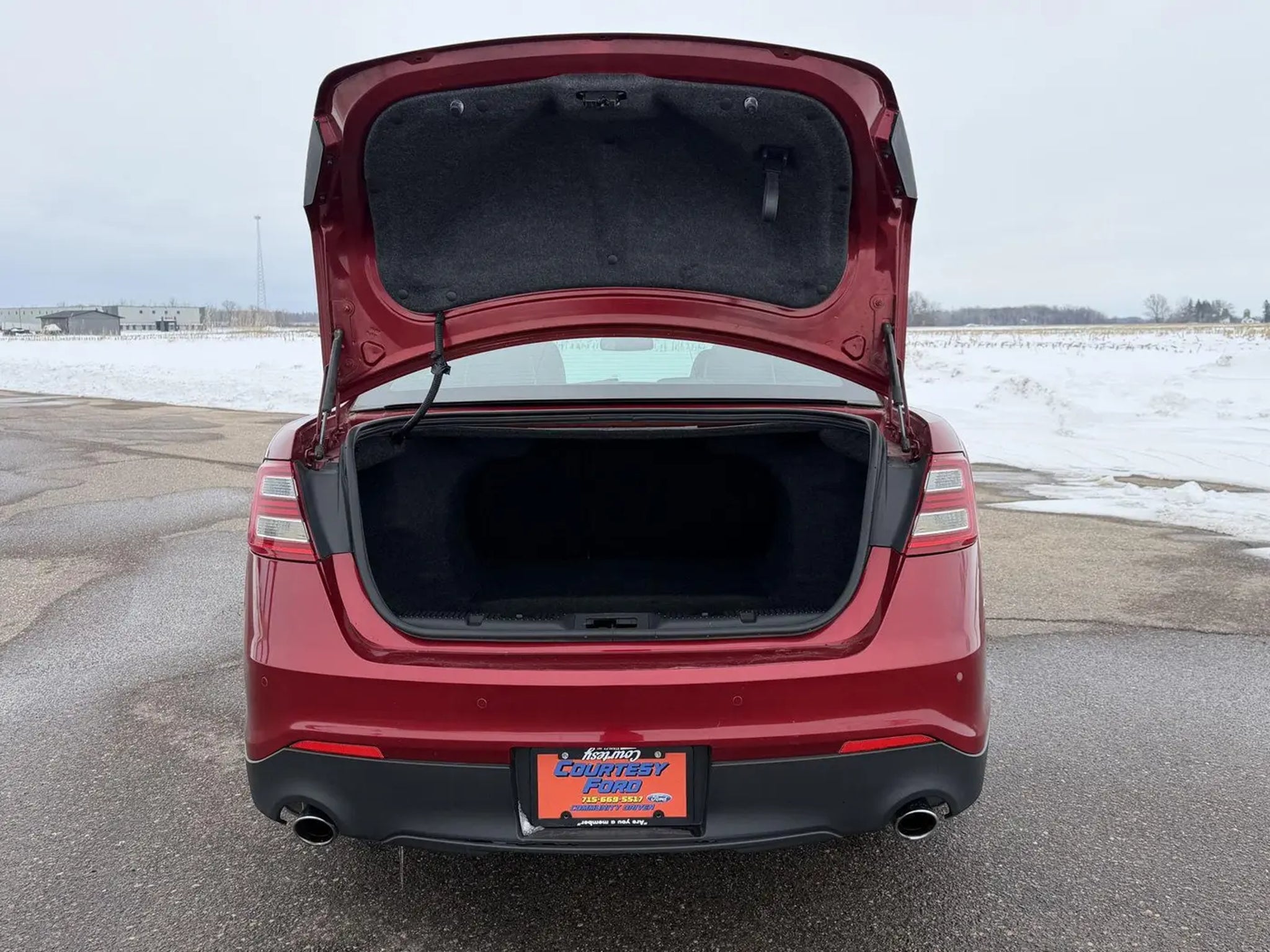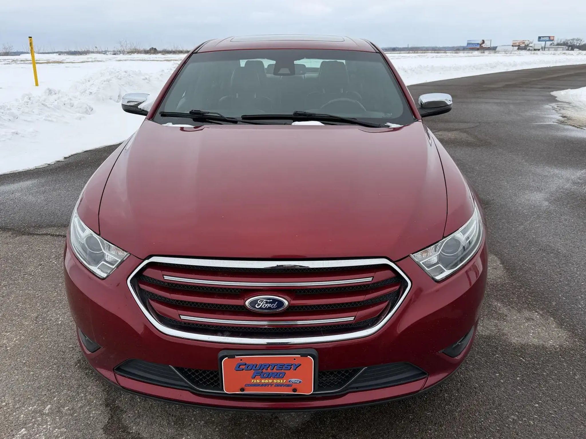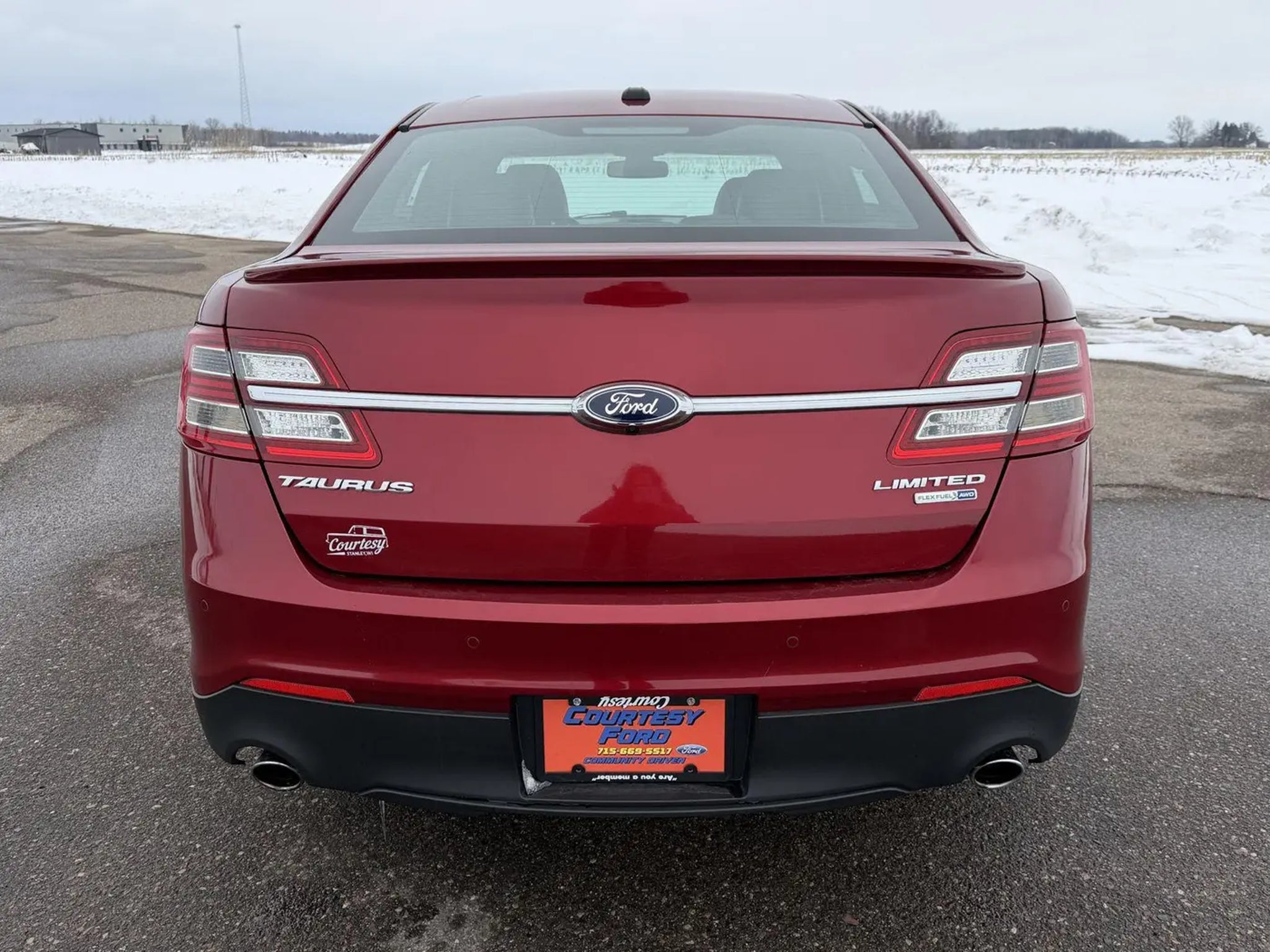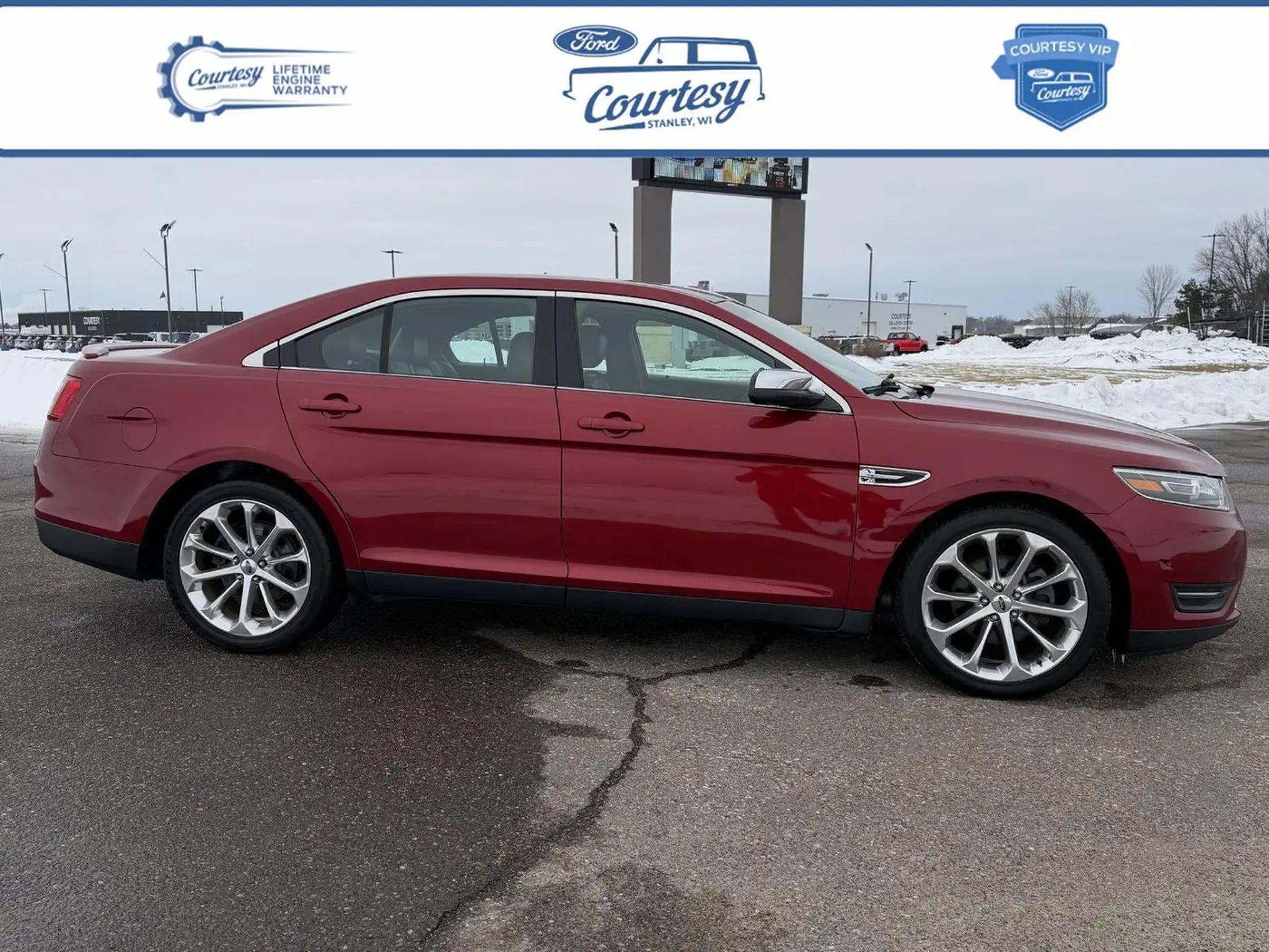 this Ruby Red Metallic Tinted Clearcoat 2016 Ford Taurus Limited would be a welcomed addition to your family/business. Reach out to us at and reference this stock #15199C. No Accidents! Why Buy From Courtesy Auto & Truck Center, Inc. Member Pricing representspremium quality of service toThe customer. With all premium,economy, and utility brands thecustomer has a guarantee theyCan lean on."¢ Custom vehicle ordering and delivery"¢ Service pick-up and drop-off"¢ Mobile service vehicle"¢ Rewards program for service"¢ Loaners $19.95 per day New Vehicles (under factory warranty)Lifetime engine limited warranty*. 1-Year Zurich Shield® limited warranty. Courtesy Certified (under 85,000 miles)Lifetime Engine Limited Warranty 1-Year Zurich Shield® Limited Warranty Courtesy Certified (85,001-100,000 miles) 1-Year Zurich Shield® Limited Warranty *Some exclusions apply. This Limited Warranty does not provide coverage if your vehicle:A. Is equipped to plow snow, whether or not the plow blade is attached to your vehicle.B. Is used for commercial hauling, delivery, or limousine service.C. Is used for hauling or towing in excess of the manufacturer's limitations and specifications.D. Is used for rental, racing, speed contest or other competiton, police car, security vehicle, emergency vehicle, shuttle service, taxi or commercial towing.E. Has been declared a total loss or has been inssued a salvaged or branded title. *needs to be less that 5 years old and under 80k miles. All internally lubricated parts contained within the engine block and cylinder head(s). Cylinder head, engine block, and rotor housings when damaged as a result of the failure of a covered internally lubricated part. Coolant, fluids, lubricants, and filters when required in connection with the repair and replacement of a covered part. Important Package Information Equipment Group 301A ($2,150 value) 2nd Row Heated Seats 6-Speed SelectShift Automatic Transmission 19 Premium Painted Aluminum Wheels 3.5L Ti-VCT V6 Engine BLIS Blind Spot Info System with Cross Traffic Alert Limited Branded Front Floor Mats Auto-Dimming Driver Side Mirror Sony AM/FM Single CD/MP3 Capable Radio Heated and Cooled Perforated Leather Front Bucket Seats Rear Power Sunshade Heated Steering Wheel P255/45R19 A/S BSW Tires Auto High Beam/rain Sensing Wipers Comfort Ventilated seats offer warm weather comfort by cooling areas of the occupant's body not exposed to the air conditioning system. Convenience Cruise control maintains a preset vehicle speed; automatically increasing or decreasing throttle to maintain that speed. Safety and Security The vehicle is equipped with a camera that displays an image of the area behind the vehicle on an interior display. Brake assist senses panic braking from the speed of the brake pedal's travel and applies all available power brake boost. Technology and Telematics Mobile devices can wirelessly connect to the internet through the vehicle's private mobile network. Our Dealership We look forward to doing business with you! Give us a call at and schedule a test drive. We are located at 409 Junction Avenue Stanley WI 54768.