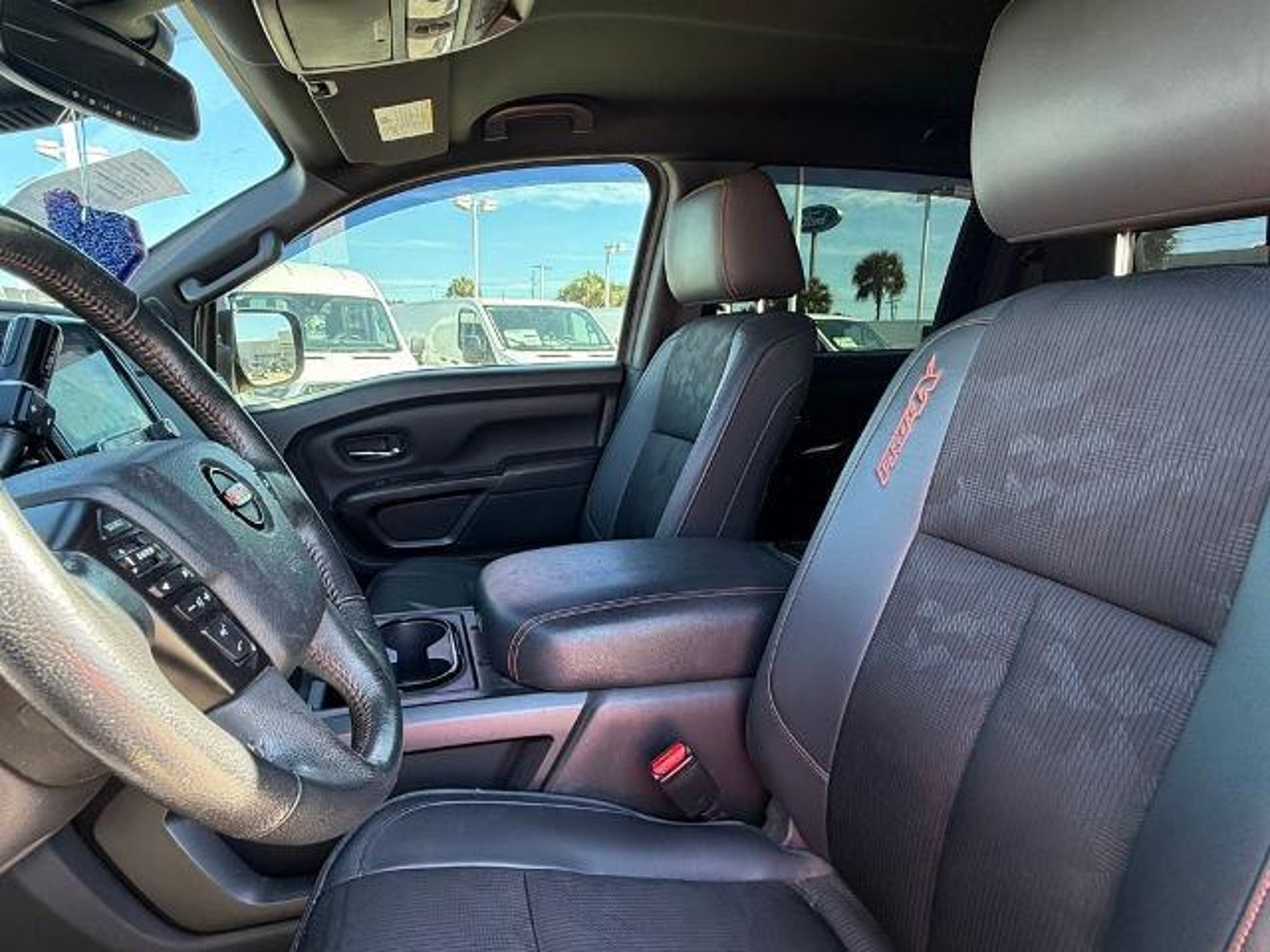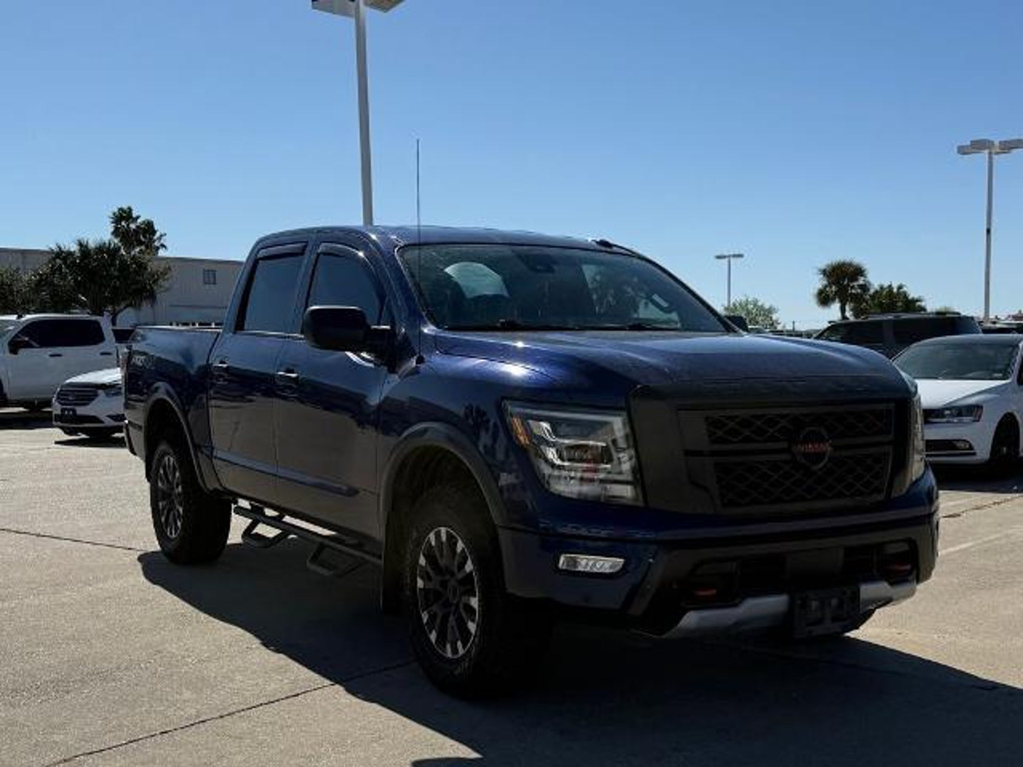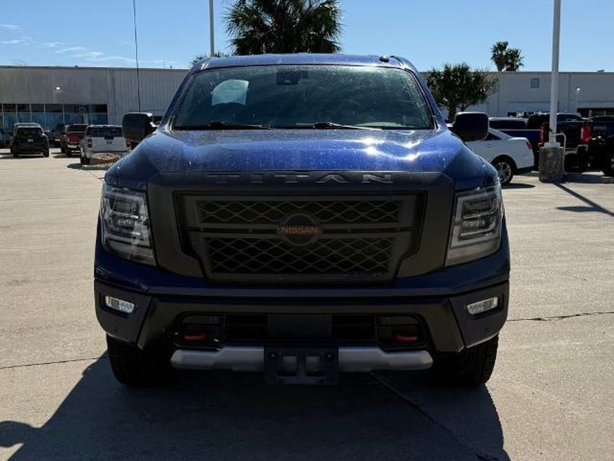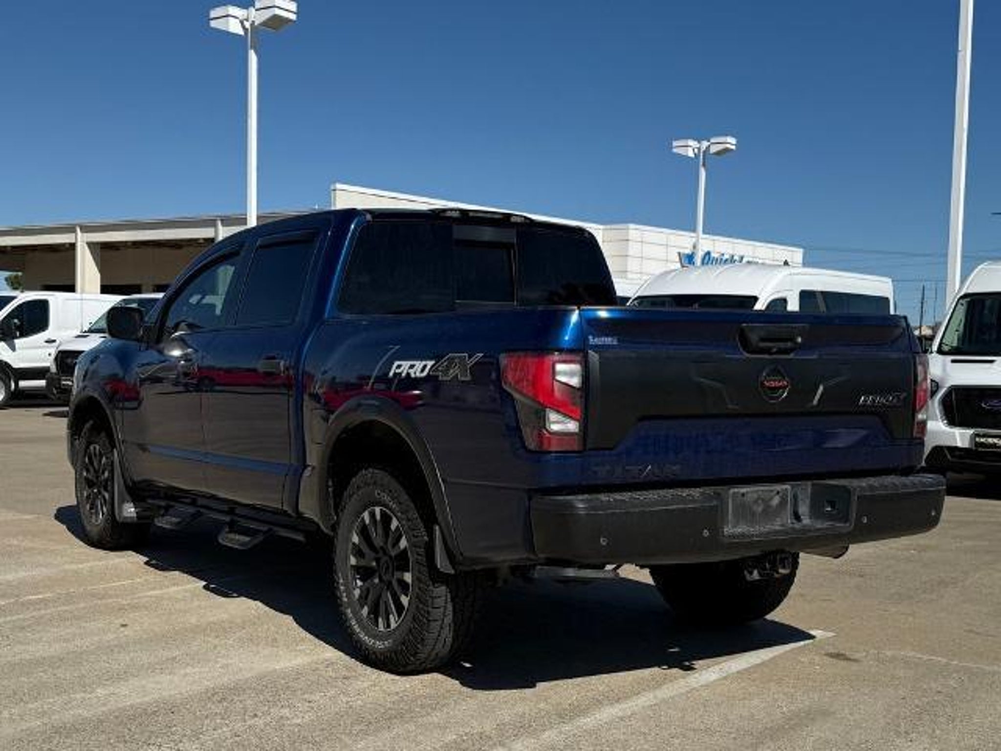 Deep Blue Pearl Metallic 2021 Nissan Titan PRO-4X 4WD 9-Speed Automatic 5.6L V8 DOHC 32V 400hp 4WD. This vehicle comes equipped with the following features and options: PRO-4X Utility Package (Fender Premium Audio System w/12 Speakers and Proximity Activation), 4WD, 3.692 Axle Ratio, 4-Wheel Disc Brakes, 6 Speakers, ABS brakes, Air Conditioning, Alloy wheels, AM/FM radio: SiriusXM, Auto High-beam Headlights, Auto-dimming Rear-View mirror, Auto-leveling suspension, Automatic temperature control, Blind Spot Warning, Brake assist, Cloth Seat Trim w/Vinyl Bolsters, Compass, Delay-off headlights, Driver door bin, Driver vanity mirror, Dual front impact airbags, Dual front side impact airbags, Electronic Stability Control, Emergency communication system: NissanConnect Services, Front anti-roll bar, Front Bucket Seats, Front Captain's Seats, Front Center Armrest, Front dual zone A/C, Front fog lights, Front reading lights, Front wheel independent suspension, Fully automatic headlights, Garage door transmitter: HomeLink, Heated door mirrors, Illuminated entry, Knee airbag, Leather steering wheel, Low tire pressure warning, Navigation system: NissanConnect Navigation, NissanConnect featuring Apple CarPlay and Android Auto, Occupant sensing airbag, Outside temperature display, Overhead airbag, Overhead console, Panic alarm, Passenger door bin, Passenger vanity mirror, Power door mirrors, Power driver seat, Power steering, Power windows, PRO-4X Badged Floor Mats (DISC), Pro4X Mud Flaps, Radio data system, Radio: NissanConnect w/Navigation, Rain sensing wipers, Rear anti-roll bar, Rear Bumper Step w/Electronic Tailgate Lock, Rear Parking Sensors, Rear seat center armrest, Rear Seat Entertainment (DISC), Rear step bumper, Rear window defroster, Remote keyless entry, Security system, Speed control, Speed-sensing steering, Speed-Sensitive Wipers, Split folding rear seat, Steering wheel mounted audio controls, Tachometer, Telescoping steering wheel, Tilt steering wheel, Traction control, Trip computer, Variably intermittent wipers, Voltmeter, and Wheels: 18 x 8 Painted Dark Finish Alloy. Recent Arrival!