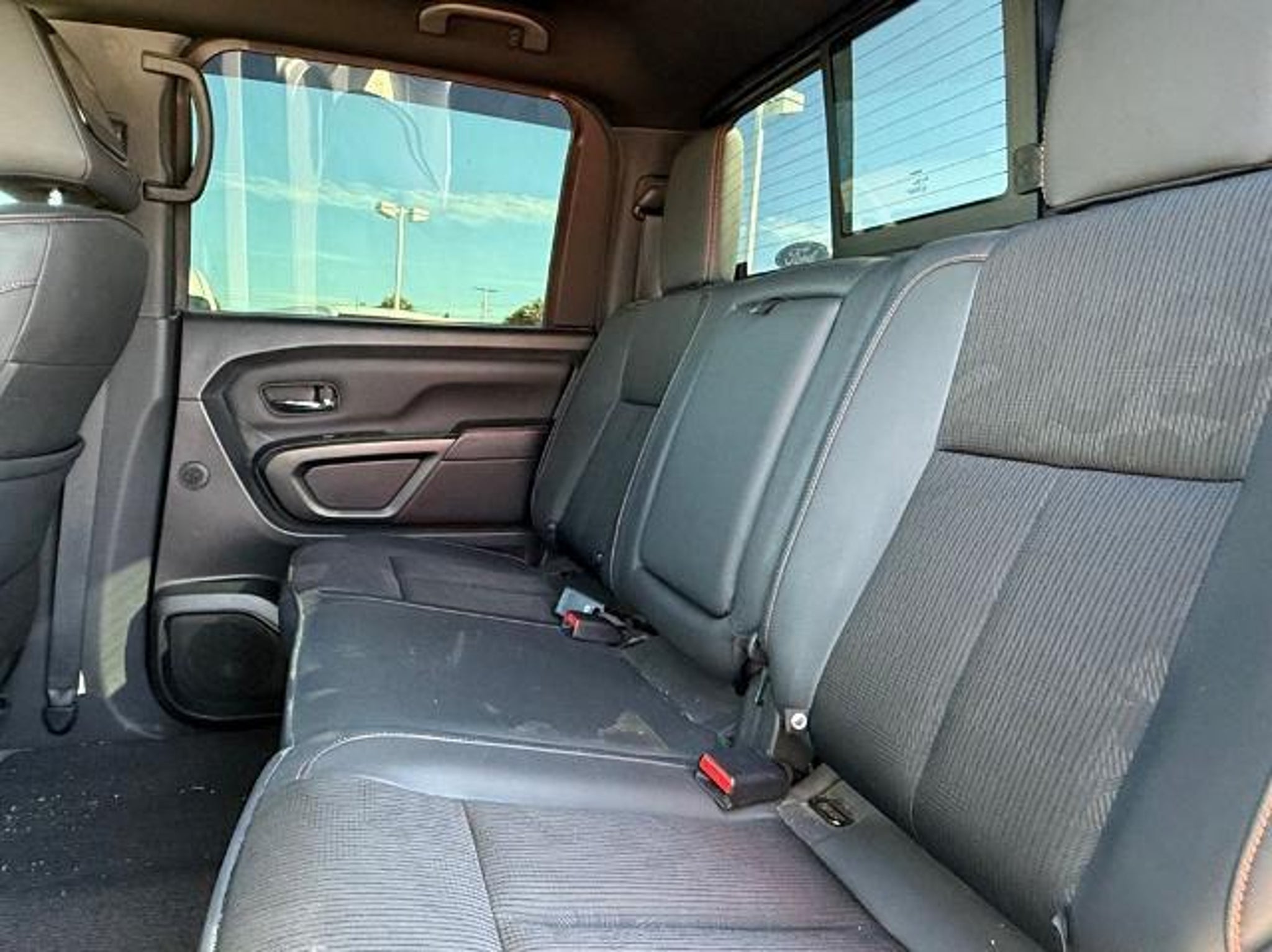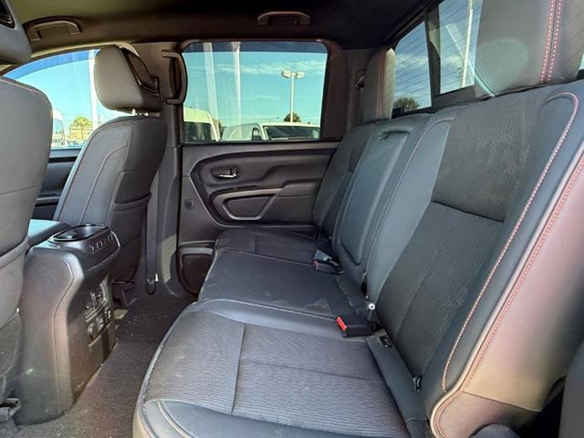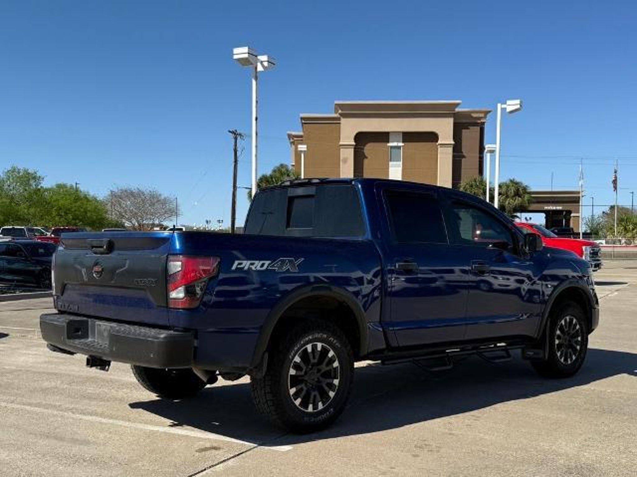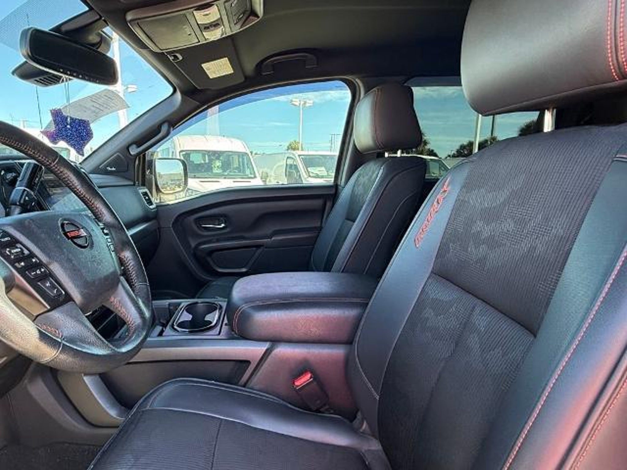 Deep Blue Pearl Metallic 2021 Nissan Titan PRO-4X 4WD 9-Speed Automatic 5.6L V8 DOHC 32V 400hp 4WD. This vehicle comes equipped with the following features and options: PRO-4X Utility Package (Fender Premium Audio System w/12 Speakers and Proximity Activation), 4WD, 3.692 Axle Ratio, 4-Wheel Disc Brakes, 6 Speakers, ABS brakes, Air Conditioning, Alloy wheels, AM/FM radio: SiriusXM, Auto High-beam Headlights, Auto-dimming Rear-View mirror, Auto-leveling suspension, Automatic temperature control, Blind Spot Warning, Brake assist, Cloth Seat Trim w/Vinyl Bolsters, Compass, Delay-off headlights, Driver door bin, Driver vanity mirror, Dual front impact airbags, Dual front side impact airbags, Electronic Stability Control, Emergency communication system: NissanConnect Services, Front anti-roll bar, Front Bucket Seats, Front Captain's Seats, Front Center Armrest, Front dual zone A/C, Front fog lights, Front reading lights, Front wheel independent suspension, Fully automatic headlights, Garage door transmitter: HomeLink, Heated door mirrors, Illuminated entry, Knee airbag, Leather steering wheel, Low tire pressure warning, Navigation system: NissanConnect Navigation, NissanConnect featuring Apple CarPlay and Android Auto, Occupant sensing airbag, Outside temperature display, Overhead airbag, Overhead console, Panic alarm, Passenger door bin, Passenger vanity mirror, Power door mirrors, Power driver seat, Power steering, Power windows, PRO-4X Badged Floor Mats (DISC), Pro4X Mud Flaps, Radio data system, Radio: NissanConnect w/Navigation, Rain sensing wipers, Rear anti-roll bar, Rear Bumper Step w/Electronic Tailgate Lock, Rear Parking Sensors, Rear seat center armrest, Rear Seat Entertainment (DISC), Rear step bumper, Rear window defroster, Remote keyless entry, Security system, Speed control, Speed-sensing steering, Speed-Sensitive Wipers, Split folding rear seat, Steering wheel mounted audio controls, Tachometer, Telescoping steering wheel, Tilt steering wheel, Traction control, Trip computer, Variably intermittent wipers, Voltmeter, and Wheels: 18 x 8 Painted Dark Finish Alloy. Recent Arrival!