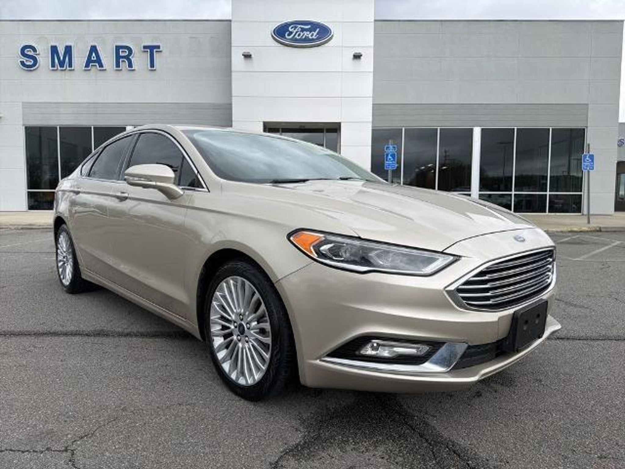 Recent Arrival! Odometer is 21067 miles below market average! White Gold 2017 Ford Fusion Titanium FWD EcoBoost 2.0L I4 GTDi DOHC Turbocharged VCT 6-Speed Automatic. You can Fill out a Free Super Quick Pre-Approval Credit Application here! https://www.smartfordsouthboston.com/finance/apply-for-financing/ FINANCING FOR ALL TYPES OF CREDIT! SLOW PAYMENTS, BANKRUPTCY, REPOSESSION, COLLECTIONS, JUDGEMENTS, DIVORCE NO PROBLEM! MONTHLY PAYMENTS TO FIT ANY INCOME! TRADE-INS WELCOME! WE BUY CARS Everyday, Even if you don't buy ours! Prices do not include additional fees and costs of closing, including government fees and taxes, any finance charges, any dealer administrative fees, any emissions testing fees or other fees. All prices, specifications and availability subject to change without notice. Contact dealer for most current information. 6-Speed Automatic, 12 Speakers, 4-Wheel Disc Brakes, ABS brakes, Air Conditioning, Alloy wheels, AM/FM radio: SiriusXM, Auto-dimming door mirrors, Auto-dimming Rear-View mirror, Automatic temperature control, Brake assist, Bumpers: body-color, CD player, Compass, Delay-off headlights, Driver door bin, Driver vanity mirror, Dual front impact airbags, Dual front side impact airbags, Electronic Stability Control, Emergency communication system: SYNC 3 911 Assist, Exterior Parking Camera Rear, Four wheel independent suspension, Front anti-roll bar, Front Bucket Seats, Front Center Armrest, Front dual zone A/C, Front fog lights, Front reading lights, Fully automatic headlights, Heated door mirrors, Heated front seats, Illuminated entry, Knee airbag, Low tire pressure warning, Memory seat, Occupant sensing airbag, Outside temperature display, Overhead airbag, Overhead console, Panic alarm, Passenger door bin, Passenger vanity mirror, Power door mirrors, Power driver seat, Power passenger seat, Power steering, Power windows, Radio data system, Radio: AM/FM Stereo/MP3/Single-CD, Rear anti-roll bar, Rear reading lights, Rear seat center armrest, Rear window defroster, Remote keyless entry, Security system, SiriusXM Radio, Speed control, Speed-sensing steering, Speed-Sensitive Wipers, Split folding rear seat, Spoiler, Steering wheel mounted audio controls, SYNC 3 Communications & Entertainment System, SYNC Connect, Tachometer, Telescoping steering wheel, Tilt steering wheel, Traction control, Trip computer, Turn signal indicator mirrors, and Variably intermittent wipers. Awards: * 2017 KBB.com 10 Best Sedans Under $25,000 * 2017 KBB.com Brand Image Awards * 2017 KBB.com 10 M