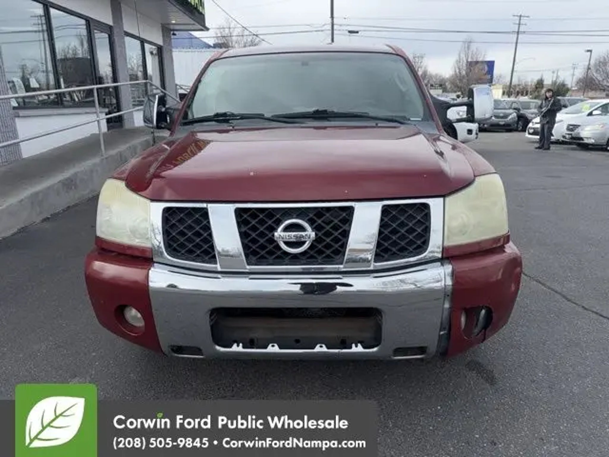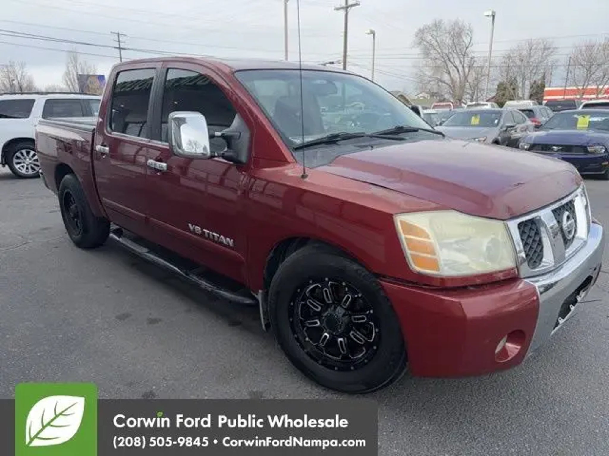 Meet our 2005 Nissan Titan LE Crew Cab 4X4 in Sonoma Sunset Metallic. Powered by a 5.6 Liter V8 that delivers 317hp paired with a 5 Speed Automatic transmission. This Four Wheel Drive is ready for anything, including earning 19mpg on the road. Accented by running boards, sleek alloy wheels, and a tonneau cover. The LE packs a lot of features into a large truck! Comfortable seating, heated mirrors, and AM/FM stereo, CD player, a rear parking aid, keyless entry, and a pass-through rear seat are all included. Load up the family, crank up the tunes and hit the road! This Titan LE from Nissan comes with all the safety features you need. With an army of airbags, traction control, and tow hooks, you'll be able to breathe easier behind the wheel with loved ones in tow. In fact, the IIHS gave this truck it's highest rating for a head-on collision. Save this Page and Call for Availability. We Know You Will Enjoy Your Test Drive Towards Ownership! Corwin Ford Nampa! Friendly service and aggressive pricing is why we are your new and pre-owned vehicle dealer serving, Nampa, Boise, Meridian, Caldwell, Kuna, Eagle, Emmett, Idaho City, Wilder, New Plymouth, Star, Middleton, Weiser, Payette, Horseshoe Bend, Mountain Home, Idaho, and surrounding states.