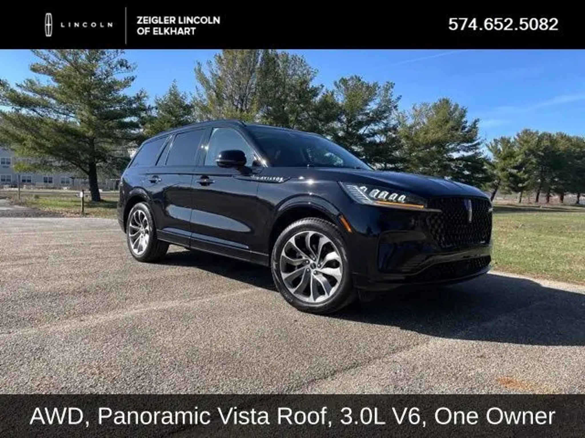 Black Metallic 2025 Lincoln Aviator Premiere PUSH BUTTON START, REAR VIEW CAMERA, REMOTE START, REVERSE SENSING SYSTEM, SYNC, HEATED SEATS, BLUETOOTH, AWD, Aviator Premiere, 4D Sport Utility, 3.0L V6, AWD, Black Metallic, Advanced Heads-Up Display, Auto Air Refresh, Black Exterior Elements, Body-Color Exterior Elements, Equipment Group 101A, Heated 2nd Row Seats, Jet Appearance Package, Lincoln BlueCruise Equipped (4-Years Included), Navigation system: Connected Navigation (1-year trial), Radio: Revel Audio System w/14 Speakers, Wheels: 21 Bright-Machined Aluminum, Wireless Charging. ****Call or text Troy Kennedy at 574-333-8999 for additional details or to schedule a test drive**** At Zeigler Lincoln of Elkhart, located at 2525 Bypass Rd. Elkhart, IN 46514. Read our customer reviews or visit us on the web at www.zlincoln.com. Serving Michigan and all of our surrounding cities like Goshen, South Bend, Granger, Osceola, Mishawaka, Warsaw, Plymouth, Niles, Union, Edwardsburg, Bristol, Shipshewana, & including the entire Michiana area, and anywhere in the great state of Indiana. Zeigler Lincoln- FOR A GREAT EXPERIENCE. Odometer is 563 miles below market average!