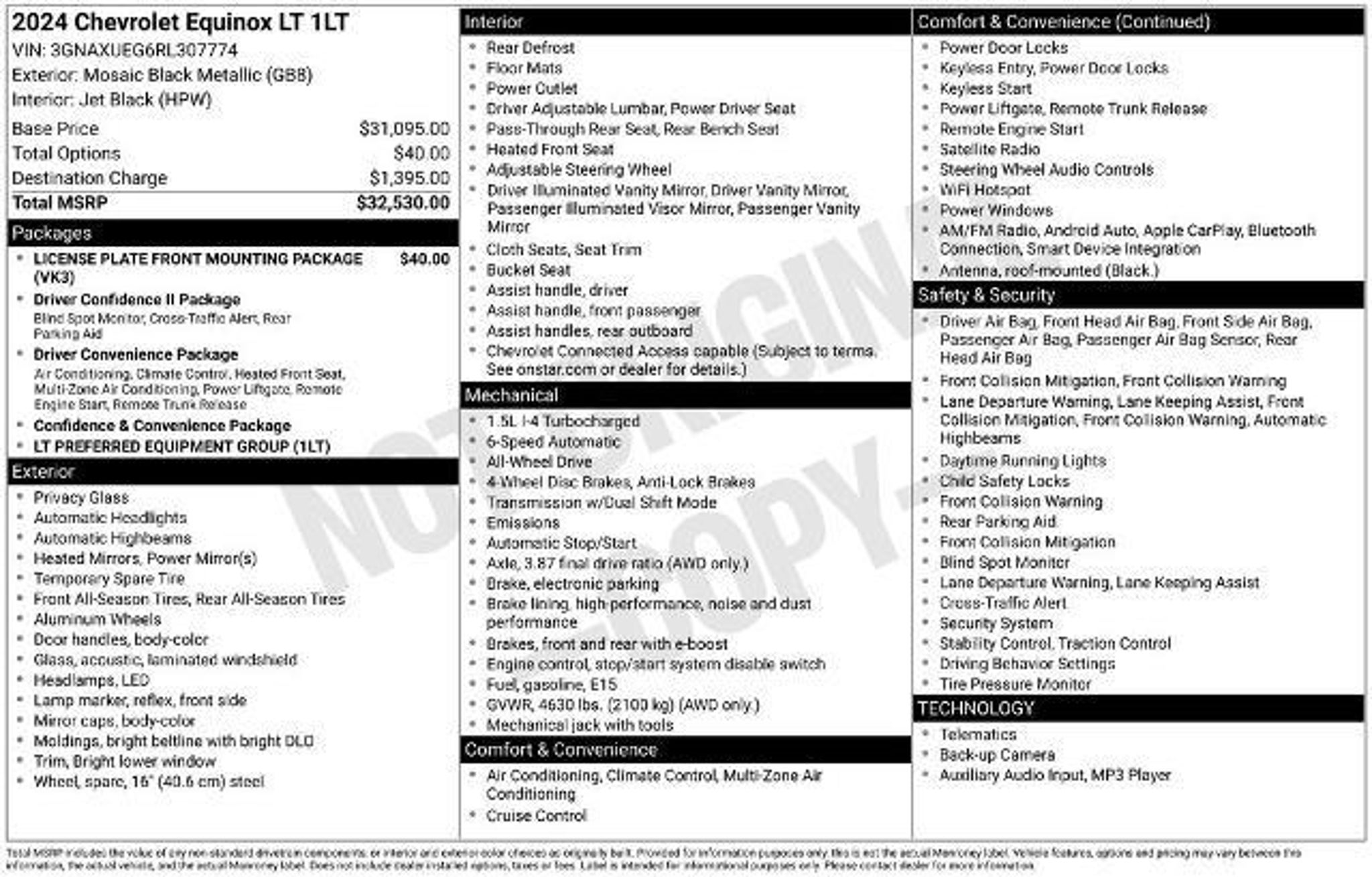 Priced below KBB Fair Purchase Price! Odometer is 24744 miles below market average! Mosaic Black Metallic 2024 Chevrolet Equinox LT AWD 1.5L DOHC AWD. You can Fill out a Free Super Quick Pre-Approval Credit Application here! https://www.smartfordsouthboston.com/finance/apply-for-financing/ FINANCING FOR ALL TYPES OF CREDIT! SLOW PAYMENTS, BANKRUPTCY, REPOSESSION, COLLECTIONS, JUDGEMENTS, DIVORCE NO PROBLEM! MONTHLY PAYMENTS TO FIT ANY INCOME! TRADE-INS WELCOME! WE BUY CARS Everyday, Even if you don't buy ours! Prices do not include additional fees and costs of closing, including government fees and taxes, any finance charges, any dealer administrative fees, any emissions testing fees or other fees. All prices, specifications and availability subject to change without notice. Contact dealer for most current information. Preferred Equipment Group 1LT, AWD, 17 Aluminum Wheels, 2 Rear USB Charging-Only Ports, 2 USB Ports & Auxiliary Input Jack, 2-Way Power Driver Lumbar Control Seat Adjuster, 3.87 Final Drive Axle Ratio, 4-Wheel Disc Brakes, 6 Speakers, 6-Speaker Audio System Feature, ABS brakes, Air Conditioning, Alloy wheels, AM/FM radio: SiriusXM, Auto High-beam Headlights, Automatic temperature control, Bluetooth? For Phone, Brake assist, Bumpers: body-color, Compass, Delay-off headlights, Driver 8-Way Power Seat Adjuster, Driver door bin, Driver vanity mirror, Dual front impact airbags, Dual front side impact airbags, Electronic Stability Control, Emergency communication system: OnStar and Chevrolet connected services capable, Four wheel independent suspension, Front anti-roll bar, Front Bucket Seats, Front Center Armrest, Front dual zone A/C, Front Passenger 4-Way Manual Seat Adjuster, Front reading lights, Fully automatic headlights, Heated door mirrors, Heated Driver & Front Passenger Seats, Heated front seats, Illuminated entry, Low tire pressure warning, Occupant sensing airbag, Outside temperature display, Overhead airbag, Overhead console, Panic alarm, Passenger door bin, Passenger vanity mirror, Power door mirrors, Power driver seat, Power Liftgate, Power steering, Power windows, Premium audio system: Chevrolet Infotainment 3, Premium Cloth Seat Trim, Radio data system, Radio: Chevrolet Infotainment 3 System w/AM/FM, Rear anti-roll bar, Rear reading lights, Rear seat center armrest, Rear window defroster, Rear window wiper, Remote keyless entry, Security system, SiriusXM, Speed control, Speed-sensing steering, Split folding rear seat, Spoiler, Steering wheel mounted audio controls, Tachomet