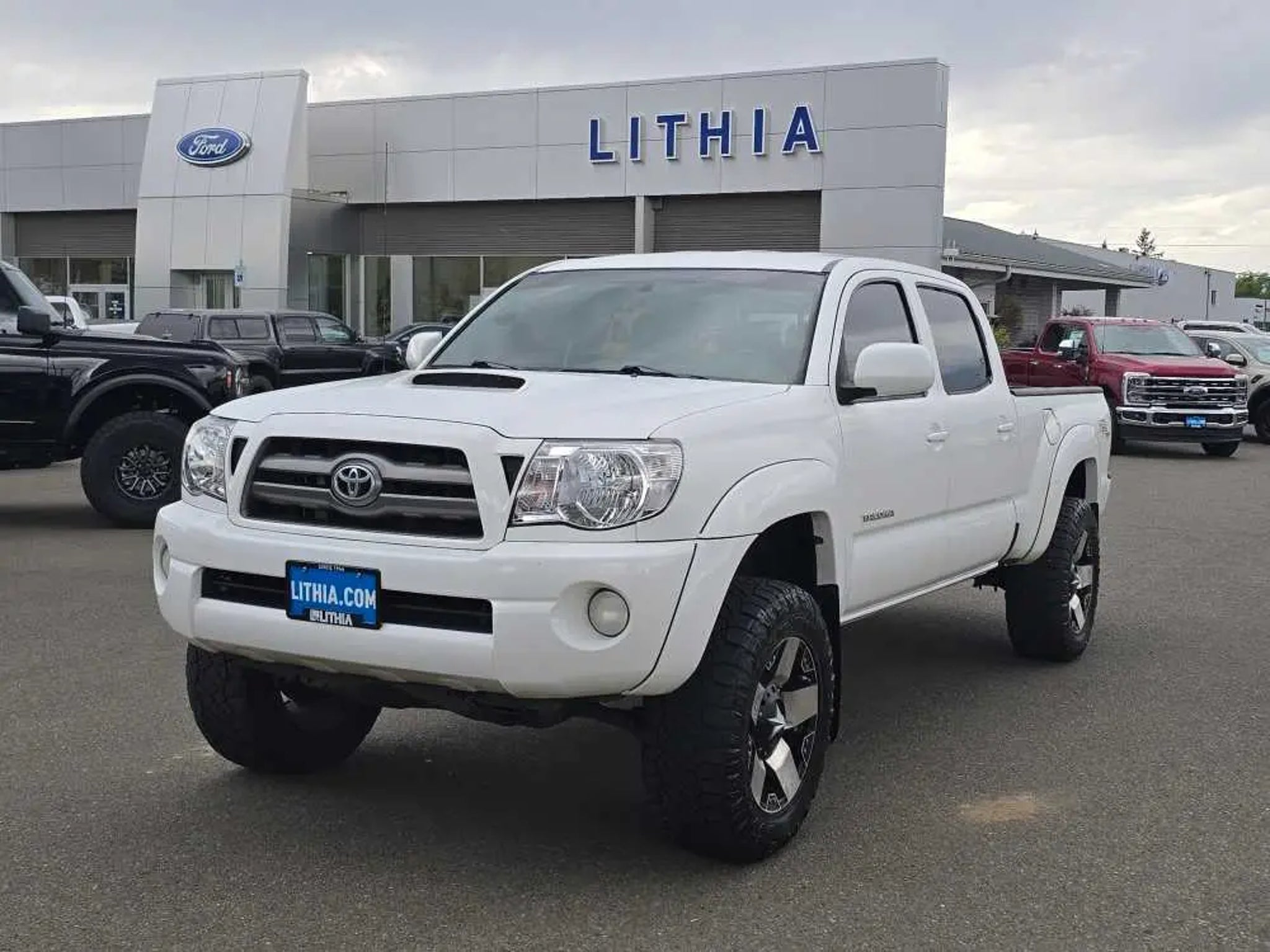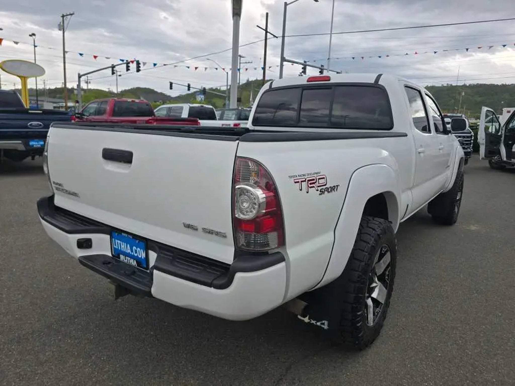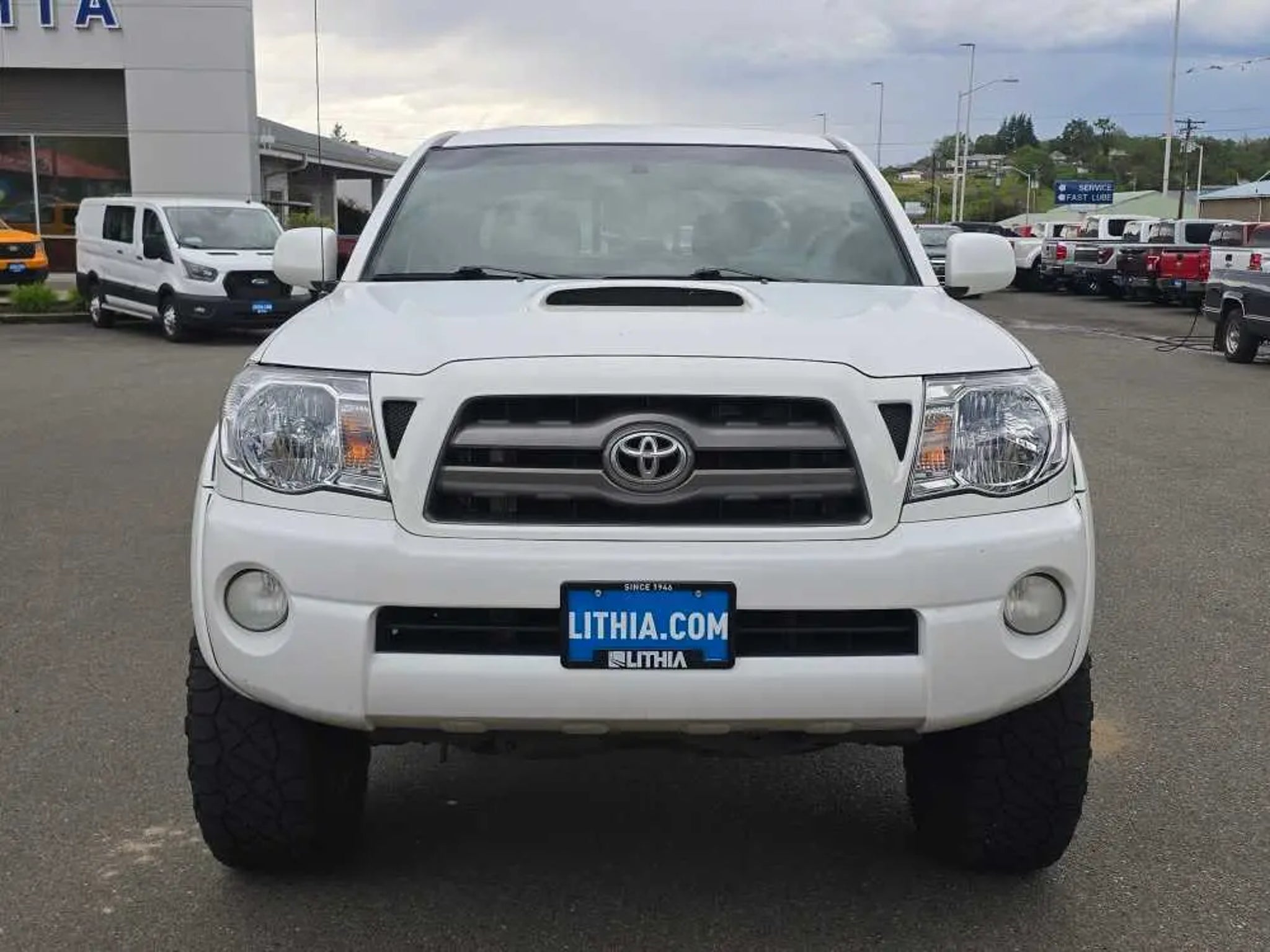 EPA 20 MPG Hwy/16 MPG City! Clean. Super White exterior and Graphite interior. 4x4, Hitch, TRD SPORT PKG W/JBL AUDIO, TOWING PKG, Non-Smoker vehicle. 5 Star Driver Front Crash Rating. READ MORE! KEY FEATURES INCLUDE 4x4 Child Safety Locks, Brake Assist, 4-Wheel ABS, Front Disc/Rear Drum Brakes, Tire Pressure Monitoring System. OPTION PACKAGES TRD SPORT PKG W/JBL AUDIO sport suspension w/Bilstein shocks, 17 alloy wheels w/P265/65R17 tires, hood scoop, color-keyed grille surround, bumpers, mirrors, door handles & overfenders, smoked headlamp trim, sliding rear window w/privacy glass, 115V/400W deck pwr outlets, fog lamps, remote keyless entry, cruise control, variable speed wipers, overhead console w/compass & exterior temp gauge, sport seats w/driver lumbar support, sport fabric seats, leather-wrapped steering wheel w/audio & Bluetooth® controls, leather-wrapped shifter, dual visors w/mirrors & extenders, backup camera & auto-dimming interior mirror w/monitor, TRD sport graphics, JBL AM/FM stereo w/6-disc in-dash CD changer, (7) speakers, aux audio input, MP3/WMA playback, XM satellite radio, Bluetooth®, TOWING PKG 6500 Max tow cap, class 4 hitch, trans oil cooler, supplemental oil cooler, HD battery, 130-amp alternator, 7-pin connector w/converter. 2010 Toyota Tacoma with Super White exterior and Graphite interior features a V6 Cylinder Engine with 236 HP at 5200 RPM*. Non-Smoker vehicle VEHICLE REVIEWS Toyotas mid-size pickup holds its ground in a segment hit hard by a lack of buyer interest and industry investment. -CarAndDriver.com. 5 Star Driver Front Crash Rating. 5 Star Driver Side Crash Rating. Great Gas Mileage: 20 MPG Hwy. MORE ABOUT US Lithia Ford of Roseburg is a Douglas County, OR car dealer committed to earning customers for life. That means we respect your time, treat you like a neighbor and listen to what you are looking for and then give you straightforward information you need to make an intelligent decision.We proudly serve our neighbors in Roseburg and the surrounding I-5 corridor communities of Sutherlin, Winston, Green and even Eugene. Plus license and title, and $250 title and registration processing fee. Price does not include a charge for 0.40% Oregon Corporate Activity Tax. A 0.5% state privilege tax will be added to new vehicles. Not all sales at MSRP.