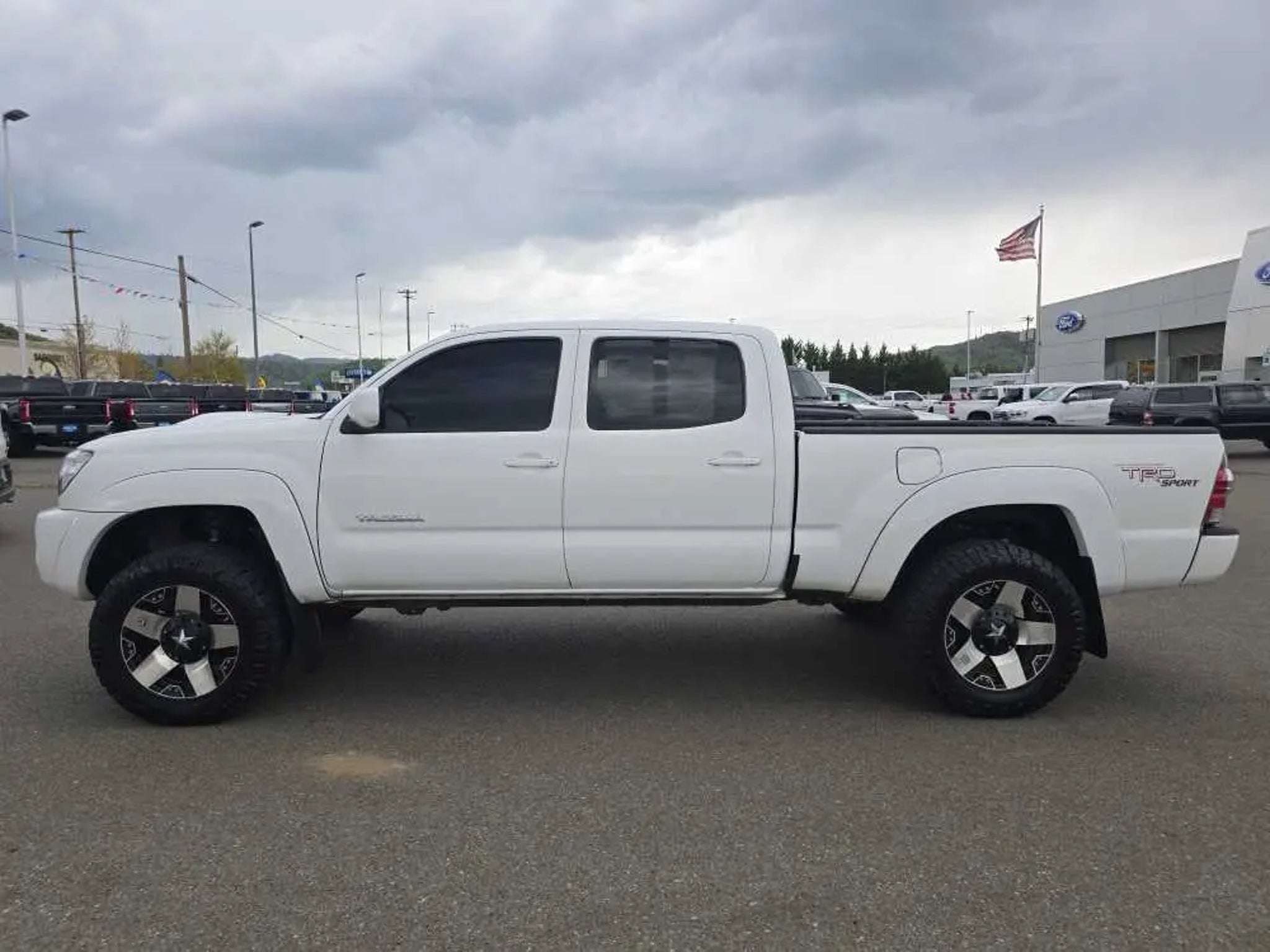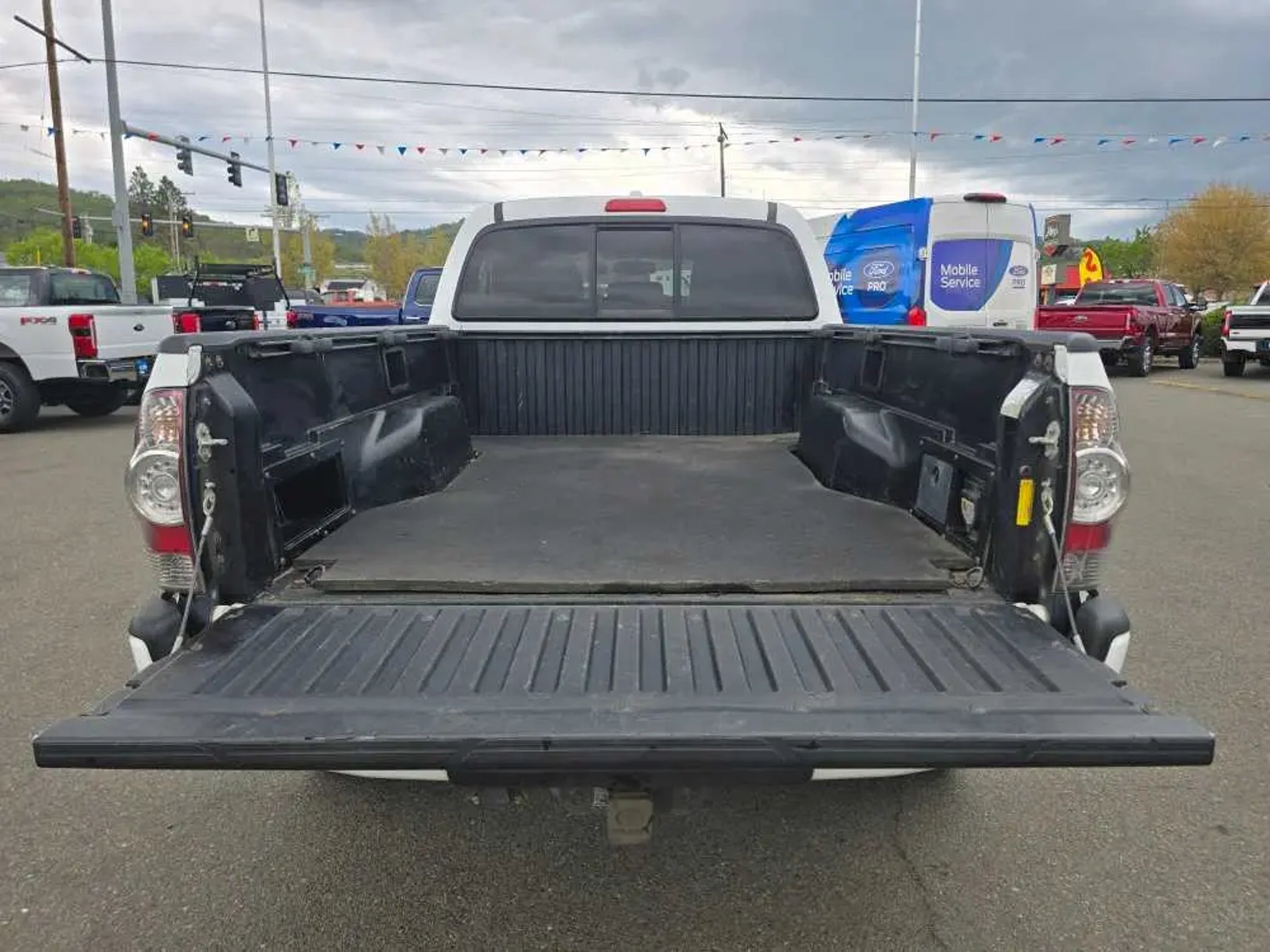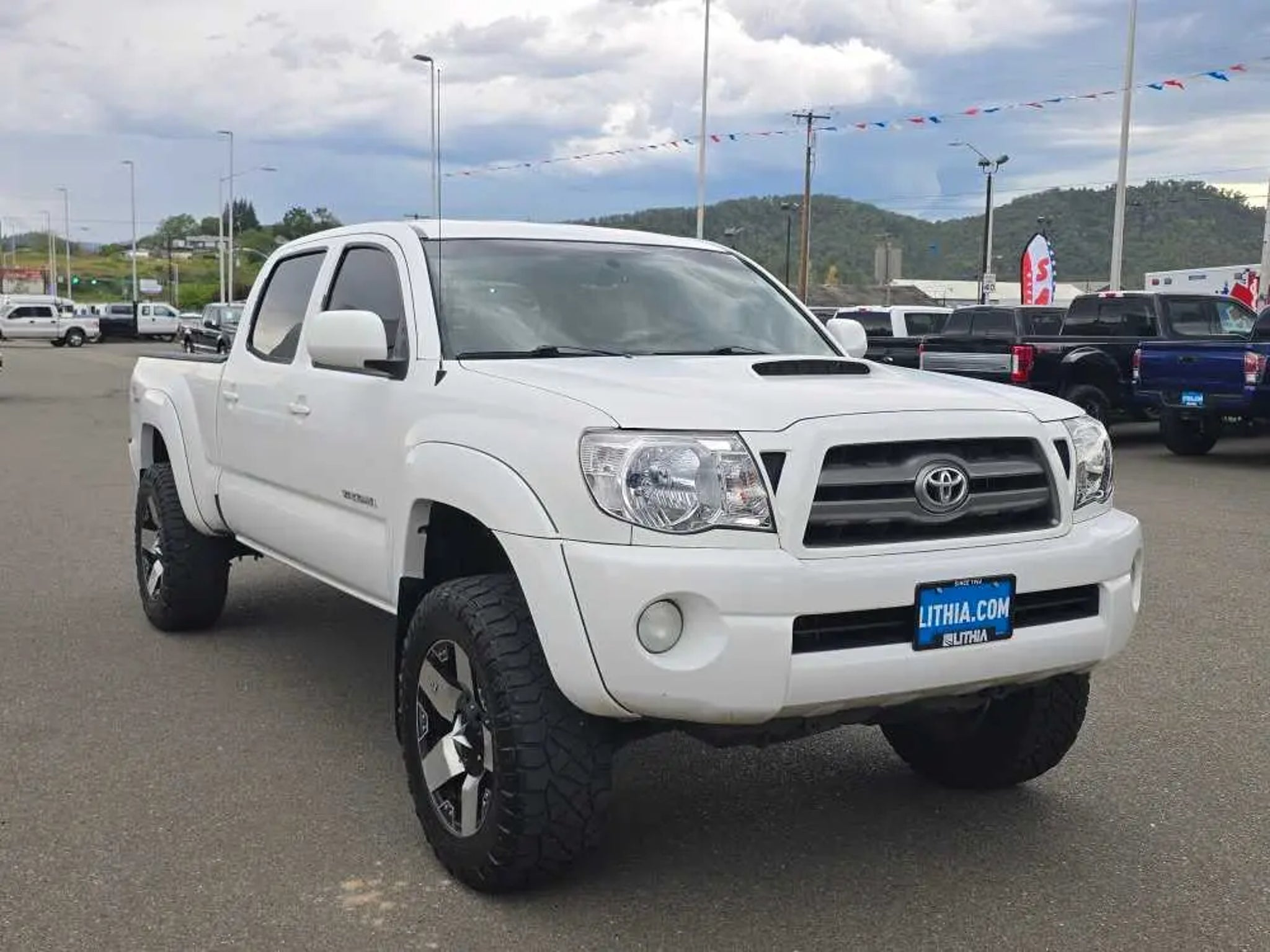 EPA 20 MPG Hwy/16 MPG City! Clean. Super White exterior and Graphite interior. 4x4, Hitch, TRD SPORT PKG W/JBL AUDIO, TOWING PKG, Non-Smoker vehicle. 5 Star Driver Front Crash Rating. READ MORE! KEY FEATURES INCLUDE 4x4 Child Safety Locks, Brake Assist, 4-Wheel ABS, Front Disc/Rear Drum Brakes, Tire Pressure Monitoring System. OPTION PACKAGES TRD SPORT PKG W/JBL AUDIO sport suspension w/Bilstein shocks, 17 alloy wheels w/P265/65R17 tires, hood scoop, color-keyed grille surround, bumpers, mirrors, door handles & overfenders, smoked headlamp trim, sliding rear window w/privacy glass, 115V/400W deck pwr outlets, fog lamps, remote keyless entry, cruise control, variable speed wipers, overhead console w/compass & exterior temp gauge, sport seats w/driver lumbar support, sport fabric seats, leather-wrapped steering wheel w/audio & Bluetooth® controls, leather-wrapped shifter, dual visors w/mirrors & extenders, backup camera & auto-dimming interior mirror w/monitor, TRD sport graphics, JBL AM/FM stereo w/6-disc in-dash CD changer, (7) speakers, aux audio input, MP3/WMA playback, XM satellite radio, Bluetooth®, TOWING PKG 6500 Max tow cap, class 4 hitch, trans oil cooler, supplemental oil cooler, HD battery, 130-amp alternator, 7-pin connector w/converter. 2010 Toyota Tacoma with Super White exterior and Graphite interior features a V6 Cylinder Engine with 236 HP at 5200 RPM*. Non-Smoker vehicle VEHICLE REVIEWS Toyotas mid-size pickup holds its ground in a segment hit hard by a lack of buyer interest and industry investment. -CarAndDriver.com. 5 Star Driver Front Crash Rating. 5 Star Driver Side Crash Rating. Great Gas Mileage: 20 MPG Hwy. MORE ABOUT US Lithia Ford of Roseburg is a Douglas County, OR car dealer committed to earning customers for life. That means we respect your time, treat you like a neighbor and listen to what you are looking for and then give you straightforward information you need to make an intelligent decision.We proudly serve our neighbors in Roseburg and the surrounding I-5 corridor communities of Sutherlin, Winston, Green and even Eugene. Plus license and title, and $250 title and registration processing fee. Price does not include a charge for 0.40% Oregon Corporate Activity Tax. A 0.5% state privilege tax will be added to new vehicles. Not all sales at MSRP.