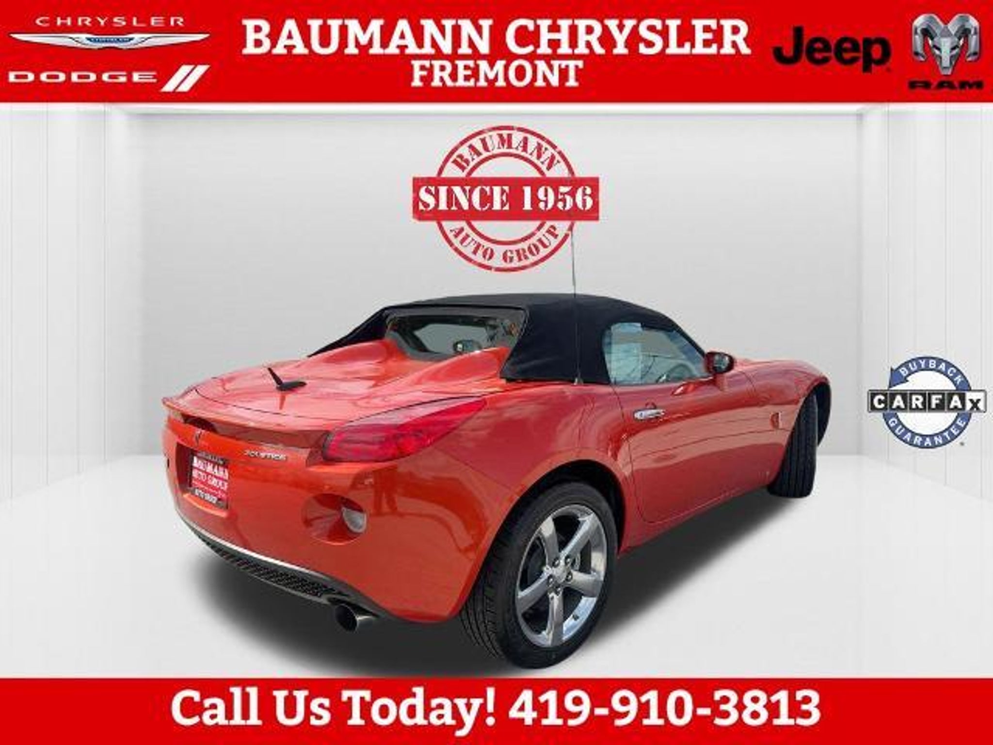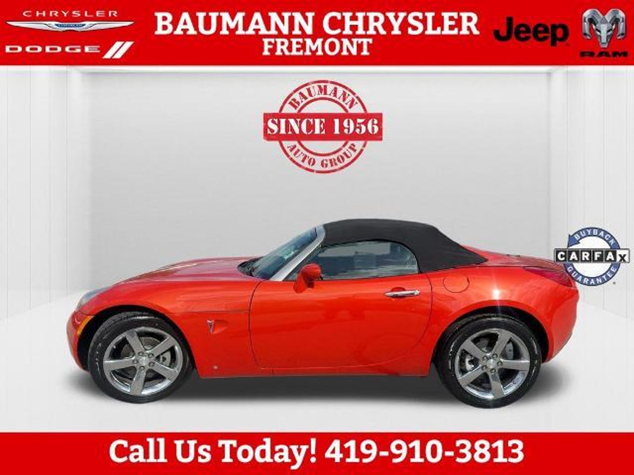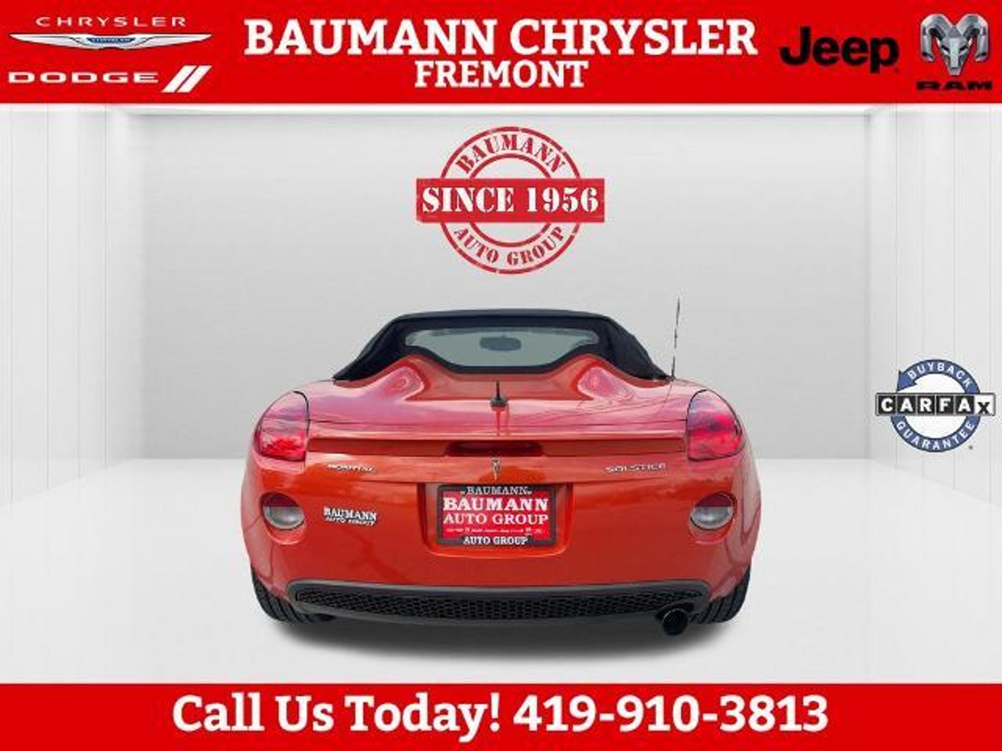 Odometer is 46061 miles below market average! Brazen (Inferno Orange Metallic) 2008 Pontiac Solstice RWD 2D Convertible ECOTEC 2.4L I4 SFI DOHC VVT 5-Speed Automatic RWD Buy with Confidence with no worries!! Car shopping is sometimes inconvenient and stressful, and we want to take the hassle out of this all-too-common experience. If you?re interested in more convenience, less frustration and a process that works efficiently to meet your needs as a customer. Al BAUMANN AUTO GROUP. The Best Price Up Front Cash Offers For Any Trade-In Multiple Financing Quotes In Minutes A Team Of Dedicated Salespeople. CALL.{419-332-8291}{1-877-394-1162}, 3-Spoke Leather-Wrapped Steering Wheel, Body-Color Power Outside Mirrors, Convenience Package, Electronic Cruise Control w/Set & Resume Speed, Front Halogen Fog Lamps, Limited-Slip Rear Differential, Power Door Locks, Power Windows, Preferred Package, Premium Package, Remote Keyless Entry, StabiliTrak Vehicle Stability Enhancement System, Steering Wheel Accessory Controls, 18 Chromed Aluminum Wheels, 18 Silver-Painted Aluminum Wheels, 4-Wheel Antilock 4-Wheel Disc Brakes, 4-Wheel Disc Brakes, 6 Speakers, Alloy wheels, AM/FM radio: XM, AM/FM Stereo w/CD Player/XM Satellite, AM/FM Stereo w/XM Satellite, Bumpers: body-color, CD player, Cloth Seat Trim, Color-Keyed Front Carpeted Floor Mats, Convertible roof lining, Delay-off headlights, Driver 2-Way Power Height Adjustment, Driver vanity mirror, Dual front impact airbags, Emergency communication system: OnStar Safe & Sound, Four wheel independent suspension, Front anti-roll bar, Front Bucket Seats, Front License Plate Bracket, Front reading lights, Fully automatic headlights, Glass rear window, Low tire pressure warning, Occupant sensing airbag, Power driver seat, Power steering, Radio data system, Rear anti-roll bar, Rear Spoiler, Rear window defroster, Single-Zone Manual Air Conditioning, Speed-Sensitive Wipers, Sport Metallic Pedals, Tachometer, Tilt steering wheel, Trip computer, Variably intermittent wipers, XM Satellite Radio, 3-Spoke Leather-Wrapped Steering Wheel, Body-Color Power Outside Mirrors, Convenience Package, Electronic Cruise Control w/Set & Resume Speed, Front Halogen Fog Lamps, Limited-Slip Rear Differential, Power Door Locks, Power Windows, Preferred Package, Premium Package, Remote Keyless Entry, StabiliTrak Vehicle Stability Enhancement System, Steering Wheel Accessory Controls.