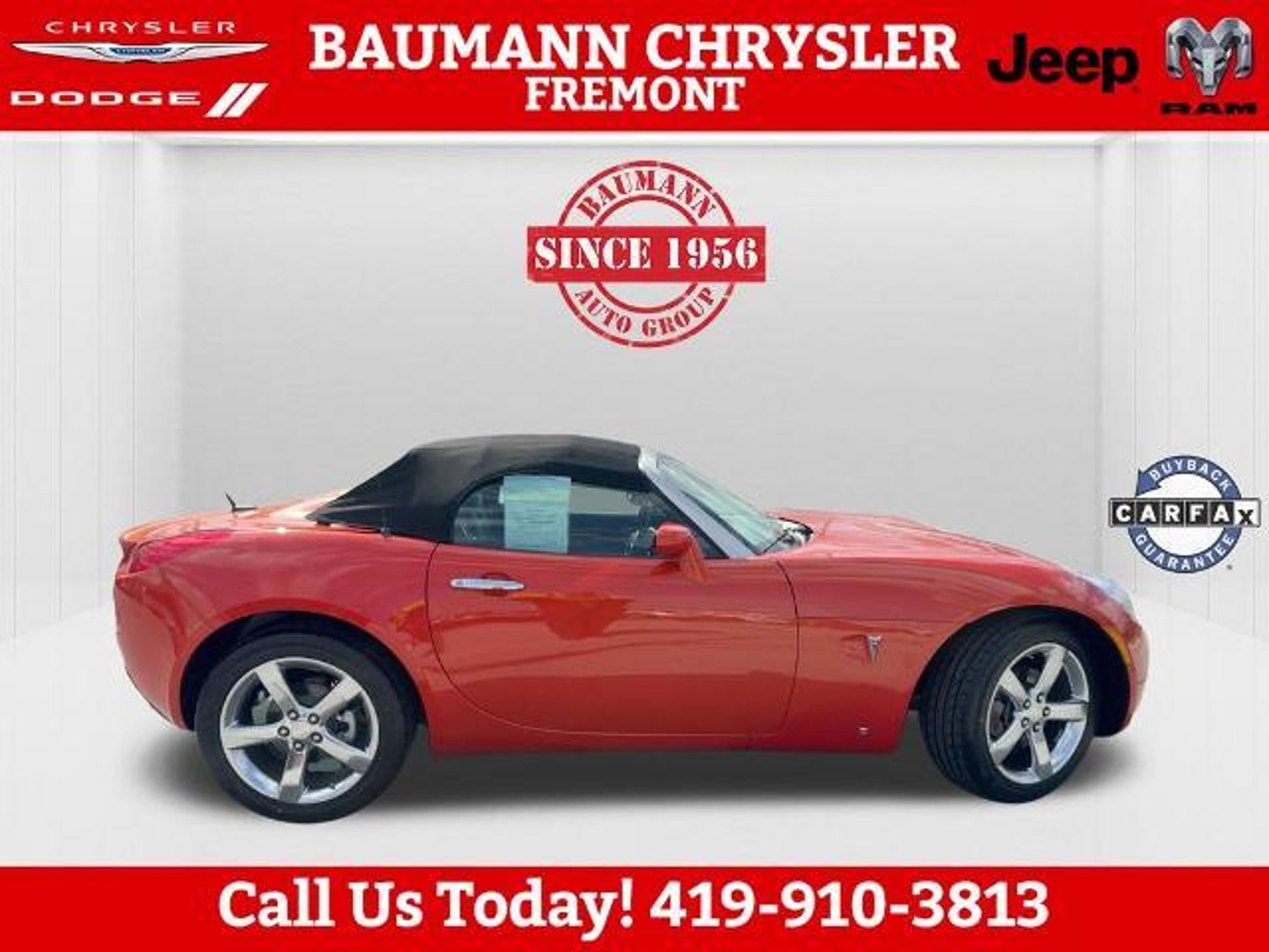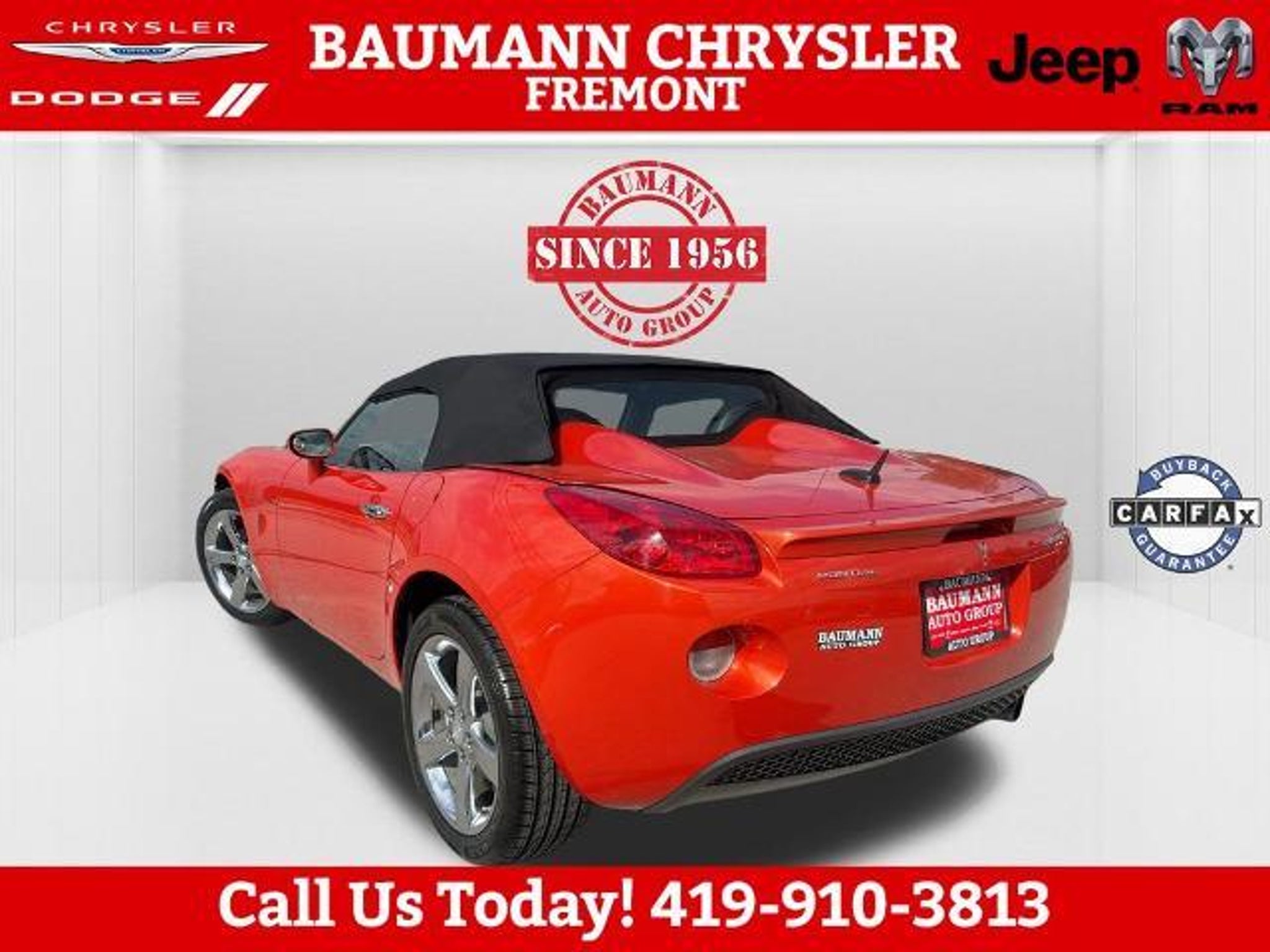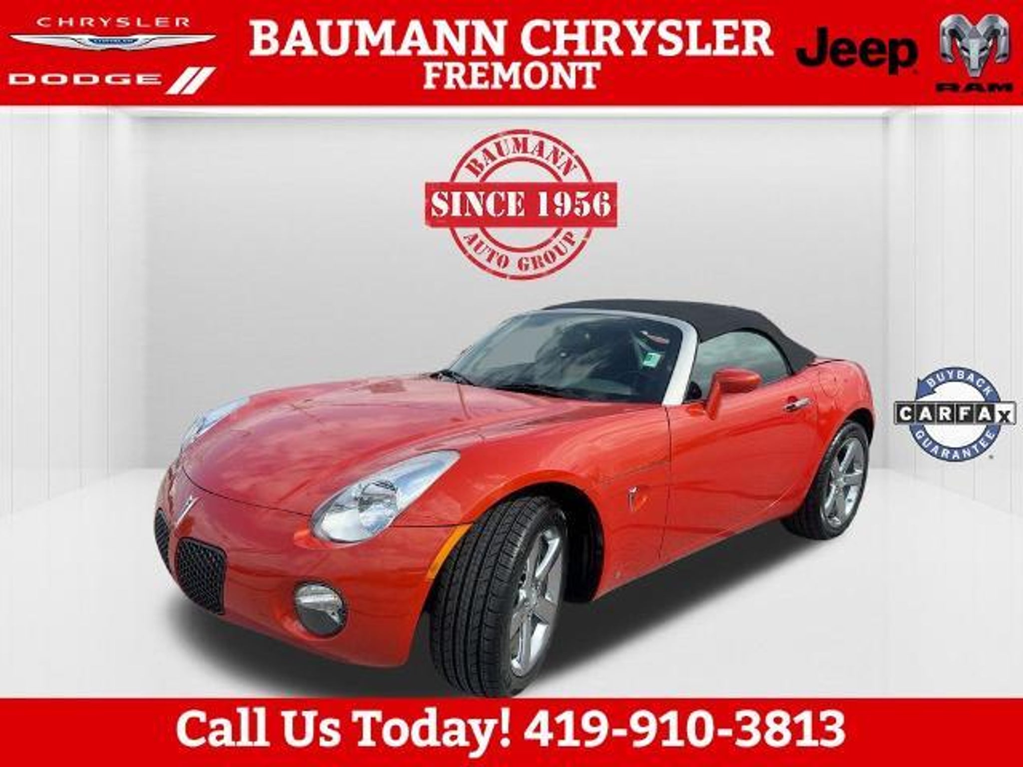 Odometer is 46061 miles below market average! Brazen (Inferno Orange Metallic) 2008 Pontiac Solstice RWD 2D Convertible ECOTEC 2.4L I4 SFI DOHC VVT 5-Speed Automatic RWD Buy with Confidence with no worries!! Car shopping is sometimes inconvenient and stressful, and we want to take the hassle out of this all-too-common experience. If you?re interested in more convenience, less frustration and a process that works efficiently to meet your needs as a customer. Al BAUMANN AUTO GROUP. The Best Price Up Front Cash Offers For Any Trade-In Multiple Financing Quotes In Minutes A Team Of Dedicated Salespeople. CALL.{419-332-8291}{1-877-394-1162}, 3-Spoke Leather-Wrapped Steering Wheel, Body-Color Power Outside Mirrors, Convenience Package, Electronic Cruise Control w/Set & Resume Speed, Front Halogen Fog Lamps, Limited-Slip Rear Differential, Power Door Locks, Power Windows, Preferred Package, Premium Package, Remote Keyless Entry, StabiliTrak Vehicle Stability Enhancement System, Steering Wheel Accessory Controls, 18 Chromed Aluminum Wheels, 18 Silver-Painted Aluminum Wheels, 4-Wheel Antilock 4-Wheel Disc Brakes, 4-Wheel Disc Brakes, 6 Speakers, Alloy wheels, AM/FM radio: XM, AM/FM Stereo w/CD Player/XM Satellite, AM/FM Stereo w/XM Satellite, Bumpers: body-color, CD player, Cloth Seat Trim, Color-Keyed Front Carpeted Floor Mats, Convertible roof lining, Delay-off headlights, Driver 2-Way Power Height Adjustment, Driver vanity mirror, Dual front impact airbags, Emergency communication system: OnStar Safe & Sound, Four wheel independent suspension, Front anti-roll bar, Front Bucket Seats, Front License Plate Bracket, Front reading lights, Fully automatic headlights, Glass rear window, Low tire pressure warning, Occupant sensing airbag, Power driver seat, Power steering, Radio data system, Rear anti-roll bar, Rear Spoiler, Rear window defroster, Single-Zone Manual Air Conditioning, Speed-Sensitive Wipers, Sport Metallic Pedals, Tachometer, Tilt steering wheel, Trip computer, Variably intermittent wipers, XM Satellite Radio, 3-Spoke Leather-Wrapped Steering Wheel, Body-Color Power Outside Mirrors, Convenience Package, Electronic Cruise Control w/Set & Resume Speed, Front Halogen Fog Lamps, Limited-Slip Rear Differential, Power Door Locks, Power Windows, Preferred Package, Premium Package, Remote Keyless Entry, StabiliTrak Vehicle Stability Enhancement System, Steering Wheel Accessory Controls.
