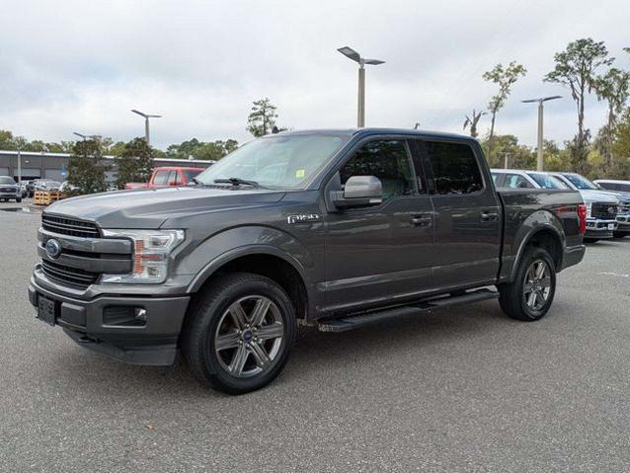 Certified. 2020 Ford F-150 Lariat 4WD 10-Speed Automatic 3.5L V6 EcoBoost Magnetic Metallic F-150 Lariat, 4WD, 110V/400W Outlet, 2-Bar Body-Color Grille w/4 Minor Bars, 2nd Row Heated Seats, 360 Camera w/Split-View Display, 4x4 FX4 Off-Road Bodyside Decal, Accent-Color Angular Step Bars, Active Park Assist, Body-Color Front & Rear Bumpers, Box Side Decals, Chrome 2-Bar Grille w/4 Minor Bars, Chrome Angular Step Bars, Chrome Door & Tailgate Handles w/Body-Color Bezel, Chrome Skull Caps on Exterior Mirrors, Electronic Locking w/3.55 Axle Ratio, Equipment Group 502A Luxury, FX4 Off-Road Package, Heated Steering Wheel, Hill Descent Control, Lariat Bed Utility Package, Lariat Chrome Appearance Package, Lariat Sport Appearance Package, Leather-Trimmed Bucket Seats, LED Sideview Mirror Spotlights, Off-Road Tuned Front Shock Absorbers, Power Glass Sideview Mirr w/Chrome Skull Caps, Power Tilt/Telescoping Steering Column w/Memory, Quad Beam LED Headlamps & LED Taillamps/Fog Lamps, Radio: B&O Sound System by Bang & Olufsen, Rain-Sensing Wipers, Remote Start System w/Remote Tailgate Release, Reverse Sensing System, Single-Tip Chrome Exhaust, Technology Package, Tray Style Floor Liner, Twin Panel Moonroof, Universal Garage Door Opener, Wheels: 20 6-Spoke Dark Alloy Painted, Windshield Wiper De-Icer. THIS VEHICLE INCLUDES THE FOLLOWING FEATURES AND OPTIONS: Equipment Group 502A Luxury (110V/400W Outlet, 2nd Row Heated Seats, Heated Steering Wheel, Leather-Trimmed Bucket Seats, LED Sideview Mirror Spotlights, Power Glass Sideview Mirr w/Chrome Skull Caps, Power Tilt/Telescoping Steering Column w/Memory, Quad Beam LED Headlamps & LED Taillamps/Fog Lamps, Radio: B&O Sound System by Bang & Olufsen, Rain-Sensing Wipers, Remote Start System w/Remote Tailgate Release, Reverse Sensing System, Universal Garage Door Opener, and Windshield Wiper De-Icer), FX4 Off-Road Package (4x4 FX4 Off-Road Bodyside Decal, Hill Descent Control, Off-Road Tuned Front Shock Absorbers, and Tray Style Floor Liner), Lariat Bed Utility Package, Lariat Chrome Appearance Package (Chrome 2-Bar Grille w/4 Minor Bars, Chrome Angular Step Bars, Chrome Door & Tailgate Handles w/Body-Color Bezel, Chrome Skull Caps on Exterior Mirrors, and Single-Tip Chrome Exhaust), Lariat Sport Appearance Package (2-Bar Body-Color Grille w/4 Minor Bars, Accent-Color Angular Step Bars, Body-Color Front & Rear Bumpers, and Box Side Decals), Technology Package (360 Camera w/Split-View Display and Active Park Assist), GVWR: 7,050 lbs Payload Package, F-150 Lariat, Ford Blue Advantage: Blue Certified Certified, 4WD, Electronic Locking w/3.55 Axle Ratio, Twin Panel Moonroof, Wheels: 20 6-Spoke Dark Alloy Painted, 4-Wheel Disc Brakes, 7 Speakers, ABS brakes, Adjustable pedals, Air Conditioning, Alloy wheels, AM/FM radio: SiriusXM, Auto High-beam Headlights, Auto-dimming door mirrors, Auto-dimming Rear-View mirror, Automatic temperature control, Brake assist, Bumpers: chrome, Class IV Trailer Hitch Receiver, Compass, Delay-off headlights, Driver door bin, Driver vanity mirror, Dual front impact airbags, Dual front side impact airbags, Electronic Stability Control, Emergency communication system: SYNC 3 911 Assist, Extended Range 36 Gallon Fuel Tank, Exterior Parking Camera Rear, Front anti-roll bar, Front Center Armrest w/Storage, Front dual zone A/C, Front fog lights, Front License Plate Bracket, Front reading lights, Front wheel independent suspension, Fully automatic headlights, Heated door mirrors, Heated front seats, Illuminated entry, Integrated Trailer Brake Controller, Leather-Trimmed 40/20/40 Front Seat, Low tire pressure warning, Memory seat, Occupant sensing airbag, Outside temperature display, Overhead airbag, Overhead console, Panic alarm, Passenger door bin, Passenger vanity mirror, Pedal memory, Power door mirrors, Power driver seat, Power Glass Sideview Mirr w/Body-Color Skull Caps, Power passenger seat, Power steering, Power windows, Radio data system, Radio: AM/FM Stereo w/6 Speaker