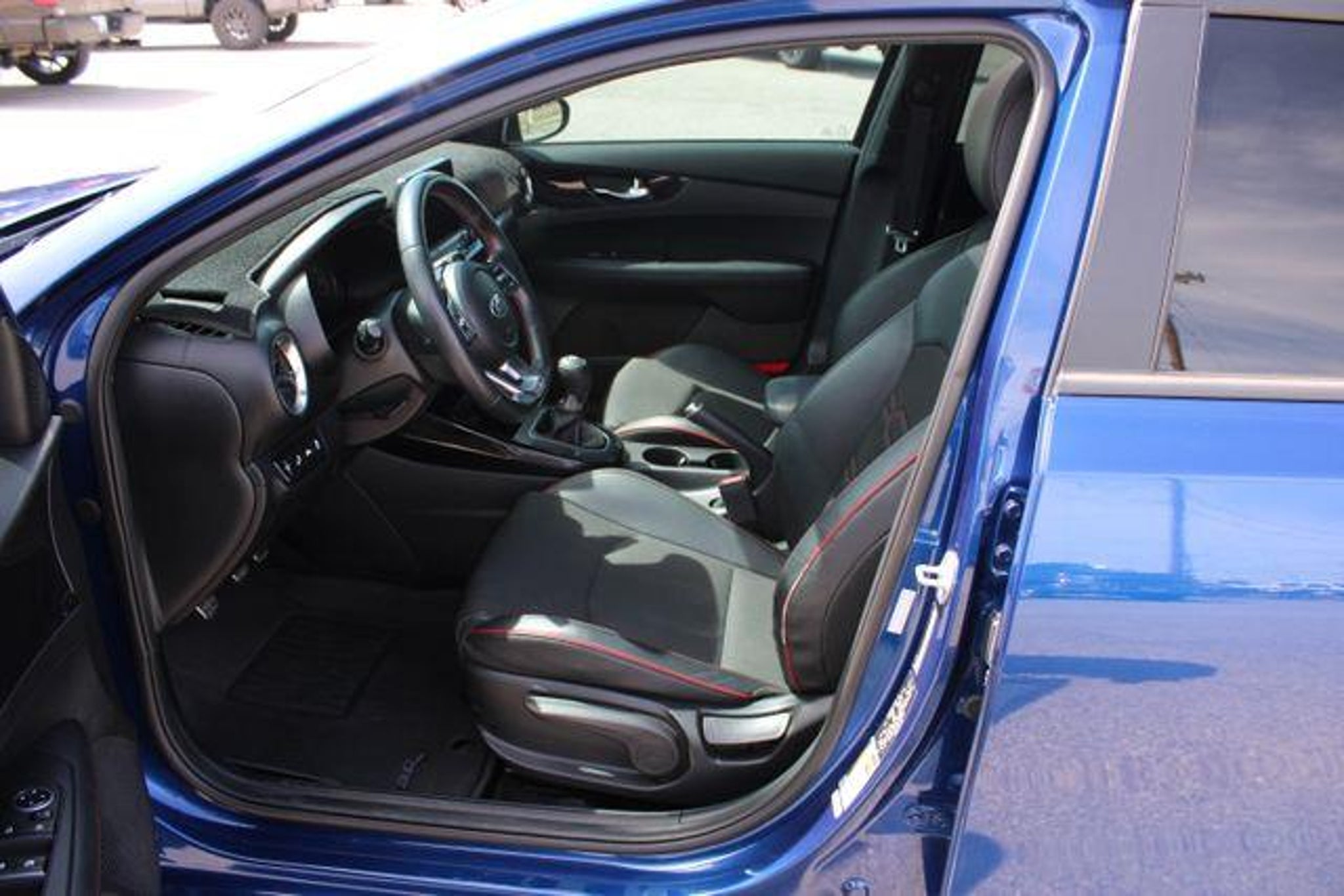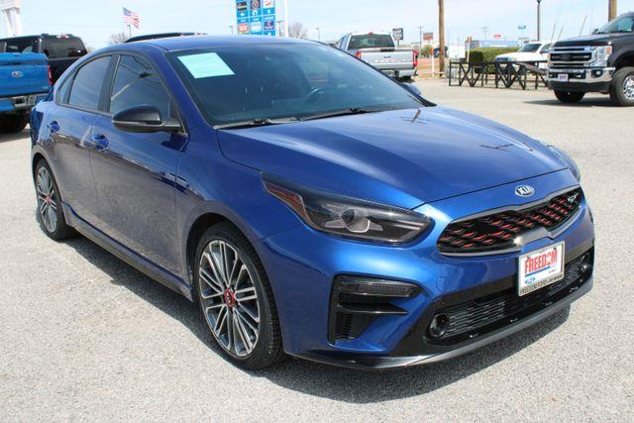 Deep Sea Blue 2021 Kia Forte GT Odometer is 1426 miles below market average! 25/32 City/Highway MPG EQUIPPED WITH 4-Wheel Disc Brakes, 8 Speakers, ABS brakes, Air Conditioning, Alloy wheels, AM/FM radio: SiriusXM, Apple CarPlay & Android Auto, Auto High-beam Headlights, Brake assist, Bumpers: body-color, Cloth & Leatherette Seat Trim, Delay-off headlights, Driver door bin, Driver vanity mirror, Dual front impact airbags, Dual front side impact airbags, Electronic Stability Control, Emergency communication system: UVO eServices, Exterior Parking Camera Rear, Four wheel independent suspension, Front anti-roll bar, Front Bucket Seats, Front Center Armrest, Front fog lights, Front reading lights, Front Sport Seats, Fully automatic headlights, Heated door mirrors, Illuminated entry, Lane Departure Warning System, Leather steering wheel, Low tire pressure warning, Occupant sensing airbag, Outside temperature display, Overhead airbag, Overhead console, Panic alarm, Passenger door bin, Passenger vanity mirror, Power door mirrors, Power moonroof, Power steering, Power windows, Radio data system, Radio: AM/FM/MP3 harman/kardon Premium Audio System, Rear anti-roll bar, Rear reading lights, Rear seat center armrest, Rear window defroster, Remote keyless entry, Security system, Speed control, Split folding rear seat, Spoiler, Sport steering wheel, Steering wheel mounted audio controls, Tachometer, Telescoping steering wheel, Tilt steering wheel, Traction control, Trip computer, Turn signal indicator mirrors, Variably intermittent wipers, and Wheels: 18 Machine Finish Alloy. Buy with a peace of mind! We Perform a quality inspection on all of our Pre-Owned vehicles, Which means that your Pre-Owned Vehicle will be in Top Condition when you drive it home. We are committed to offer CarFax reports with every Pre-Owned vehicle we sell. Extended Service contracts offered on all vehicles. Stop Shopping Start Driving. Our vehicles are priced to move fast so act quickly!