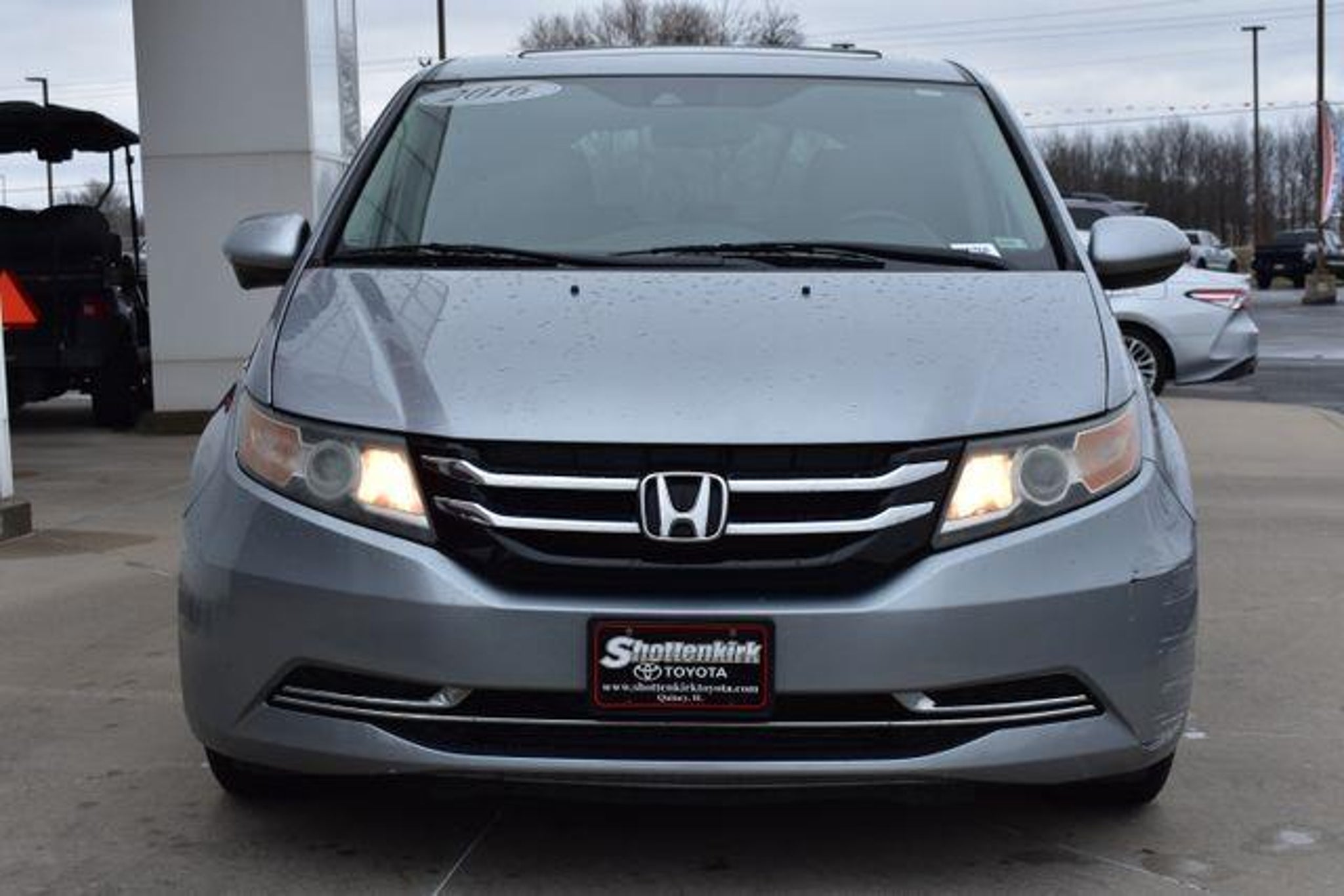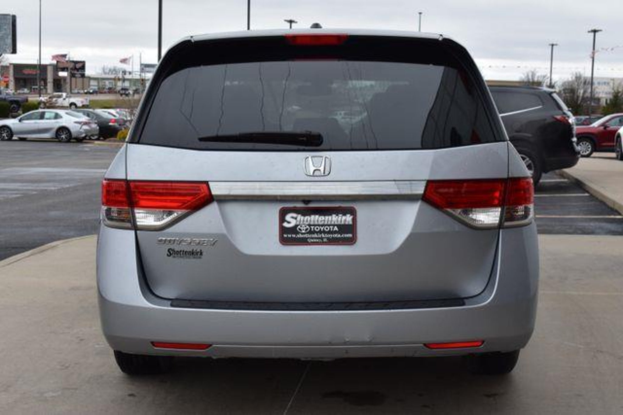 [ 2016 Honda Odyssey Silver EX-L 3.5L V6 SOHC i-VTEC 24V 6-Speed Automatic FWD Navigation Sunroof/Moonroof Leather Local Trade Backup Camera Odyssey EX-L 6-Speed Automatic FWD Silver Gray w/Leather Seat Trim 3rd row seats: split-bench 7 Speakers ABS brakes Air Conditioning Alloy wheels AM/FM radio: SiriusXM Auto-dimming Rear-View mirror Automatic temperature control Bumpers: body-color CD player Driver door bin Driver vanity mirror Driver's Seat Mounted Armrest Front Bucket Seats Front dual zone A/C Front reading lights Fully automatic headlights Garage door transmitter: HomeLink Heated door mirrors Heated Front Bucket Seats Heated front seats Illuminated entry Leather Seat Trim Leather Shift Knob Leather steering wheel Low tire pressure warning Outside temperature display Overhead console Passenger door bin Passenger seat mounted armrest Passenger vanity mirror Power door mirrors Power driver seat Power Liftgate Power moonroof Power passenger seat Power steering Power windows Radio data system Rear air conditioning Rear seat center armrest Rear window defroster Rear window wiper Reclining 3rd row seat Remote keyless entry Security system Speed control Split folding rear seat Spoiler Telescoping steering wheel Tilt steering wheel Traction control. Awards: * 2016 KBB.com 16 Best Family Cars * 2016 KBB.com Best Buy Awards * 2016 KBB.com Best Buy Awards Finalist * 2016 KBB.com Brand Image Awards Kelley Blue Book Brand Image Awards are based on the Brand Watch(tm) study from Kelley Blue Book Market Intelligence. Award calculated among non-luxury shoppers. For more information visit Kelley Blue Book is a registered trademark of Kelley Blue Book Co. Inc. Standard with Shottenkirk Care which includes a 3 month 3000k mile powertrain warranty dent and ding repair tire road hazard and wheel repair and windshield chip repair. (Call us for details) Shottenkirk Toyota of Quincy Illinois has been serving the needs of Tri-State motorists for years.Offering top notch new and used Toyota sales service and parts in a friendly environment that puts a premium on service not prices! We're proud to be a primary destination for Toyota shoppers from Jacksonville Springield Carthage Il. Hannibal Kirksville Troy St.Louis Columbia Mo. And the Mt.Pleasant Keokuk Farmington Fort Madison Iowa areas.Whether you visit us to buy a new Toyota or an used Honda like an Accord Civic CR-V Odyssey Pilot or Ridgeline or to get service for your existing vehicle you'll get the same impeccable service.We have an outstanding reputation for quality and a no-hassle buying experience.You may also visit us at Shottenkirk Toyota.com.] [Our Toyota dealership is happy to help drivers in Quincy, IL and surrounding areas in finding Toyota cars, trucks and SUVs for sale. We believe that after just a few moments of sifting through our abundant inventory, motorists will find the perfect vehicle for their needs. We also offer competitive finance packages and service options as well! Did we mention that most of your automotive requests can be booked entirely online? Starting online can save you lots of valuable time. Our website will serve you well if you're looking to apply for financing, schedule a service appointment, or browse service specials. ]