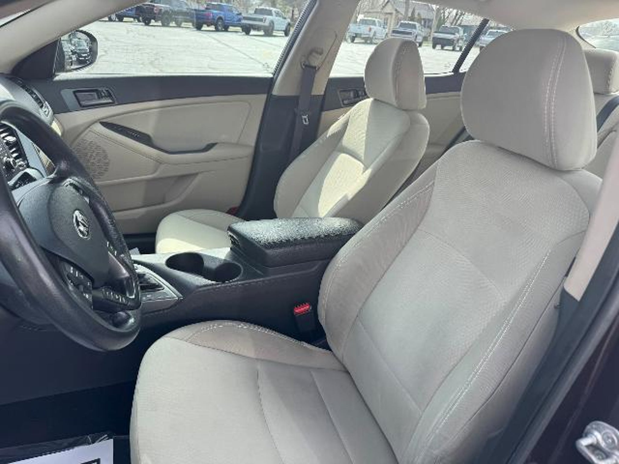 Equipment Protect this 2013 Kia Optima from unwanted accidents with a cutting edge backup camera system. Bluetooth technology is built into it, keeping your hands on the steering wheel and your focus on the road. Good News! This certified CARFAX 1-owner vehicle has only had one owner before you. The vehicle is front wheel drive. This 2013 Kia Optima gleams with a flashy red exterior. The Kia Optima features a HomeLink System. It has a 4 Cyl, 2.4L high output engine. Maintaining a stable interior temperature in the Kia Optima is easy with the climate control system. With the adjustable lumbar support in this unit your back will love you. Electronic Stability Control is one of many advanced safety features on the Kia Optima. This Kia Optima is equipped with a gasoline engine. Easily set your speed in this 2013 Kia Optima with a state of the art cruise control system. Increase or decrease velocity with the touch of a button. Packages LX Convenience Plus Package: Power Adjustable Driver's Seat Auto-Dimming Rear View Mirror with Homelink and Compass UVO Infotainment System Radio with Rear Camera Display. Carpeted Floor Mats. **Equipment listed is based on original vehicle build and subject to change. Please confirm the accuracy of the included equipment by calling the dealer prior to purchase.**