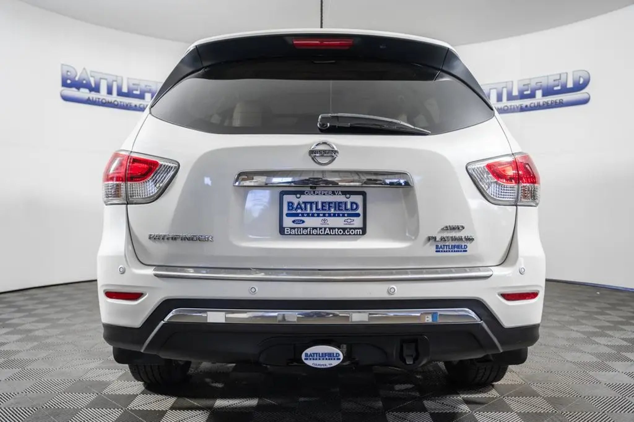 4WD. 2015 Nissan Pathfinder Platinum Pearl White 19/26 City/Highway MPG Awards: * 2015 KBB.com 15 Best Family Cars * 2015 KBB.com Best Buy Awards Finalist We strive to provide accurate information, but please verify options and price before purchasing. All vehicles are subject to prior sale and financing is subject to approved credit. Battlefield Ford is not liable for errors or omissions. Quoted prices available on in-stock units only. E-Price excludes tax, tags, freight and $999 Processing Fee. All customers will qualify for all manufacturer rebates and incentives included in the E- Price, some require financing through the manufacturer. Some manufacturer rebates are not compatible with special manufacturer finance offers. Manufacturer rebates and incentives are valid during the time period set by the manufacturer and are subject to change without notice. Additional manufacturer rebates such as but not limited to college graduates, Military and additional incentives may apply to those who qualify and may lower the sales price. Rebates and Incentives may vary based on your zip code. See dealer for details.