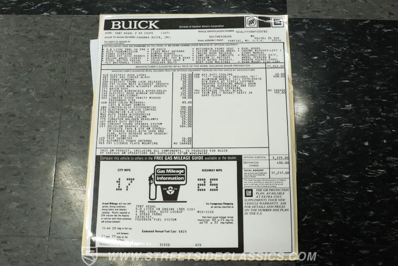 Merging the best of nostalgic style with a markedly enhanced driving experience, this 1987 Buick Regal T Restomod is just as fun to drive as it is to simply gaze at admiringly. It rides on a set of 15" alloy T-type wheels wrapped with Uniroyal tires that show plenty of tread. It's a guaranteed attention-getter that's sure to brighten up any garage. Call today! Be sure to ask about our services offered; Financing, Vehicle Protection Plan, Insurance, and Transportation to your driveway!
