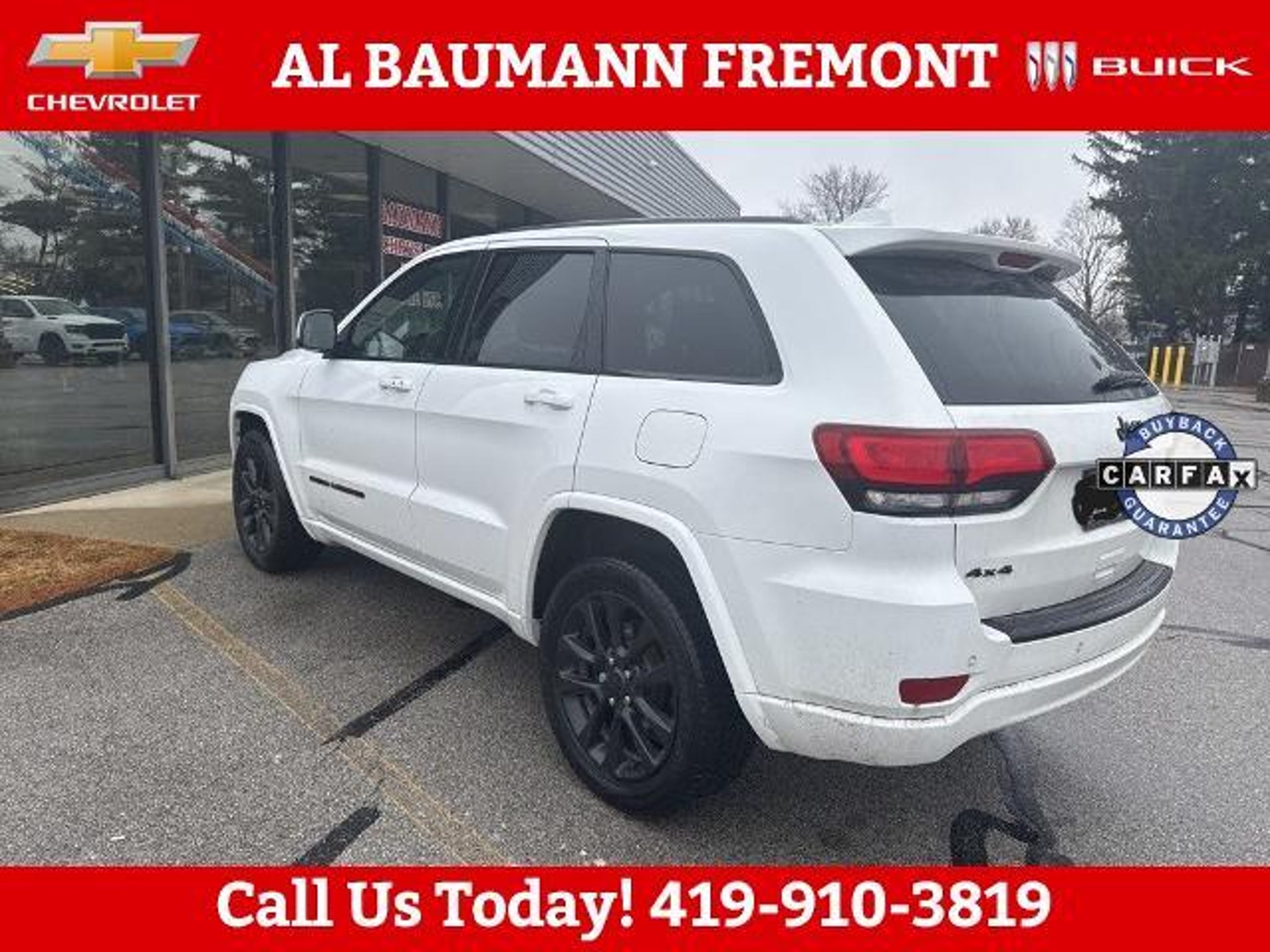 Recent Arrival! Bright White Clearcoat 2018 Jeep Grand Cherokee Altitude Customer Preferred Package 2BZ 4D Sport Utility 3.6L V6 24V VVT 8-Speed Automatic 4WD ONLY TWO OWNERS. Car shopping is sometimes inconvenient and stressful, and we want to take the hassle out of this all-too-common experience. If you?re interested in more convenience, less frustration and a process that works efficiently to meet your needs as a customer. Al BAUMANN AUTO GROUP. The Best Price Up Front Cash Offers For Any Trade-In Multiple Financing Quotes In Minutes A Team Of Dedicated Salespeople. CALL,419-332-8236 or {1-866-330-3601}, 4WD, 1-Year SiriusXM Guardian Trial, 1-Year SiriusXM Radio Service, 115V Auxiliary Power Outlet, 5-Year SiriusXM Traffic Service, 5-Year SiriusXM Travel Link Service, 8.4 Touchscreen Display, Altitude Grille, Altitude IV Package, Apple CarPlay, Auto-Dimming Rear-View Mirror, Black Suede Seats w/Black Stitching, Body Color Claddings, Body Color Fascia, Body Color Shark Fin Antenna, Dark Day Light Opening Moldings, Dark Headlamp Bezel Finish, Dark Lens Taillamps, Delete Laredo Badge, For Details Visit DriveUconnect.com, Front Accent/Body Color Fascia, Gloss Black Rear Fascia Applique, Google Android Auto, GPS Antenna Input, GPS Navigation, HD Radio, Integrated Voice Command w/Bluetooth, Jeep Black Gloss Badging, Power 4-Way Driver Lumbar Adjust, Power 8-Way Driver/Manual Passenger Seat, Power Liftgate, Quick Order Package 2BZ Altitude, Radio: Uconnect 4C Nav w/8.4 Display, Rear Accent/Body Color Fascia, Rear Fascia Black MIC Step Pad, Security & Convenience Group, Security Alarm, Single Exhaust w/Bright Tip, SiriusXM Satellite Radio, SiriusXM Traffic Plus, SiriusXM Travel Link, Steering Wheel Mounted Audio Controls, Universal Garage Door Opener, USB Host Flip, Wheels: 20 x 8.0 Gloss Black Aluminum, 3.45 Rear Axle Ratio, 4-Wheel Disc Brakes, 6 Speakers, 9 Amplified Speakers w/Subwoofer, ABS brakes, Air Conditioning, Alloy wheels, AM/FM radio, Anti-whiplash front head restraints, Apple CarPlay/Android Auto, Automatic temperature control, Brake assist, Bumpers: body-color, Cargo Compartment Cover, Cloth Bucket Seats, Compass, Delay-off headlights, Driver door bin, Driver vanity mirror, Dual front impact airbags, Dual front side impact airbags, Electronic Stability Control, Four wheel independent suspension, Front anti-roll bar, Front Bucket Seats, Front Center Armrest w/Storage, Front dual zone A/C, Front fog lights, Front License Plate Bracket, Front reading lights, Fully automatic headlights, Heated