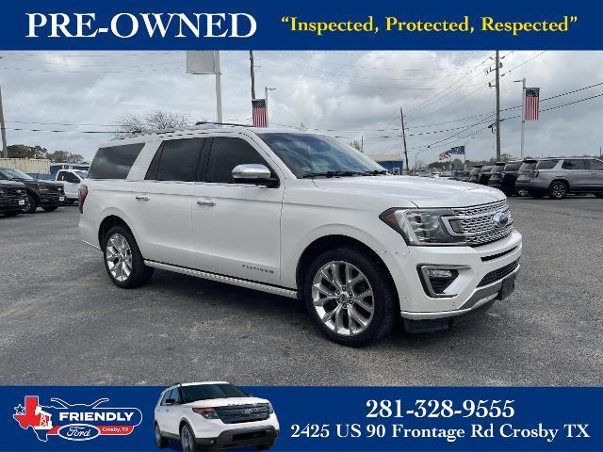 Details > 2019 Ford Expedition MAX 4X2 Platinum 4DR SUV For Sale in Crosby, TX Private Party Sellers Click here to place your ad now! You auta tell them you saw the ad in AutaBuy when you call or email. 1/5 2/5 3/5 4/5 5/5 View 5 Photos View All Add to My Garage Parked in Your Garage! Friendly Ford Contact Seller: I would like to: Make Offer Check Availability Ask A Question Request More Photos Check Financing Options Send a copy of this message to me Add this listing to my garage Send to Mobile Mileage 148,493 Exterior Color White Platinum Interior Color Ebony Doors 4 Engine 3.5L V6 Transmission 10 Speed Auto Stock # KEA89970 VIN 1FMJK1LT0KEA89970 Estimated Monthly Payment $313 mo Apply Now J.J. Best Banc & Co. 2019 Ford Expedition MAX 4X2 Platinum 4DR SUV Description: White Platinum 2019 Ford Expedition Max Platinum RWD 10-Speed Automatic EcoBoost 3.5L V6 GTDi DOHC 24V Twin Turbocharged Recent Arrival! Awards: * JD Power Automotive Performance, Execution and Layout (APEAL) Study CASH UNIT · Mileage: 148,493 · Color: White Platinum Price: $17,981. Mileage 148,493 Exterior Color White Platinum Interior Color Ebony Doors 4 Engine 3.5L V6 Transmission 10 Speed Auto Stock # KEA89970 VIN 1FMJK1LT0KEA89970 Estimated Monthly Payment $313 mo Apply Now J.J. Best Banc & Co. Add to My Garage Parked in Your Garage! Message Seller Friendly Ford Contact Seller: I would like to: Make Offer Check Availability Ask A Question Request More Photos Check Financing Options Send a copy of this message to me Add this listing to my garage Offered for sale by Friendly Ford CROSBY, TX Price: $17,981. Offered for sale by Friendly Ford CROSBY, TX [entire inventory] Ask Auta Intelligence The first collector-car AI built directly into a classic car marketplace How easy are parts to find for this model? How many Expedition MAXs were produced in White? What kind of mileage do these get? Can you show me more suvs for a similar price? What factory options were available on this model? What safety features does this model offer? What colors did these come in? Tell me about this model How many passengers can this seat comfortably? How many of these were produced? What trim levels were available for this model? What engine options did these come with? How far is this from me? What does this VIN number tell me? Where is this located? What transmission options did these offer? When was this model first introduced? Do you have a similar car to sell? List It Now! Questions about this car? Ask Auta Intelligence for production numbers, available options, etc. · Subscribe to AutaBuy! · Send a Gift Subscription Notice to a Friend