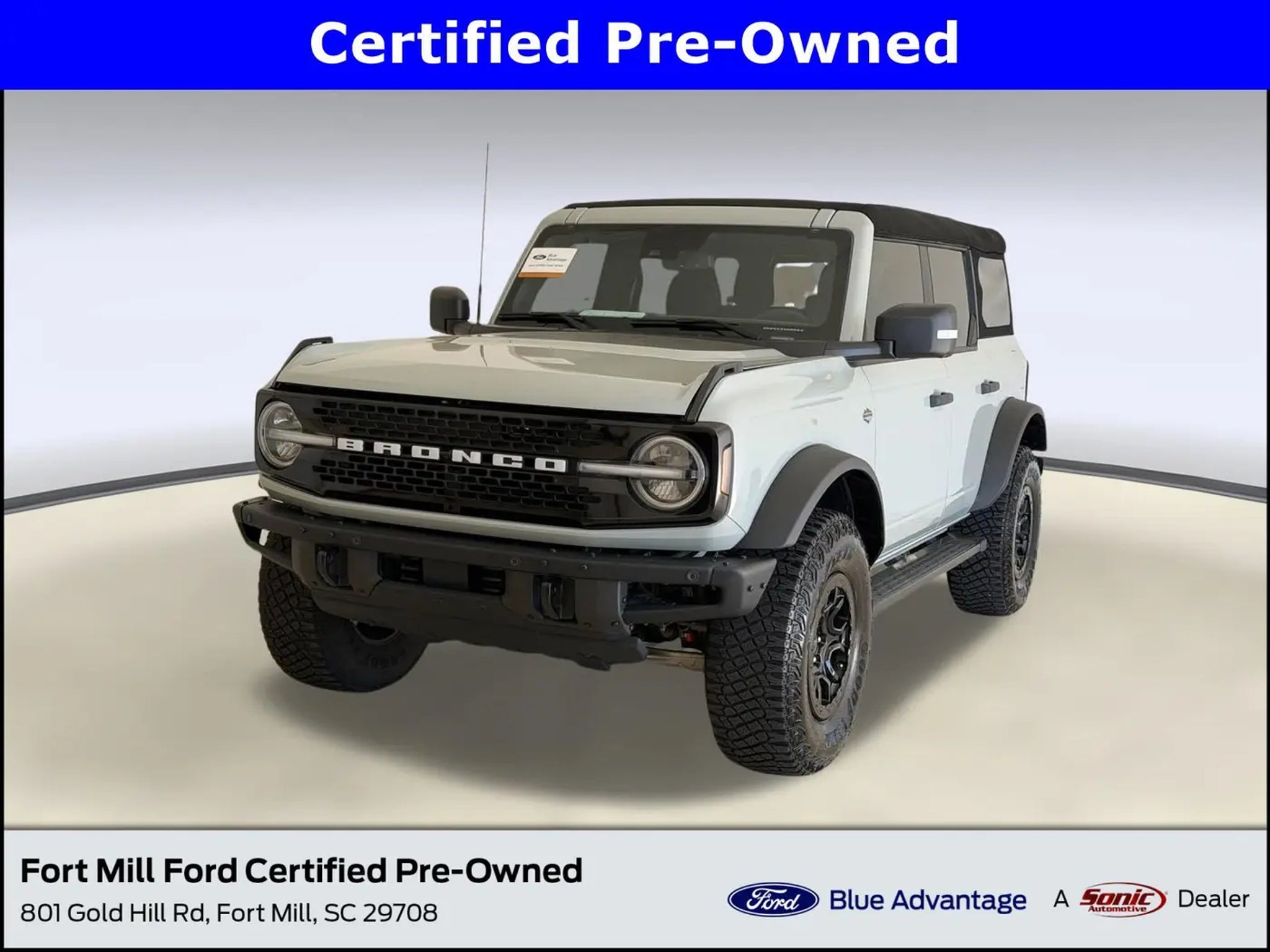 ** CERTIFIED!** ONE OWNER, CLEAN CARFAX, 2024 Ford Bronco Wildtrak, Four Wheel Drive, Rollover Protection Bars, Convertible Soft Top, Bluetooth Connection, Leather Seats, Heated Front Seat(s), Remote Engine Start, Rear Parking Aid, Blind Spot Monitor, Cross-Traffic Alert, Lane Departure Warning, Lane Keeping Assist, Driver Monitoring, and much more, Cactus Gray.All work has been performed by trained technicians.We are passionate about our vehicles and dedicated to providing exemplary customer service.Come see what makes us great! Test drive this must-see, must-drive, must-own beauty today at Fort Mill Ford, 801 Gold Hill Rd, Fort Mill, SC 29708!