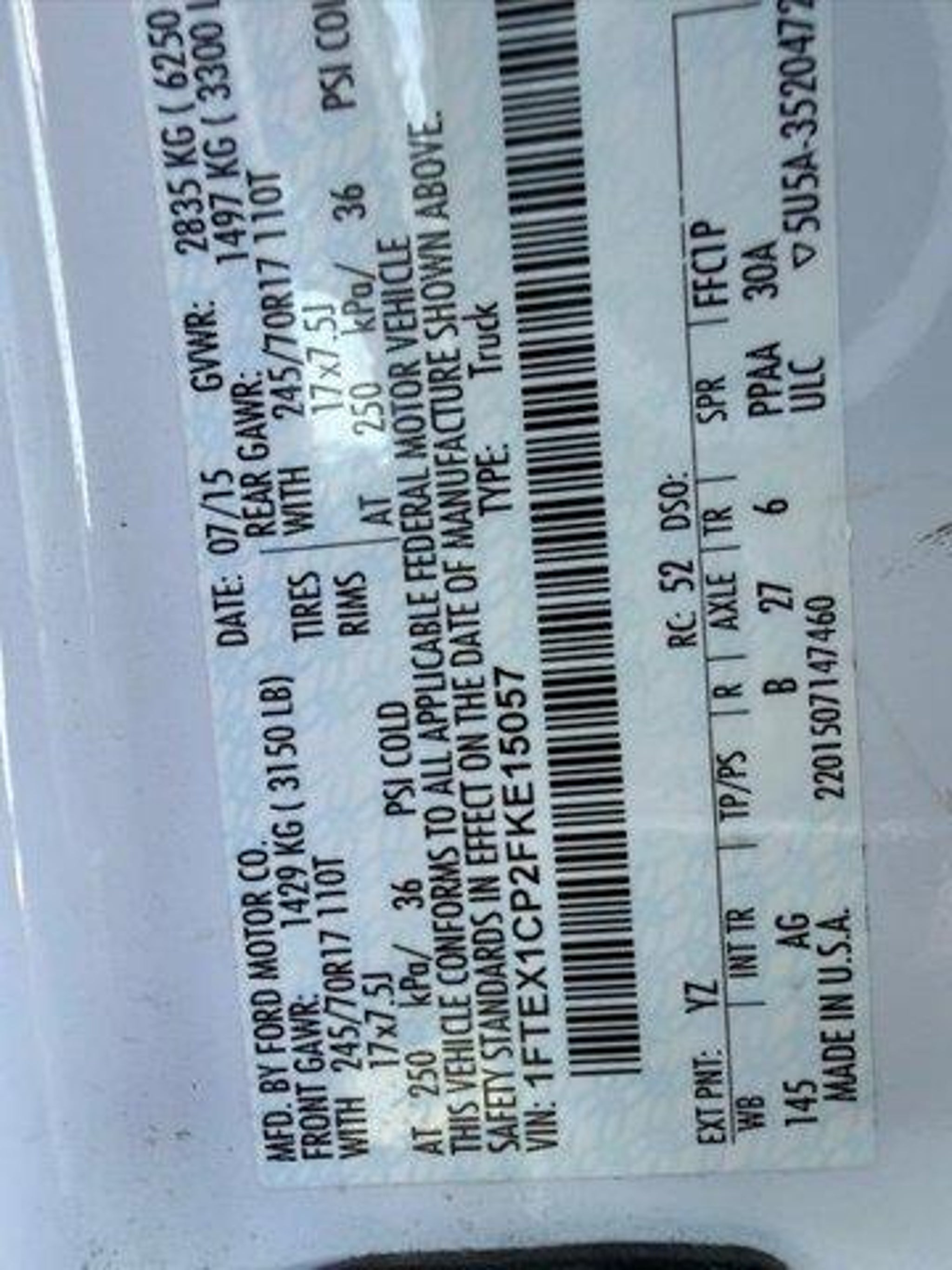 VIN 1FTEX1CP2FKE15057
