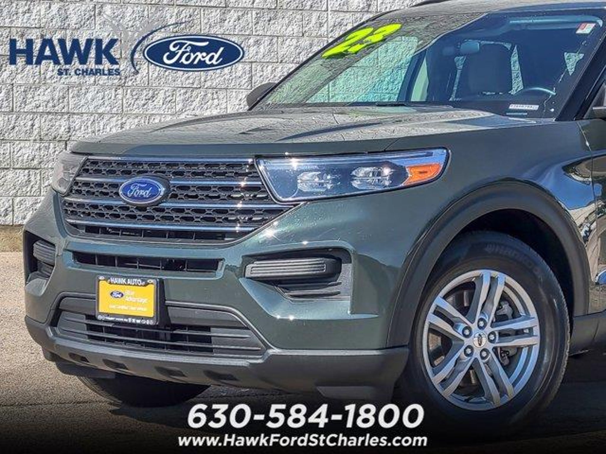 2023 Ford Explorer XLT XLTGreen Metallic 2.3L EcoBoost I-4 4WDCome see this 2023 Ford Explorer XLT! It's the one you've been searching for! This Explorer comes equipped with these options:4WD, Auto High-beam Headlights, Automatic temperature control, Equipment Group 200A, Front dual zone A/C, Fully automatic headlights, Heated door mirrors, Heated front seats, Heated Unique Cloth Captain's Chairs, Power driver seat, Power Liftgate, SYNC 3/Apple CarPlay/Android Auto.Recent Arrival! 20/27 City/Highway MPGCertified. Certification Program Details: Certification Program Details: The Ford Blue Advantage BLUE CERTIFIED program helps provide some peace of mind when buying a previously owned vehicle. A Hawk Ford Certified Technician has fully inspected and reconditioned the vehicle. The vehicle is also eligible for the following coverage when registered Blue Certified with Ford: *90-day/4,000-mile Comprehensive Limited Warranty coverage (whichever comes first). *139-Point Inspection by a Hawk Ford Certified Technician. *11,000 FordPassTM Rewards Points to use toward scheduled maintenance visits or other rewards. *CARFAXÂ Vehicle History Report. *SiriusXMÂ complimentary 3-month trial. *Ford cars, SUVs and trucks (up to 350-Series) that are current or nine previous model years and have fewer than 120,000 miles can qualify, including many non-Ford vehicles. *A full tank of fuel, fresh oil and filter, and new wiper blades. *Service available at any Ford Dealer in the 50 states. *Pricing discounts for extended service contracts adding additional coverage to your vehicle in terms of miles, time, and covered components.Here at Hawk Ford of St. Charles, we always strive to ensure that you enjoy the best car-shopping and dealership experience. We make that possible by offering a vast collection of cars, straightforward financing options and expert car care services. That's why it only makes sense to turn to us for everything related to Ford near St. Charles, West Chicago, Elgin, Bartlett IL and Geneva IL What else does Hawk Ford of St. Charles have to offer? Aside from expert knowledge in everything automotive, we simply love serving you. So come see us today, conveniently located at 2525 East Main St. In St. Charles, IL. Be sure to bring your questions, and be ready for answers! We are proud to serve residents throughout the St. Charles area, including Elburn, West Chicago, South Elgin, Geneva, Elgin, Bartlett, Batavia, Wayne and Aurora.
