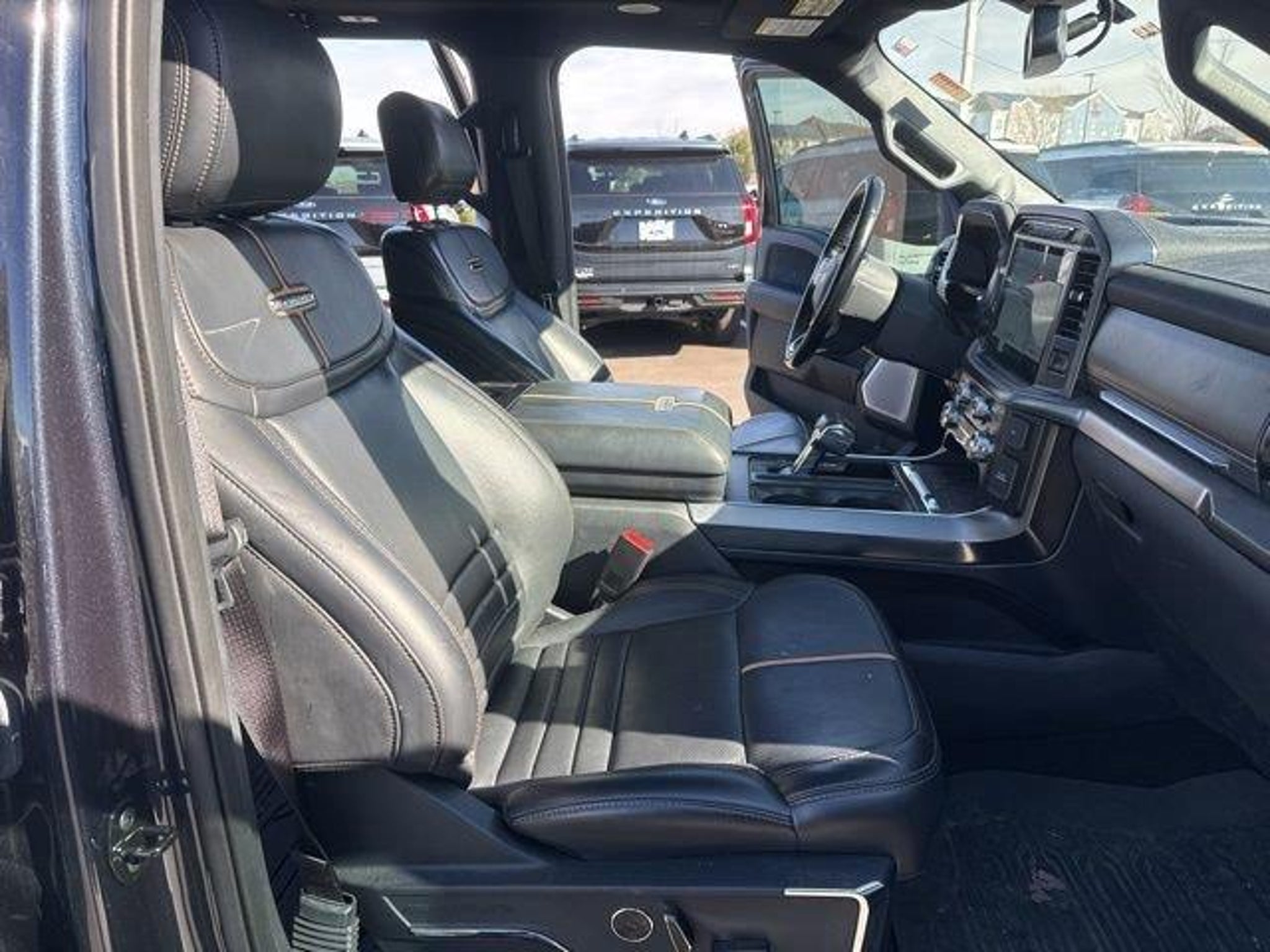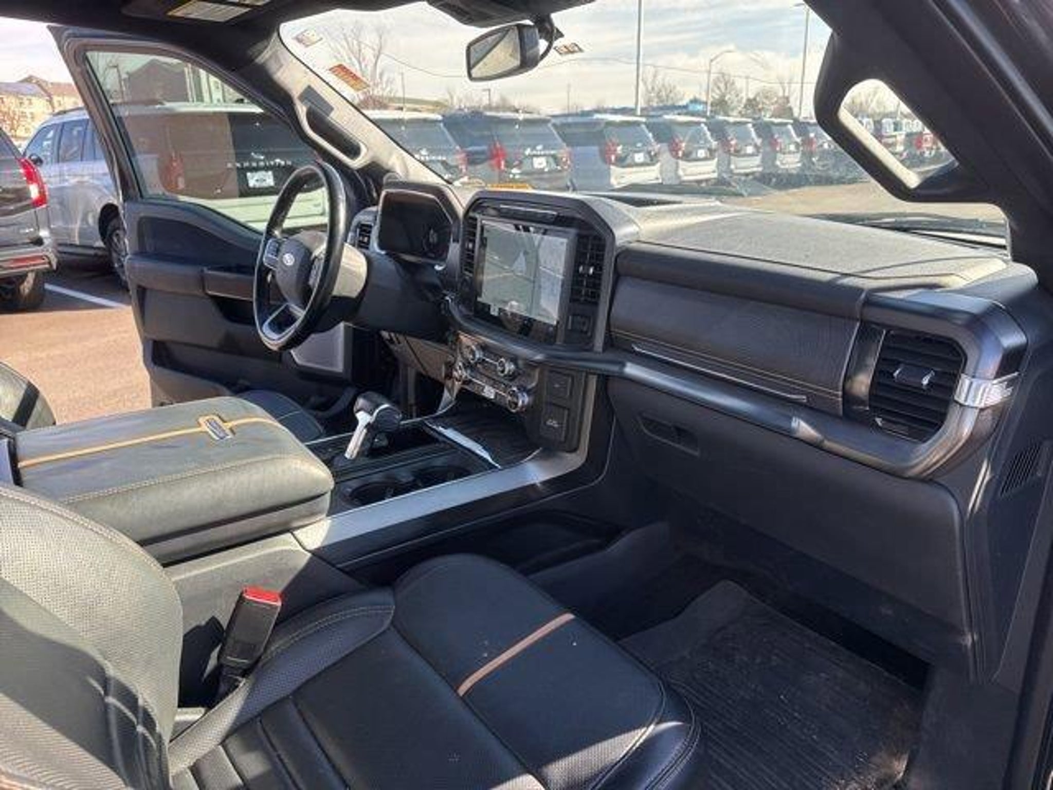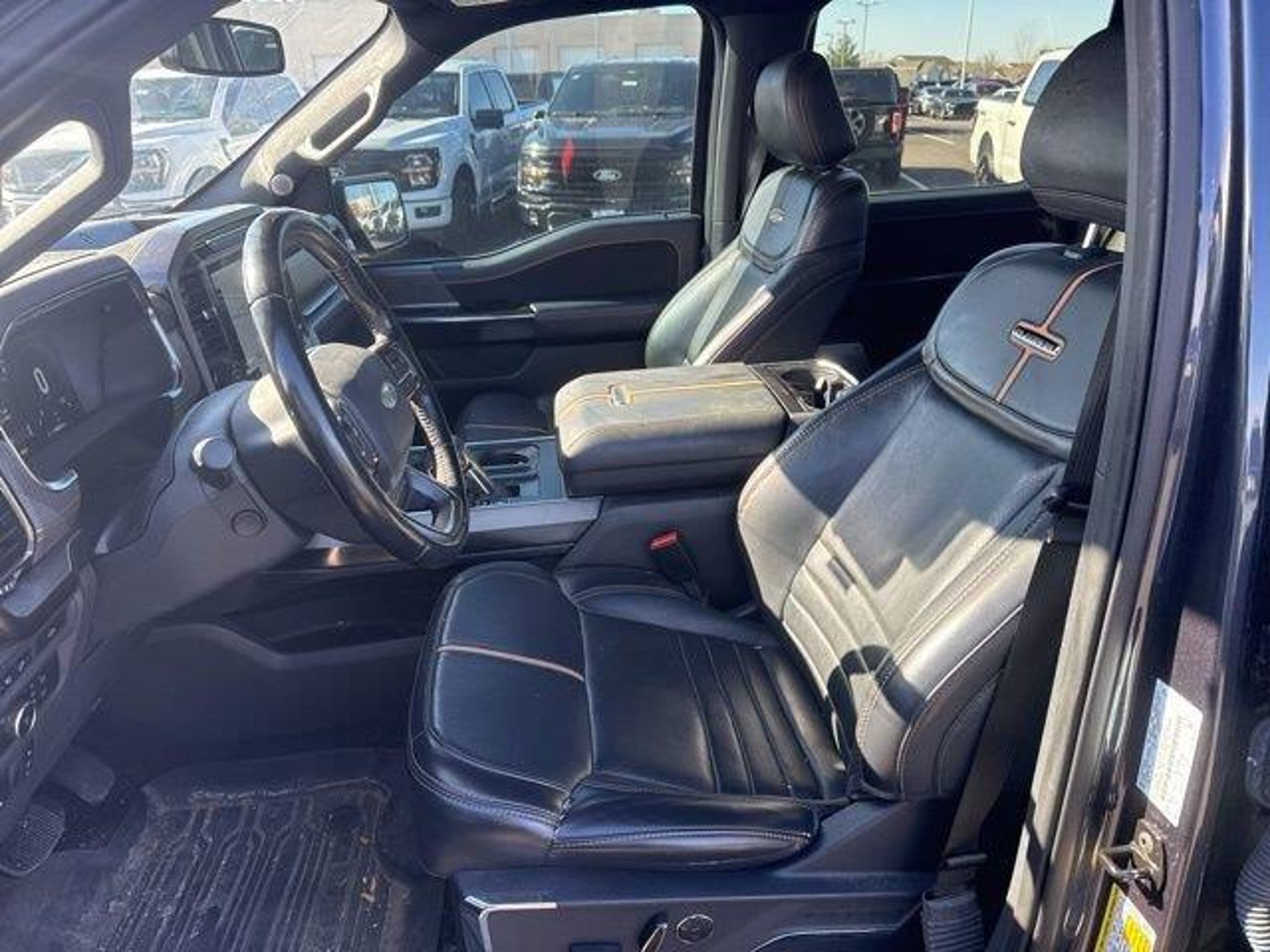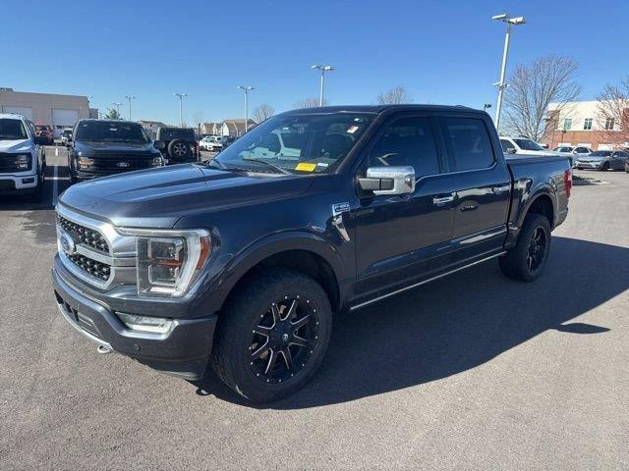 20 Polished Aluminum Wheels, 3.31 Axle Ratio, 360 Degree Camera, 4-Wheel Disc Brakes, 4x4 FX4 Off-Road Bodyside Decal, 8 Speakers, ABS brakes, Active Park Assist 2.0, Adjustable pedals, Air Conditioning, Alloy wheels, AM/FM radio: SiriusXM with 360L, Auto High-beam Headlights, Auto tilt-away steering wheel, Auto-dimming door mirrors, Auto-dimming Rear-View mirror, Automatic temperature control, BlueCruise Hands-Free Driving, Brake assist, Bumpers: body-color, Class IV Trailer Hitch Receiver, Compass, Delay-off headlights, Driver door bin, Driver vanity mirror, Dual front impact airbags, Dual front side impact airbags, Electronic Locking w/3.55 Axle Ratio, Electronic Stability Control, Emergency communication system: SYNC 4 911 Assist, Equipment Group 701A High, Extended Range 36 Gallon Fuel Tank, Exterior Parking Camera Rear, Ford Co-Pilot360 Active 2.0 Package, Front anti-roll bar, Front Bucket Seats, Front Center Armrest, Front dual zone A/C, Front fog lights, Front reading lights, Front wheel independent suspension, Fully automatic headlights, FX4 Off-Road Package, Garage door transmitter, Heated door mirrors, Heated front seats, Heated rear seats, Heated steering wheel, Hill Descent Control, Illuminated entry, Integrated Trailer Brake Controller, LED Sideview Mirror Spotlights, Low tire pressure warning, Max Trailer Tow Package, Memory seat, Monotube Rear Shocks, Navigation system: Connected Navigation (90-Day Trial), Occupant sensing airbag, Off-Road Tuned Front Shock Absorbers, Outside temperature display, Overhead airbag, Overhead console, Panic alarm, Passenger door bin, Passenger vanity mirror, Pedal memory, Power door mirrors, Power driver seat, Power passenger seat, Power steering, Power Tailgate, Power windows, Pro Trailer Backup Assist, Radio data system, Radio: B&O Sound System by Bang & Olufsen, Radio: B&O Unleashed Sound System by Bang & Olufsen, Rain sensing wipers, Rear reading lights, Rear seat center armrest, Rear step bumper, Rear window defroster, Remote keyless entry, Rock Crawl Mode, Security system, Speed control, Speed-sensing steering, Split folding rear seat, Steering wheel memory, Steering wheel mounted audio controls, SYNC 4 w/Enhanced Voice Recognition, Tachometer, Telescoping steering wheel, Tilt steering wheel, Traction control, Tray Style Floor Liner, Trip computer, Turn signal indicator mirrors, Twin Panel Moonroof, Unique Multi-Contour Leather Bucket Seats, Variably intermittent wipers, Ventilated front seats, Voltmeter. Quartz 2021 Ford F-150 Platinum 3.5L V6 EcoBoost
