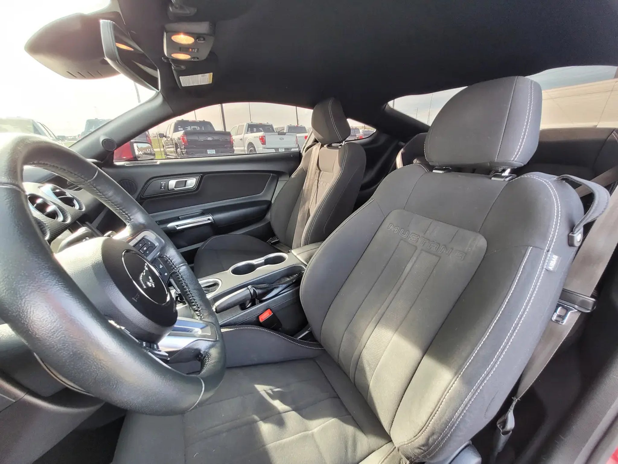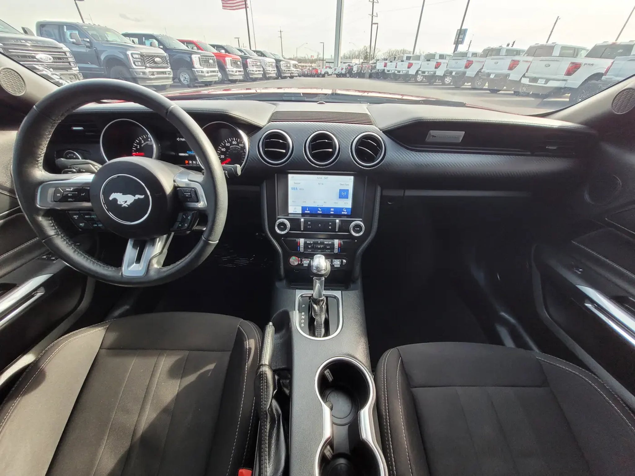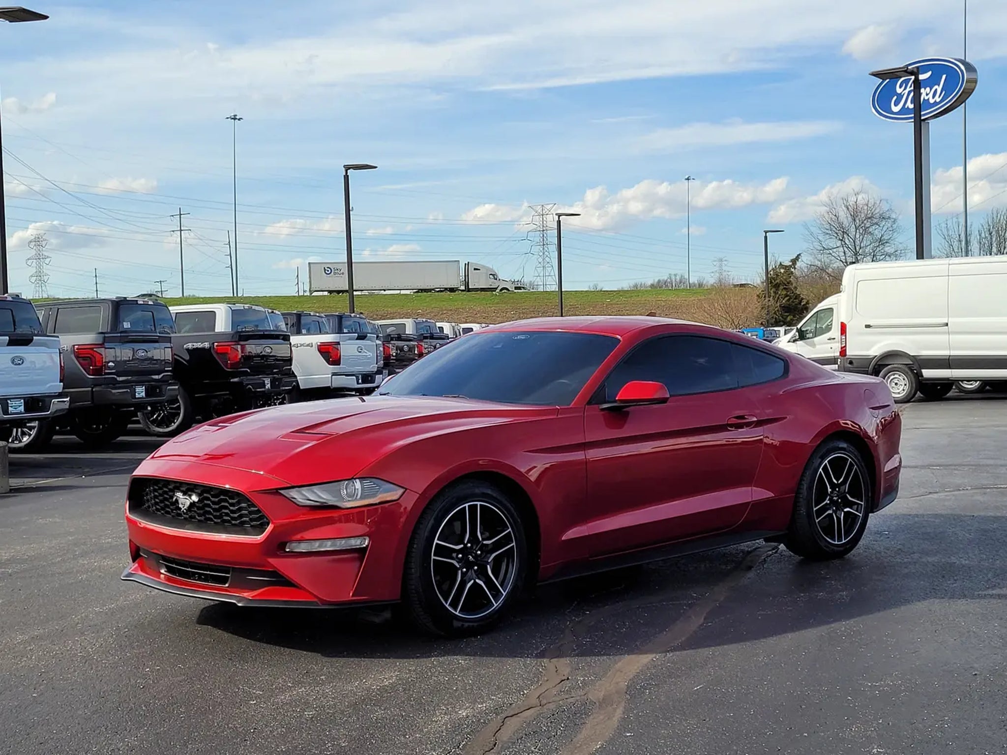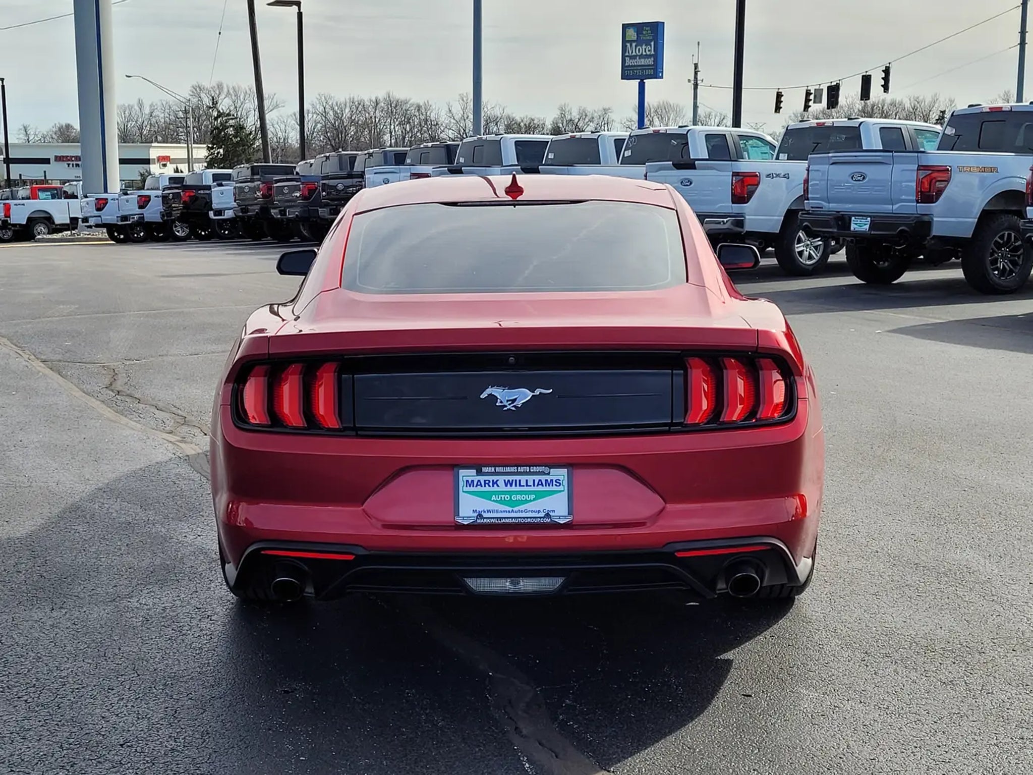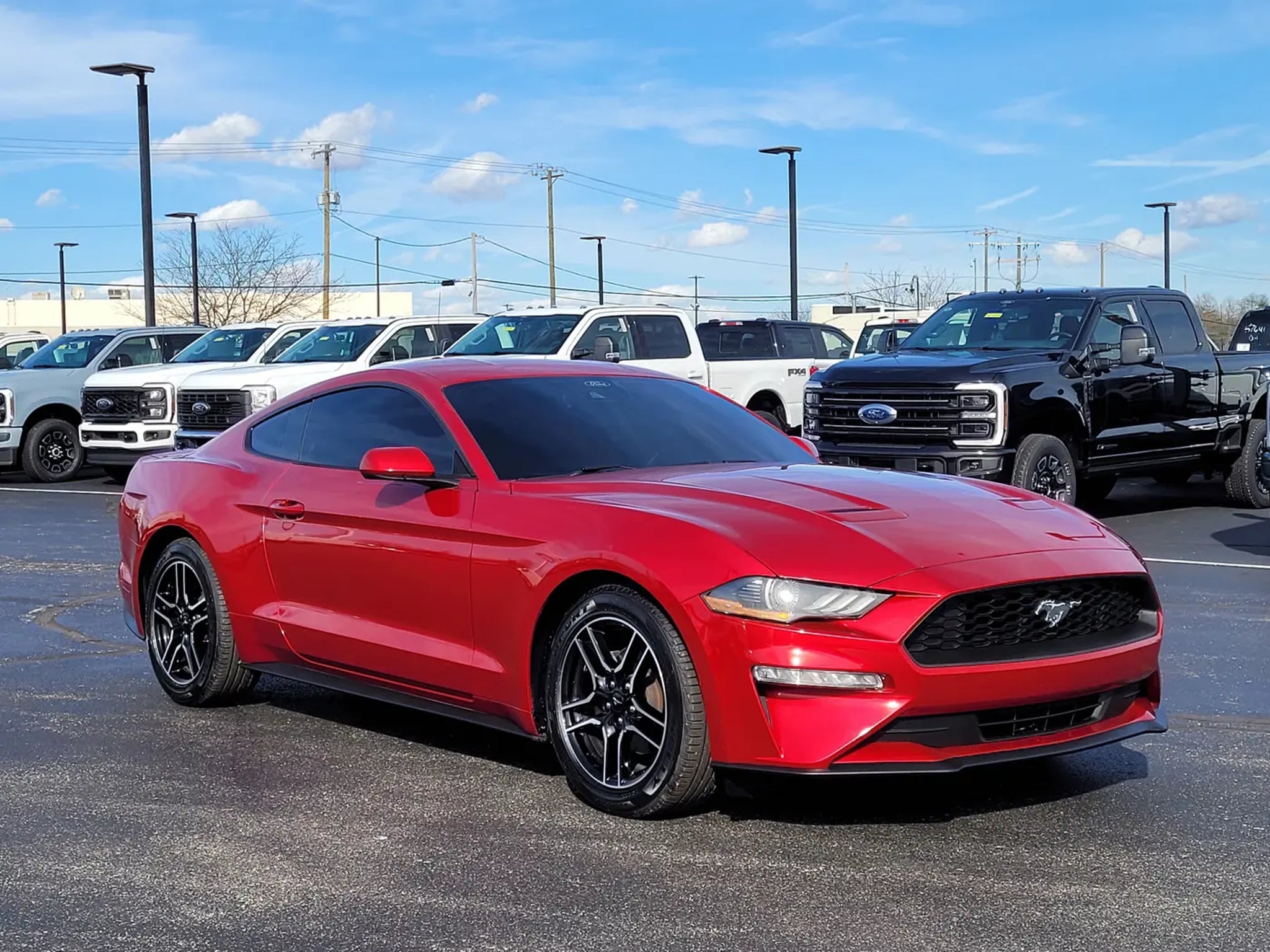 This Red 2021 Ford Mustang EcoBoost Coupe is the perfect combination of iconic American muscle car styling, turbocharged performance, and modern technology. If you are searching for a used Ford Mustang EcoBoost for sale, a sporty rear wheel drive coupe with turbocharged power, or a one owner Mustang with SYNC 3 and selectable drive modes, this one delivers an exciting driving experience.Under the hood is the responsive 2.3L EcoBoost turbocharged four cylinder engine paired with a smooth shifting 10 speed automatic transmission. This powertrain delivers strong acceleration, impressive efficiency, and the classic rear wheel drive performance Mustang drivers love. The 3.15 limited slip rear axle helps improve traction and performance, while selectable drive modes allow you to tailor the driving experience for comfort, sport, or more aggressive performance.This one owner Mustang has gone through a 146 point Mark Williams Auto Group inspection, ensuring quality and peace of mind for the next owner. The sleek coupe design, bold red exterior, and 18 inch machined face aluminum wheels give this Mustang the unmistakable look that has made it one of the most recognizable sports cars on the road.Inside the cabin you will find comfortable cloth bucket seats, dual zone automatic climate control, and a driver focused cockpit designed for performance and comfort. The SYNC 3 communications and entertainment system includes Bluetooth connectivity, SiriusXM radio capability, and smartphone integration to keep you connected while you drive.Technology and convenience features include a rearview backup camera, reverse sensing system, rain sensing wipers, automatic high beam headlights, steering wheel mounted audio controls, and multiple driver assistance technologies designed to make driving easier and safer.The Mustangs four wheel independent suspension, responsive steering, and balanced chassis provide confident handling whether you are enjoying a spirited drive on winding roads or cruising down the highway.If you are shopping online for a 2021 Ford Mustang EcoBoost coupe, a turbocharged Mustang with SYNC 3 and selectable drive modes, or a one owner performance car with low ownership history, this vehicle deserves a closer look.Beechmont Ford, a top rated dealer on Google for customer service, and we are proud to offer this True Market Priced Pre Owned Vehicle. Stop in to Queen City Ford today to see this 2021 Ford Mustang EcoBoost in person and experience the excitement of driving a true American sports car.