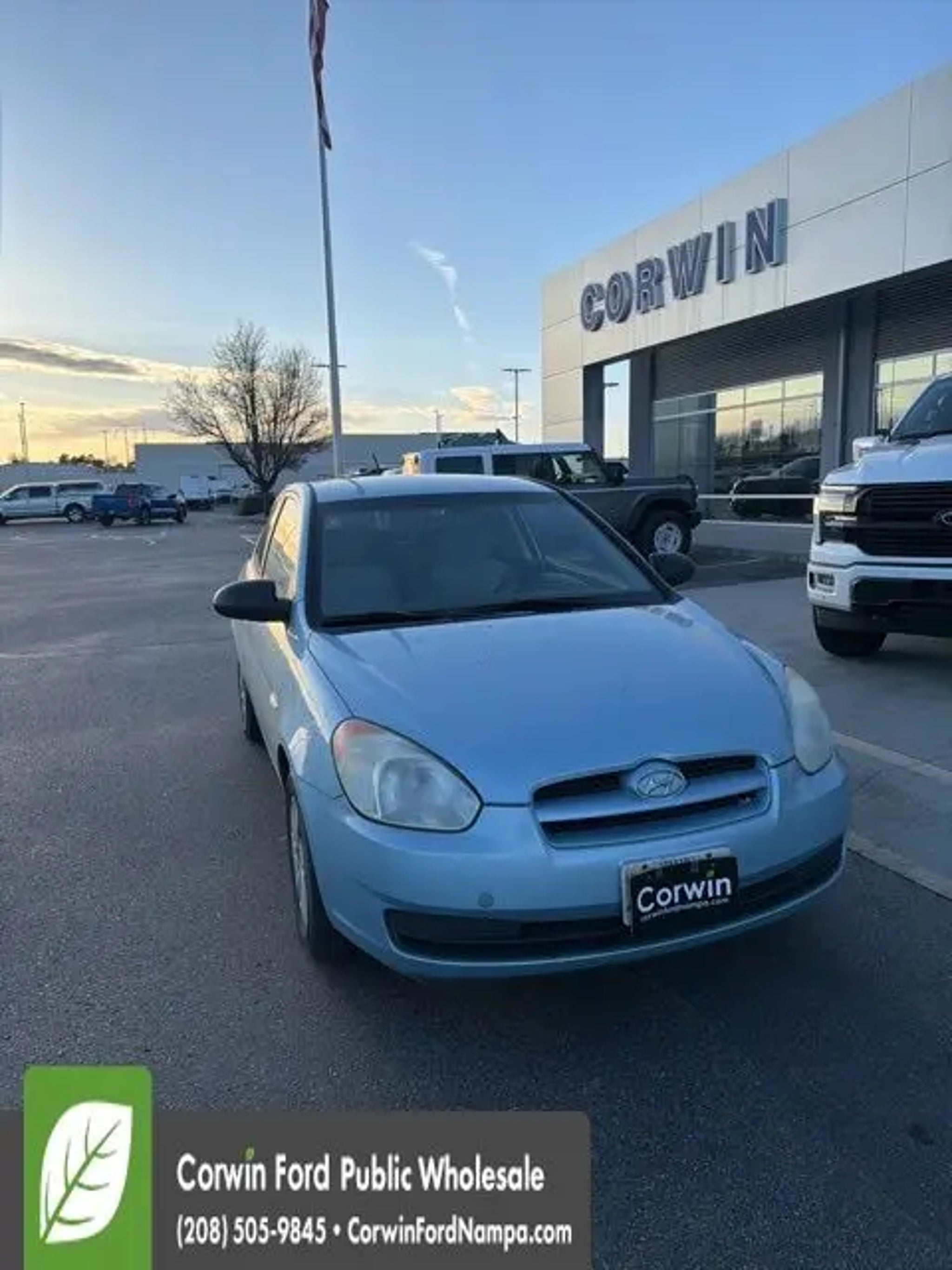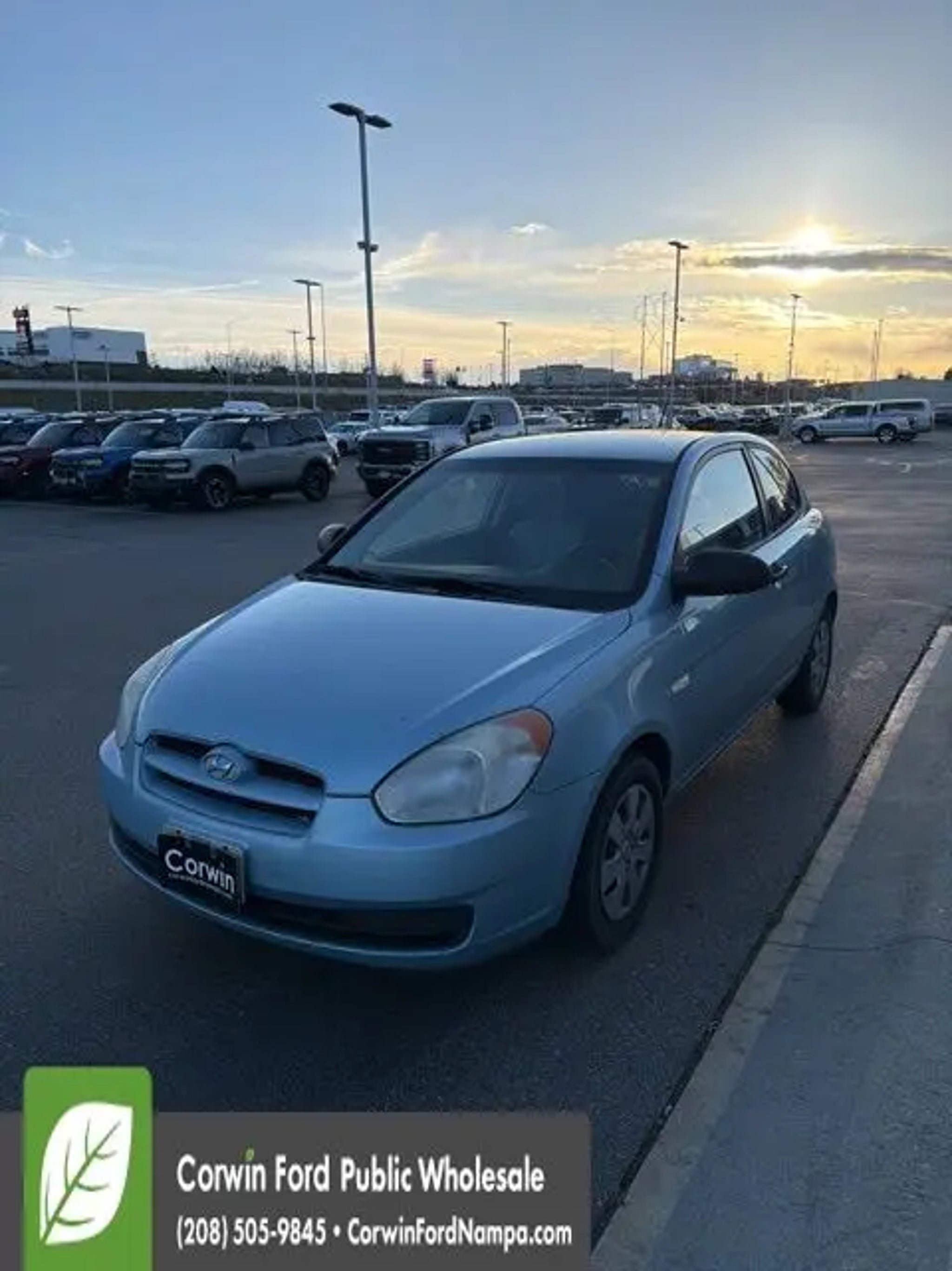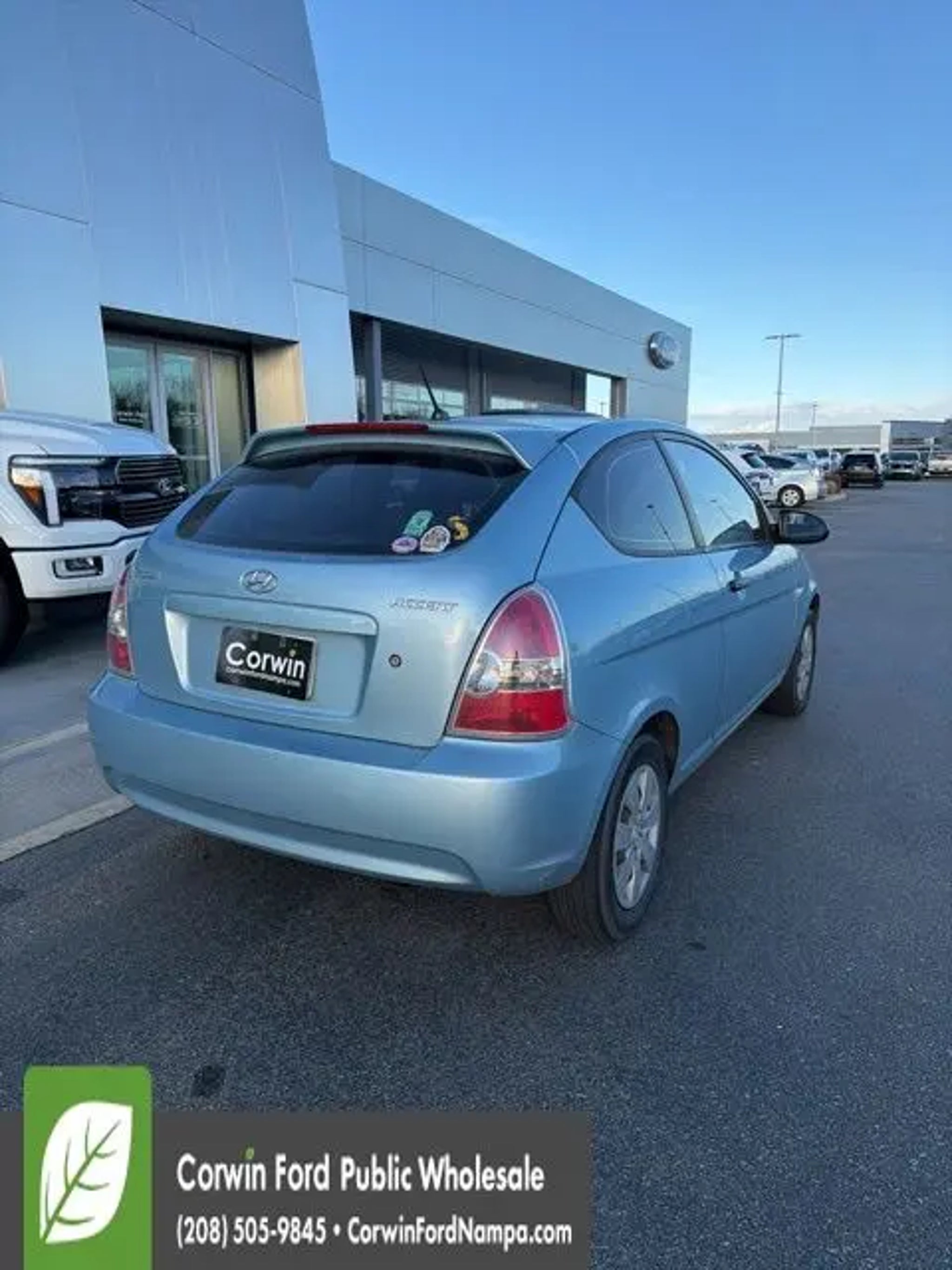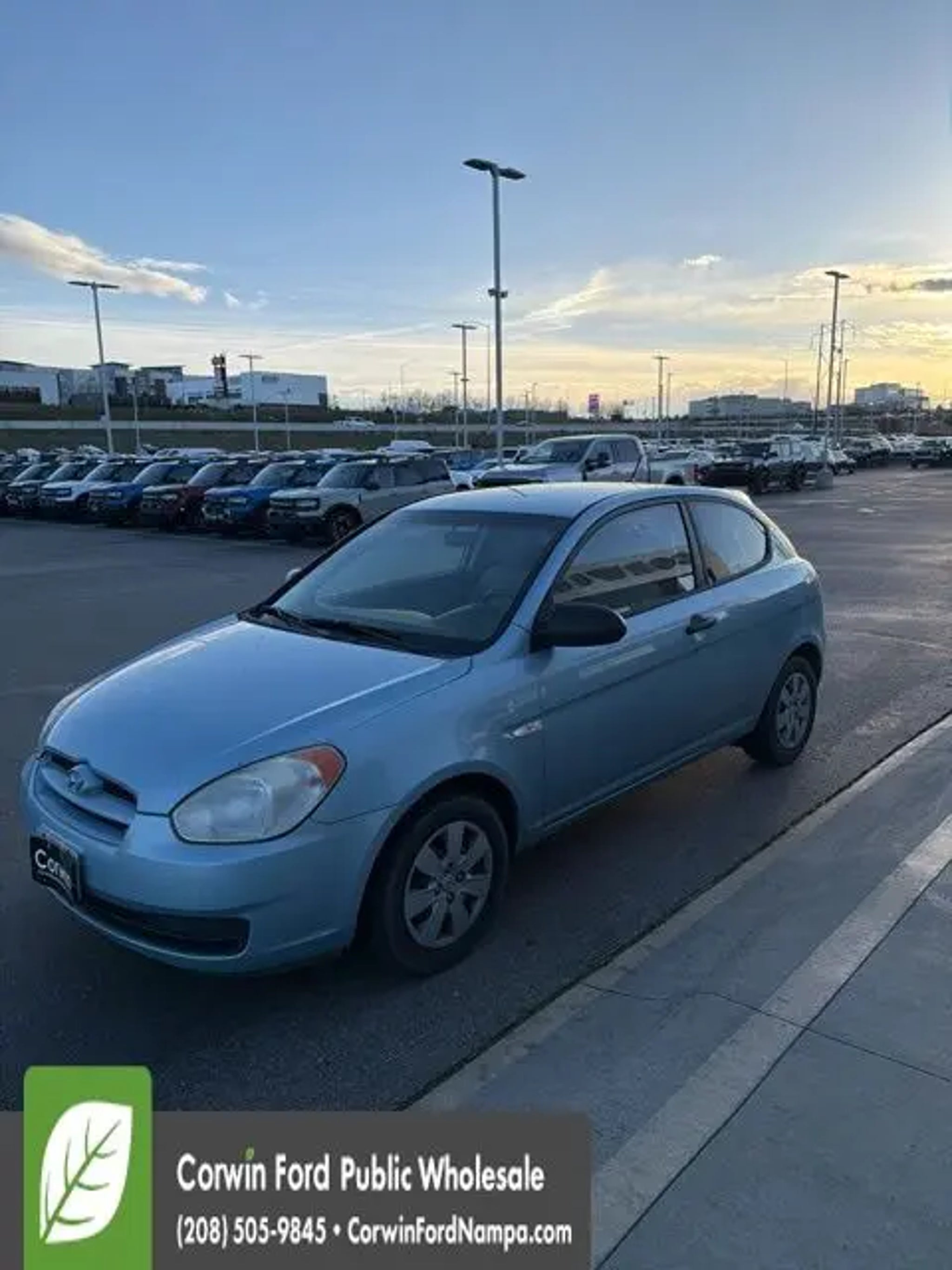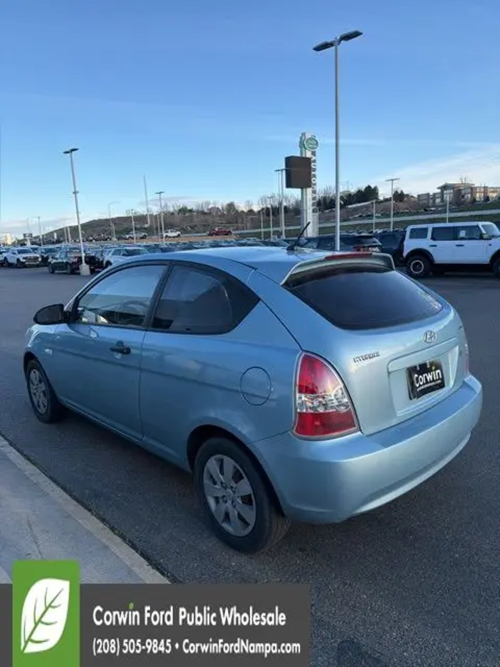 Enjoy the versatility and nimble character of our 2008 Hyundai Accent GS Hatchback that's proudly presented in Blue. Powered by a 1.6 Liter 4 Cylinder that offers 110hp while perfectly paired with a responsive 4 Speed Automatic transmission. This Front Wheel Drive combination offers a great ride, looks amazing, and supplies an incredible economy at nearly 33mpg on the highway! This Accent has a winning personality, 14-inch wheels, and a sporty stance. Surprisingly spacious, the interior of our GS comfortably seats 5 and has ample cargo space as well. You'll enjoy air conditioning to keep you cool while the AM/FM/CD player keeps you connected to your tunes along the way. This Hyundai has been carefully crafted with safety features to offer you peace of mind and behind the wheel as well. Tire pressure monitoring, occupant classification system, and plenty of airbags are on your side! This Accent GS is a terrific choice for your on-the-go life. Print this page and call us Now...We Know You Will Enjoy Your Test Drive Towards Ownership! Corwin Ford Nampa! Friendly service and aggressive pricing is why we are your new and pre-owned vehicle dealer serving, Nampa, Boise, Meridian, Caldwell, Kuna, Eagle, Emmett, Idaho City, Wilder, New Plymouth, Star, Middleton, Weiser, Payette, Horseshoe Bend, Mountain Home, Idaho, and surrounding states.