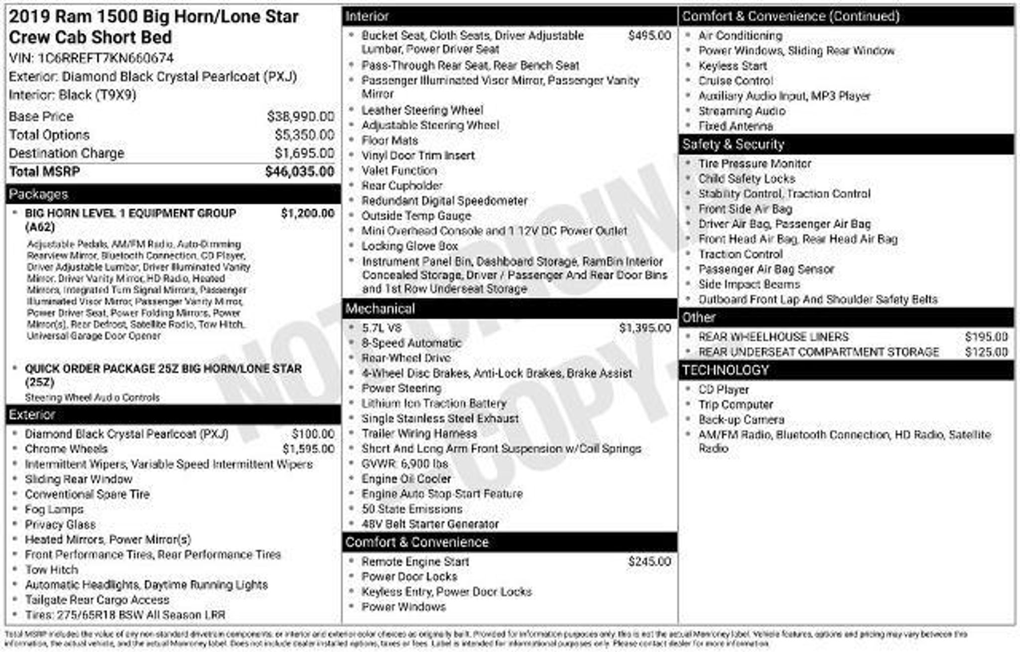 **NO DEALER FEES**, **4.6 STAR CUSTOMER RATED DEALERSHIP**, **REMOTE START**, **LOCAL ORLANDO AREA TRADE**, **BLUETOOTH!**, **CRUISE CONTROL**, **BACK-UP CAMERA!**, **BIG HORN LEVEL 1 EQUIPMENT GROUP**. Mullinax Bronze vehicles give you the assurance of a 5 DAY/300-Mile RETURN POLICY, if you don't like it, BRING IT BACK! RWD HEMI 5.7L V8 Multi Displacement VVT Clean CARFAX. At Mullinax, there are NO DEALER FEES! JUST ADD TAX AND TAG! We save you over $900 vs. Our largest competitors every day! 2,500 vehicles to choose from! Awards: * Motor Trend Automobiles of the year * 2019 KBB.com Best Auto Tech Awards * 2019 KBB.com 10 Favorite New-for-2019 Cars * NACTOY 2019 North American Truck of the Year * 2019 KBB.com 10 Best Road Trip Cars