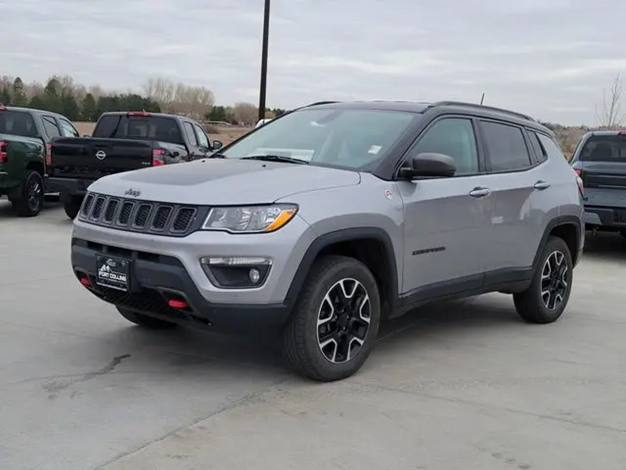 2019 Jeep Compass 2.4L I4 4WD Compass Trailhawk, 4WD, Billet Silver Metallic Clearcoat, Ruby Red/Black Cloth, Quick Order Package 27E (DISC). COMES WITH 3-MONTH/ 3,000-MILE LIMITED WARRANTY. Billet Silver Metallic Clearcoat Trailhawk 9-Speed Automatic 22/30 City/Highway MPG Serving the greater Northern Colorado and Denver area, including Fort Collins, Greeley, Loveland, Highlands Ranch, Broomfield, Longmont, Boulder, Parker, and Thornton.