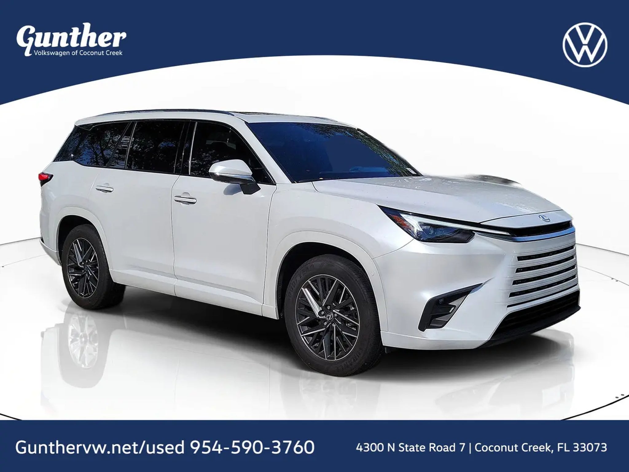 CARFAX One-Owner. White 2025 Lexus TX 350 2.4L I4 Turbocharged 8-Speed Automatic AWD 12 Speakers, 3rd row seats: split-bench, 4-Wheel Disc Brakes, ABS brakes, Air Conditioning, Alloy wheels, AM/FM radio, Auto High-beam Headlights, Auto tilt-away steering wheel, Auto-dimming door mirrors, Auto-dimming Rear-View mirror, Automatic temperature control, Brake assist, Bumpers: body-color, Delay-off headlights, Driver door bin, Driver vanity mirror, Dual front impact airbags, Dual front side impact airbags, Electronic Stability Control, Emergency communication system: Safety Connect (10-year trial), Exterior Parking Camera Rear, Four wheel independent suspension, Front anti-roll bar, Front Bucket Seats, Front Center Armrest, Front dual zone A/C, Front fog lights, Front reading lights, Fully automatic headlights, Garage door transmitter: HomeLink, Heated door mirrors, Heated Front Seats, Heated front seats, Heated steering wheel, Illuminated entry, Knee airbag, Leather Shift Knob, Leather steering wheel, Low tire pressure warning, Navigation system: Drive Connect Cloud Navigation (3-year trial subscription included), NuLuxe Seat Trim, Occupant sensing airbag, Outside temperature display, Overhead airbag, Panic alarm, Passenger door bin, Passenger vanity mirror, Power door mirrors, Power driver seat, Power Liftgate, Power passenger seat, Power steering, Power windows, Radio data system, Radio: Lexus Interface, Rain sensing wipers, Rear air conditioning, Rear anti-roll bar, Rear reading lights, Rear seat center armrest, Rear window defroster, Rear window wiper, Reclining 3rd row seat, Remote keyless entry, Security system, Speed control, Speed-sensing steering, Split folding rear seat, Spoiler, Steering wheel mounted audio controls, Tachometer, Telescoping steering wheel, Tilt steering wheel, Traction control, Trip computer, Turn signal indicator mirrors, Variably intermittent wipers, Wheels: 20 Multi-Spoke Alloy, and Wireless Apple CarPlay/Wireless Android Auto.20/26 City/Highway MPGCALL USED CAR SALES FOR INFORMATION AND IMMEDIATE ASSISTANCE .