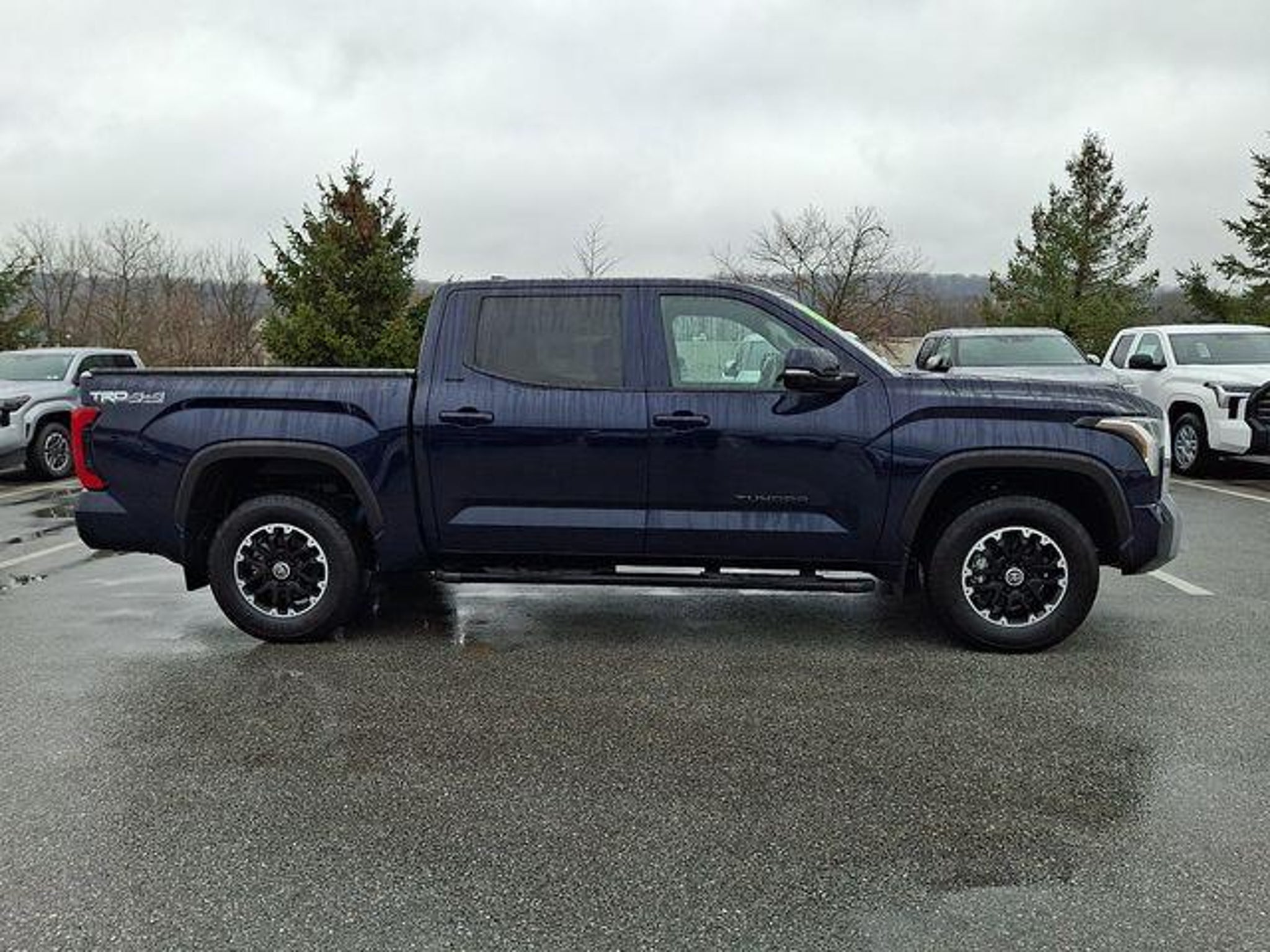 2024 Toyota Tundra in enticing Blueprint!! Includes . Just 16147 miles on this ultimate Large Pick-up. Haven't you been hunting for a Tundra that will make your neighbors drool with envy? When you run an errand, the fantastic 10-Speed Automatic in this Truck keeps you rollin' smoothly and efficiently down the road. On top of it all, this vehicle is priced-to-sell and is easy on your wallet due to massive savings that are available now!! TSRP is not the sales price and does not include taxes, tags, title, adjusted market value, dealer installed equipment (if applicable), and $490 dealer documentary fee. Visit Us Today. Stop by Del Toyota Inc. Located at 2945 E. Lincoln Hwy., Thorndale, PA 19372 for a quick visit and a great vehicle! Questions . Here is a list of the vehicles features SR5 Convenience Package (32 Gallon Fuel Tank, Blind Spot Monitor w/Lane Change Assist, and Parking Support Alert/Brake), TRD Off-Road Package (Front & Rear Mud Guards), Tundra SR5, 4D CrewMax, 3.4L V6, 10-Speed Automatic, 4WD, Blueprint, Black w/Fabric Seat Trim (FB) or SofTex Seat Trim or Fabric Seat Trim, 18 Alloy Wheels, 3.31 Axle Ratio, 4-Way Adjustable Front Bucket Seats, 4-Wheel Disc Brakes, 9 Speakers, ABS brakes, Air Conditioning, Alloy wheels, AM/FM radio: SiriusXM, Apple CarPlay/Android Auto, Auto High-beam Headlights, Automatic temperature control, Brake assist, Bumpers: body-color, Delay-off headlights, Driver door bin, Driver vanity mirror, Dual front impact airbags, Dual front side impact airbags, Electronic Stability Control, Emergency communication system: Safety Connect (10-year trial), Exterior Parking Camera Rear, Fabric Seat Trim (FB), Front anti-roll bar, Front Bucket Seats, Front Center Armrest, Front fog lights, Front reading lights, Front wheel independent suspension, Fully automatic headlights, Heated door mirrors, Illuminated entry, Knee airbag, Low tire pressure warning, Occupant sensing airbag, Outside temperature display, Overhead airbag, Overhead console, Panic alarm, Passenger door bin, Passenger vanity mirror, Power door mirrors, Power steering, Power windows, Radio data system, Radio: Audio Multimedia System, Rear reading lights, Rear step bumper, Rear window defroster, Remote keyless entry, Safety Connect, Security system, Speed control, Speed-sensing steering, Split folding rear seat, Steering wheel mounted audio controls, Tachometer, Telescoping steering wheel, Tilt steering wheel, Traction control, Trip computer, Variably intermittent wipers, and Voltmeter TSRP is not the sales price and does not include taxes, tags, title, adjusted market value, dealer installed equipment (if applicable), and $490 dealer documentary fee.