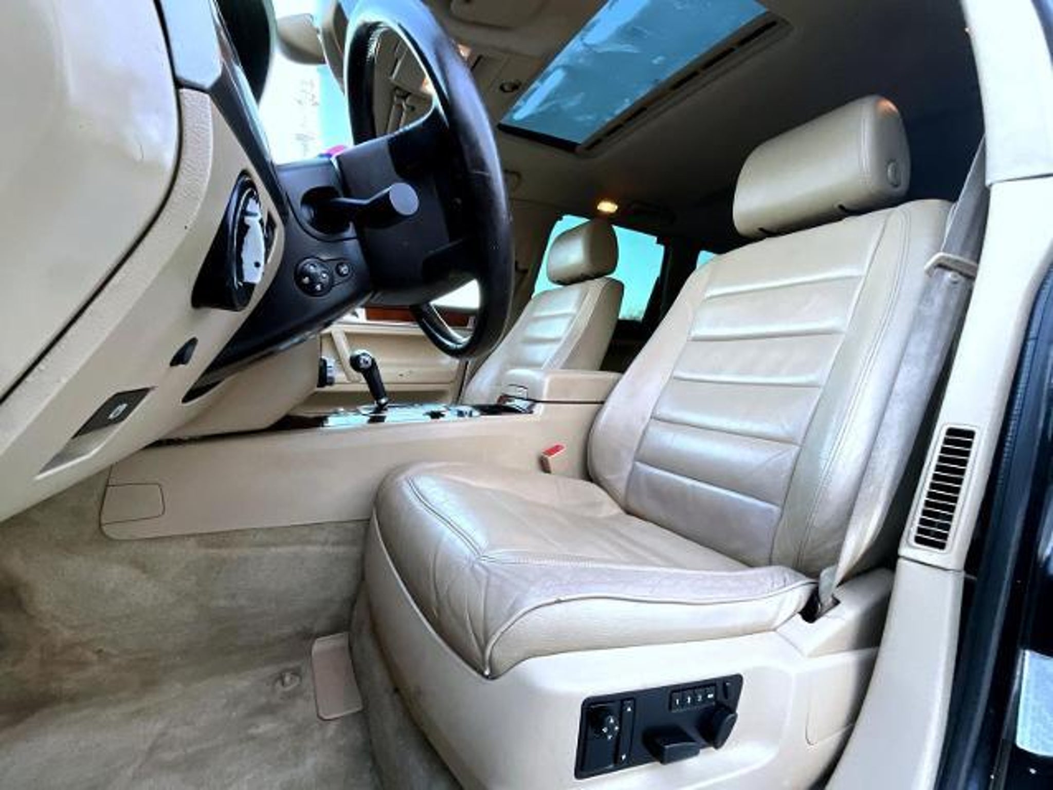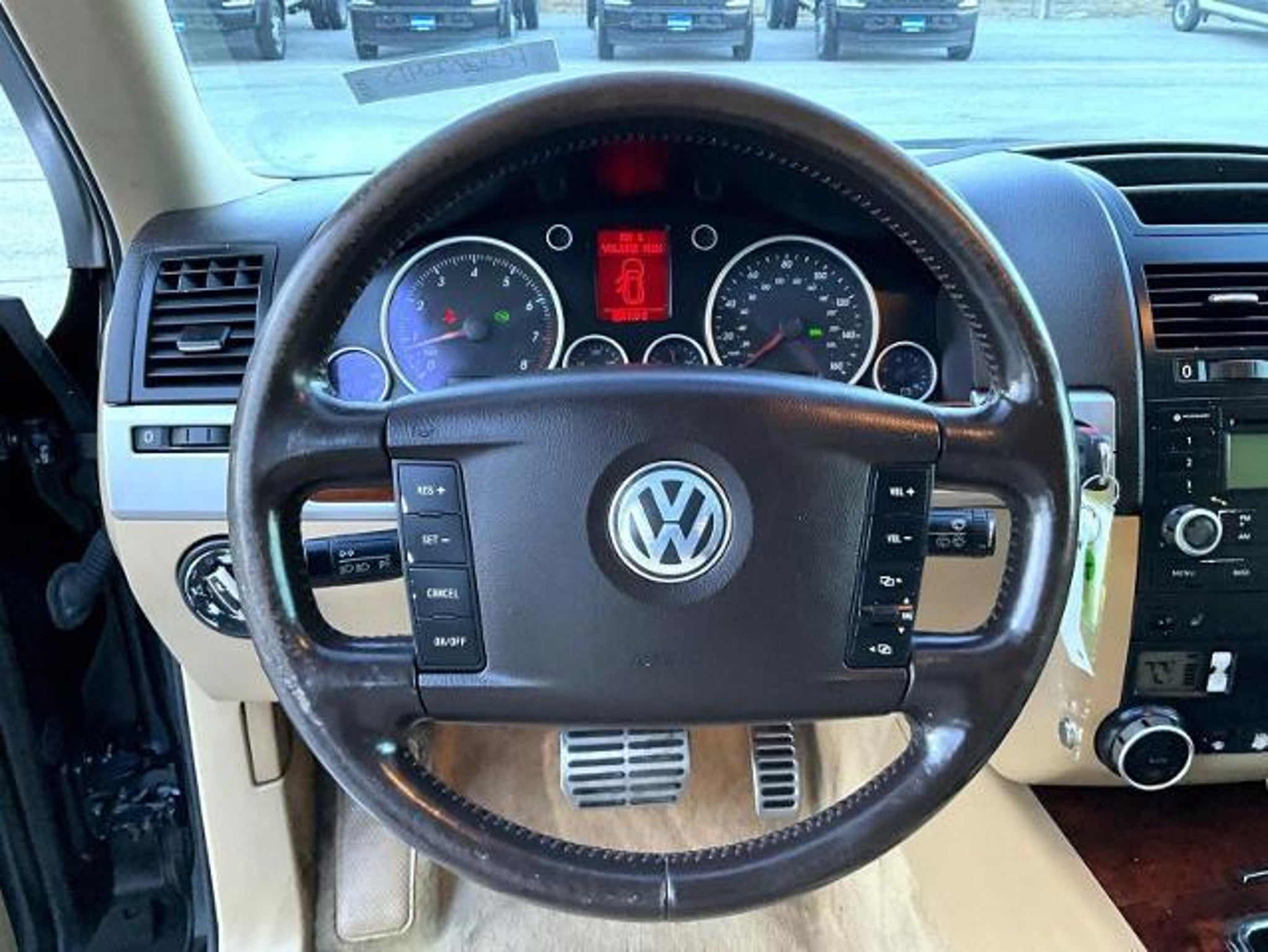 Black 2005 Volkswagen Touareg V8 Sport AWD 6-Speed Automatic with Tiptronic 4.2L V8 4.2L V8, Leather, 10 Speakers, 4-Wheel Disc Brakes, 4.56 Axle Ratio, 8.0J x 18 Alloy Wheels, ABS brakes, Air Conditioning, Alloy wheels, AM/FM radio, Auto-dimming door mirrors, Auto-dimming Rear-View mirror, Automatic temperature control, Brake assist, Bumpers: body-color, CD player, Compass, Cricket Leather Seat Trim, Delay-off headlights, Driver door bin, Driver vanity mirror, Dual front impact airbags, Dual front side impact airbags, Electronic Stability Control, Four wheel independent suspension, Front anti-roll bar, Front Bucket Seats, Front Center Armrest w/Storage, Front dual zone A/C, Front fog lights, Front reading lights, Garage door transmitter: HomeLink (R), Genuine wood console insert, Genuine wood dashboard insert, Genuine wood door panel insert, Heatable Front Bucket Seats, Heated door mirrors, Heated front seats, Illuminated entry, Leather Shift Knob, Leather steering wheel, Memory seat, Occupant sensing airbag, Outside temperature display, Overhead airbag, Overhead console, Panic alarm, Passenger door bin, Passenger vanity mirror, Power door mirrors, Power driver seat, Power moonroof, Power passenger seat, Power steering, Power windows, Radio data system, Rain sensing wipers, Rear anti-roll bar, Rear reading lights, Rear seat center armrest, Rear window defroster, Rear window wiper, Regular Ride Suspension, Remote keyless entry, Roof rack, Security system, Speed control, Split folding rear seat, Steering wheel mounted audio controls, Tachometer, Telescoping steering wheel, Tilt steering wheel, Traction control, Trip computer, Turn signal indicator mirrors, Variably intermittent wipers, Voltmeter, 4.2L V8, Leather. Step into affordability and reliability when you shop for your next pre-owned vehicle at Woodhouse Ford of Omaha. Whether youâre in need of a rugged truck or fuel-efficient SUV, our diverse selection has something for every driver and budget. Backed up competitive pricing, flexible finance options, and the assurance of our dealershipâs commitment to customer satisfaction, you can shop with confidence knowing that youâre getting expectational value with every purchase. Start your car-buying journey in-store or online today! Recent Arrival! Tax, title and license extra. Prices are subject to change, and prior sales are excluded from these offers. While every reasonable effort is made to ensure the accuracy of this information, we are not responsible for any errors or omissions contained on