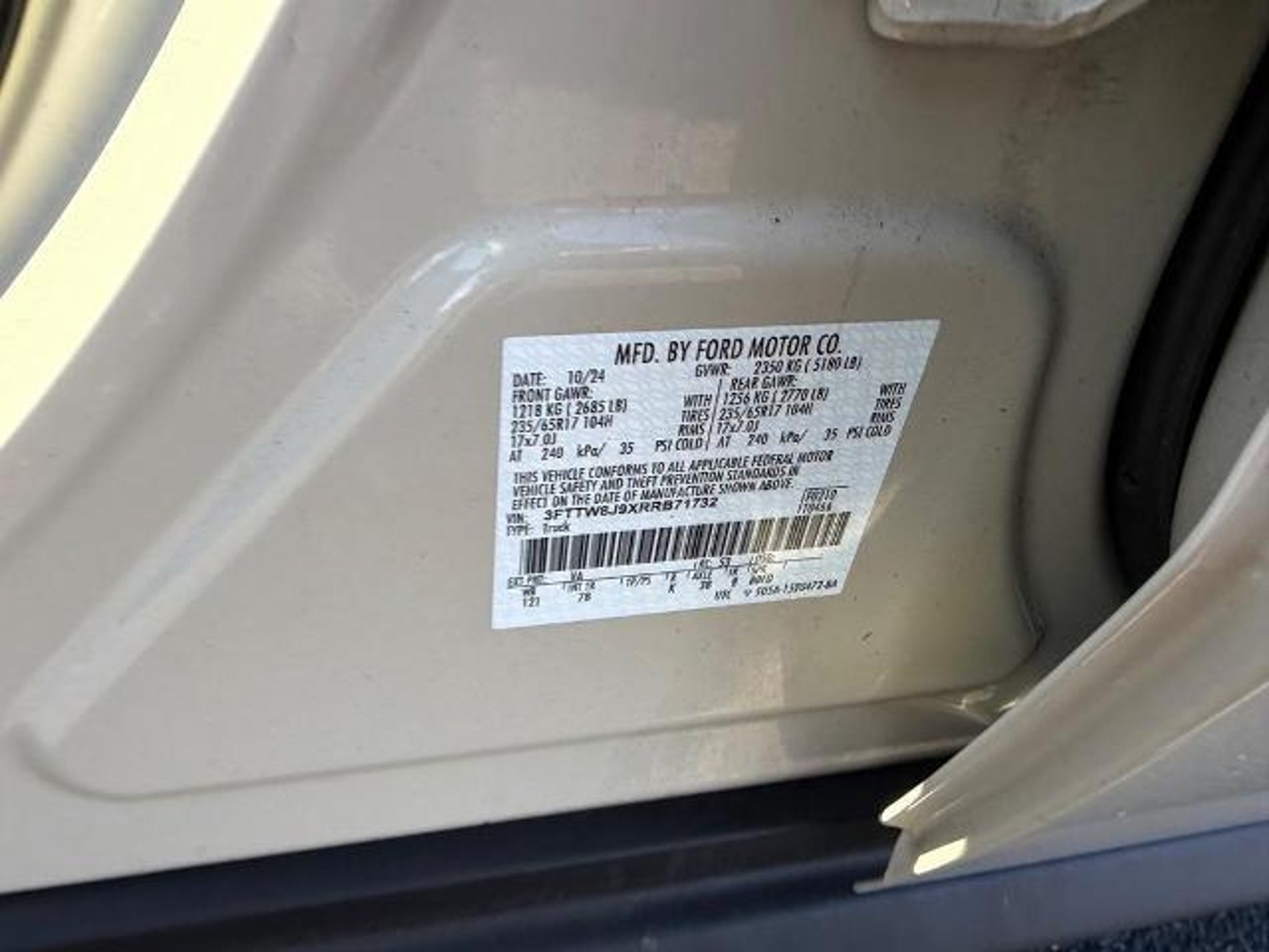 VIN 3FTTW8J9XRRB71732