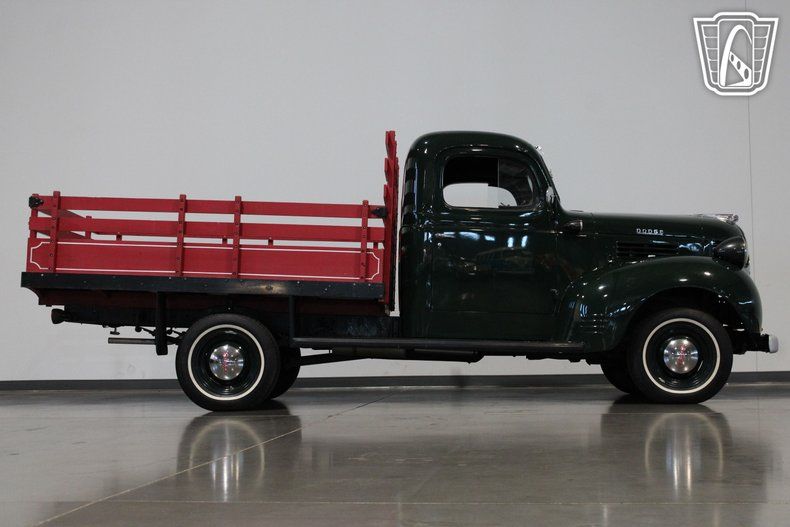 Gateway Classic Cars of Scottsdale is proud to digitally present this 1947 Dodge 1/2-Ton Pickup. Painted in a rich green exterior that exudes vintage appeal, this truck is a testament to the craftsmanship and design of post-war America. Slide into the gray vinyl interior, and you'll immediately feel the simplicity and functionality that defined vehicles of this era. The bench seat invites you to settle in, while the large steering wheel and classic dashboard layout transport you to a time when driving was as much about the journey as the destination.