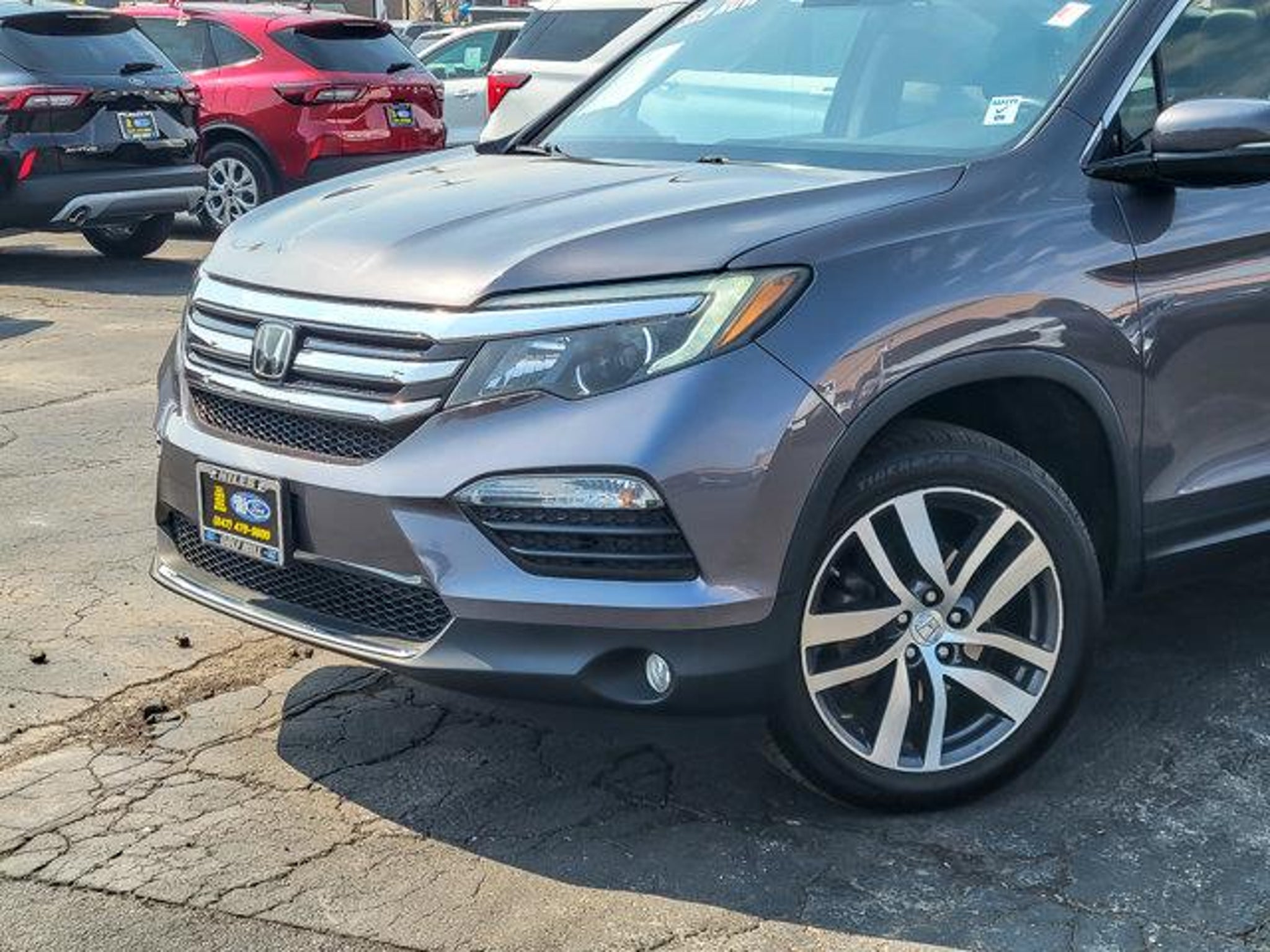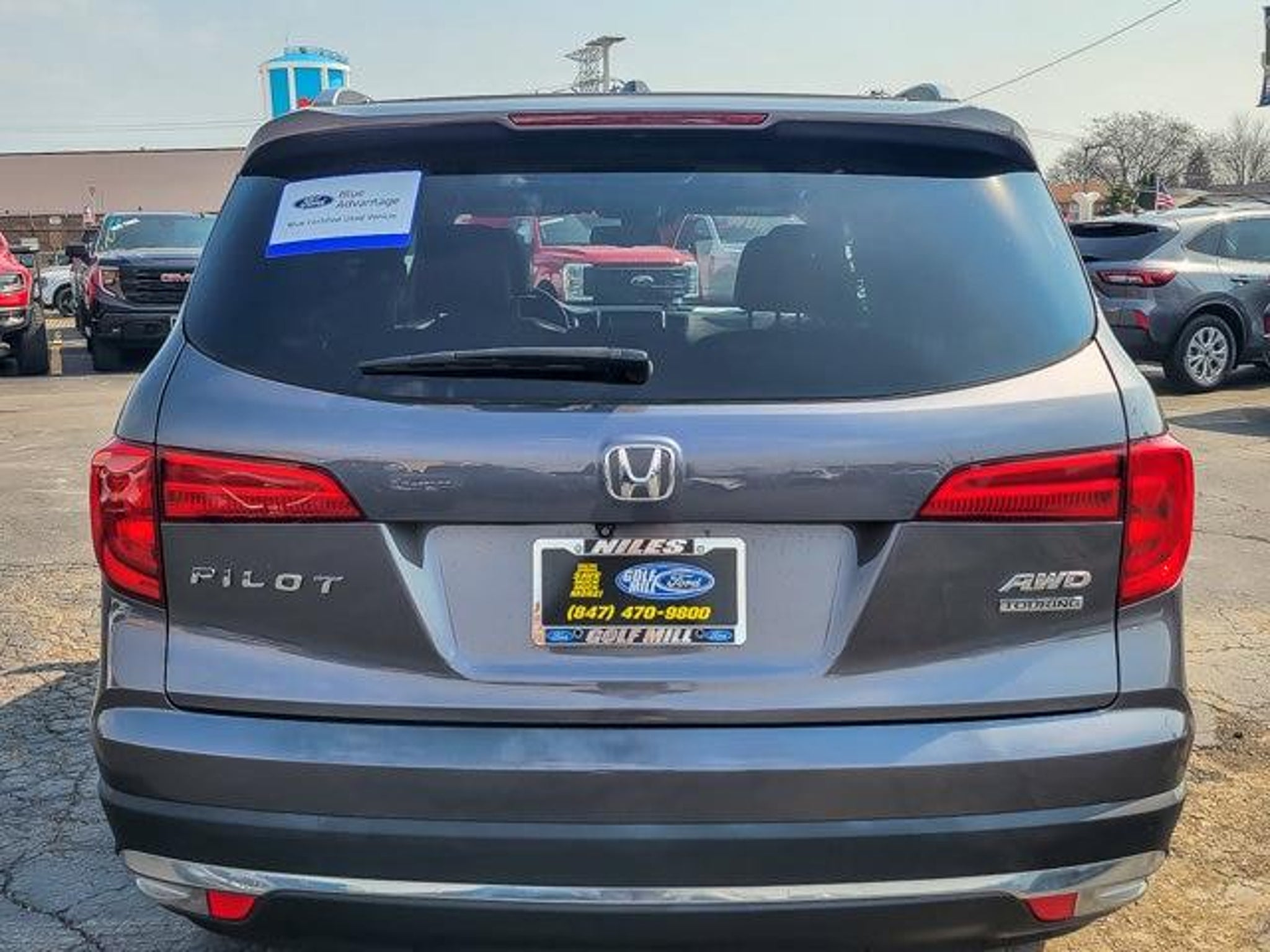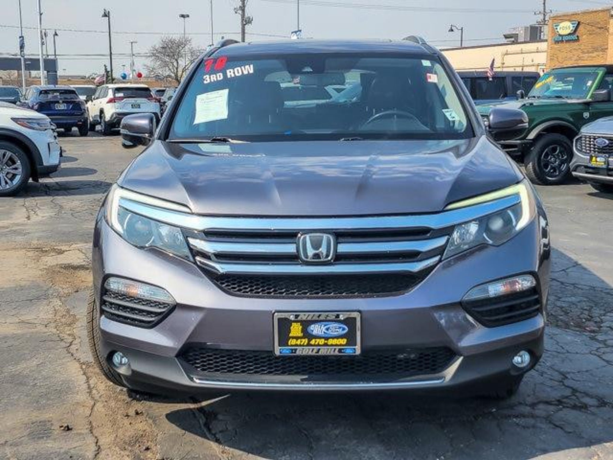 2018 Honda Pilot Touring Modern Steel Metallic AWD 4D Sport Utility 3.5L V6 24V SOHC i-VTEC 9-Speed Automatic 19/26 City/Highway MPG **With some available options like Ford Blue Advantage: Blue Certified Certified, AWD, 10 Speakers, 20 Alloy Wheels, 3rd row seats: split-bench, 4-Wheel Disc Brakes, 4.334 Axle Ratio, A/V remote, ABS brakes, Air Conditioning, Alloy wheels, AM/FM radio: SiriusXM, Apple CarPlay/Android Auto, Auto-dimming Rear-View mirror, Automatic temperature control, Brake assist, Bumpers: body-color, Compass, Delay-off headlights, Driver door bin, Driver vanity mirror, Dual front impact airbags, Dual front side impact airbags, Electronic Stability Control, Exterior Parking Camera Rear, Four wheel independent suspension, Front anti-roll bar, Front Bucket Seats, Front Center Armrest, Front dual zone A/C, Front fog lights, Front reading lights, Fully automatic headlights, Garage door transmitter: HomeLink, Headphones, Heated door mirrors, Heated Front Bucket Seats, Heated front seats, Honda Satellite-Linked Navigation System, Illuminated entry, Leather Shift Knob, Leather-Trimmed Seats, Low tire pressure warning, Memory seat, Navigation System, Occupant sensing airbag, Outside temperature display, Overhead airbag, Overhead console, Panic alarm, Passenger door bin, Passenger vanity mirror, Power door mirrors, Power driver seat, Power Liftgate, Power moonroof, Power passenger seat, Power steering, Power windows, Radio data system, Radio: AM/FM Premium Audio System, Rear air conditioning, Rear anti-roll bar, Rear audio controls, Rear reading lights, Rear seat center armrest, Rear window defroster, Rear window wiper, Remote keyless entry, Roof rack: rails only, Security system, SiriusXM Radio, Speed control, Speed-sensing steering, Speed-Sensitive Wipers, Split folding rear seat, Spoiler, Steering wheel mounted audio controls, Tachometer, Telescoping steering wheel, Tilt steering wheel, Traction control, Trip computer, Turn signal indicator mirrors, and Variably intermittent wipers ** AWD. Odometer is 14941 miles below market average! 19/26 City/Highway MPG Certified. Certification Program Details: Ford Blue Advantage: Blue Certified * 139 Point Inspection * Transferable Warranty * Vehicle History * Warranty Deductible: $100 * Roadside Assistance * Limited Warranty: 3 Month/4,000 Mile (whichever comes first) after new car warranty expires or from certified purchase date * and 11,000 FordPass Rewards Points to use toward first maintenance visit #1 VOLUME FORD DEALER IN ILLINOIS & THE ENTIRE MID