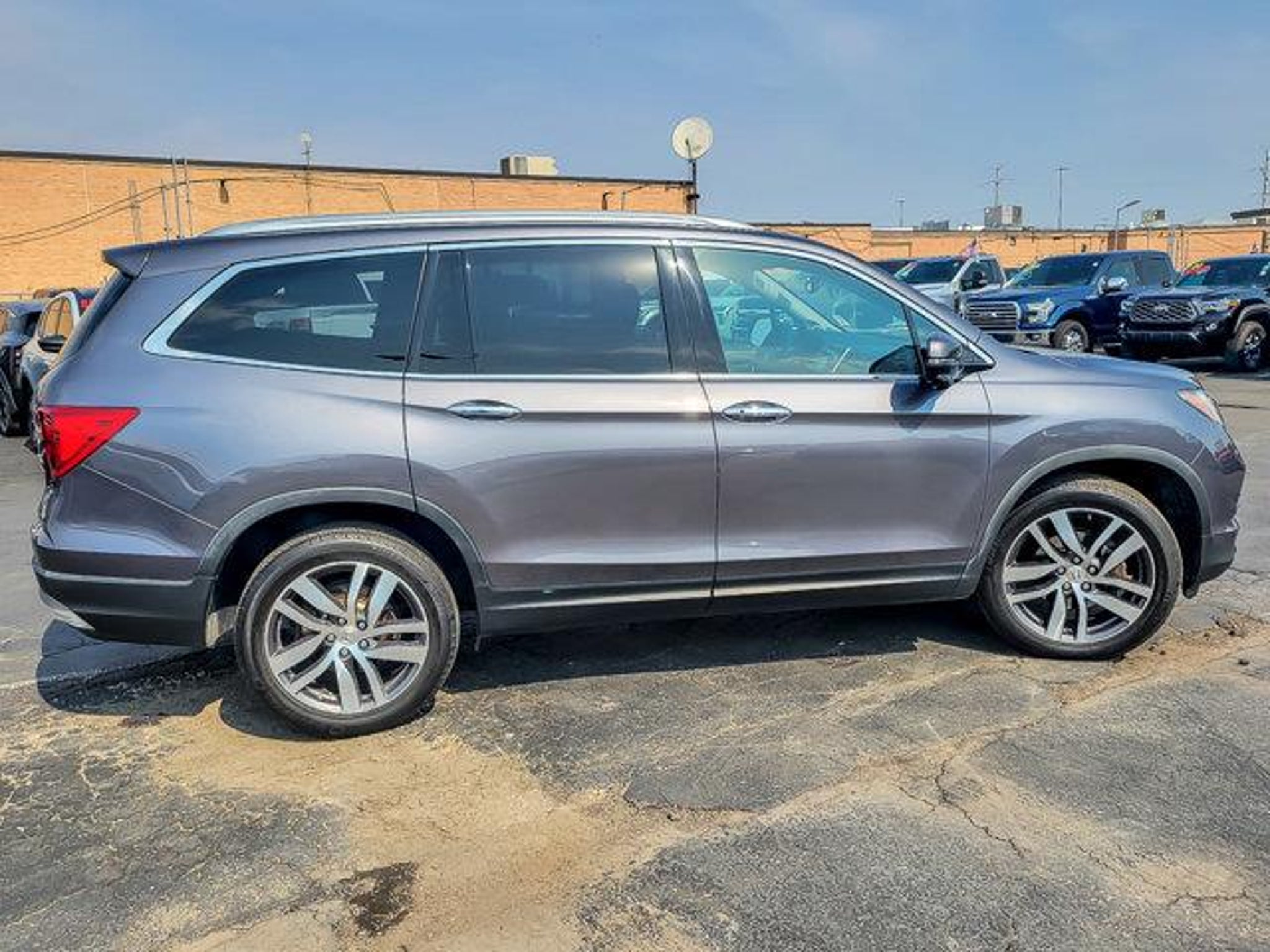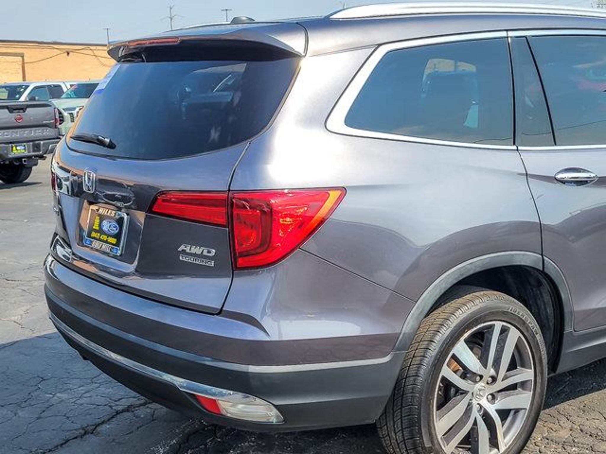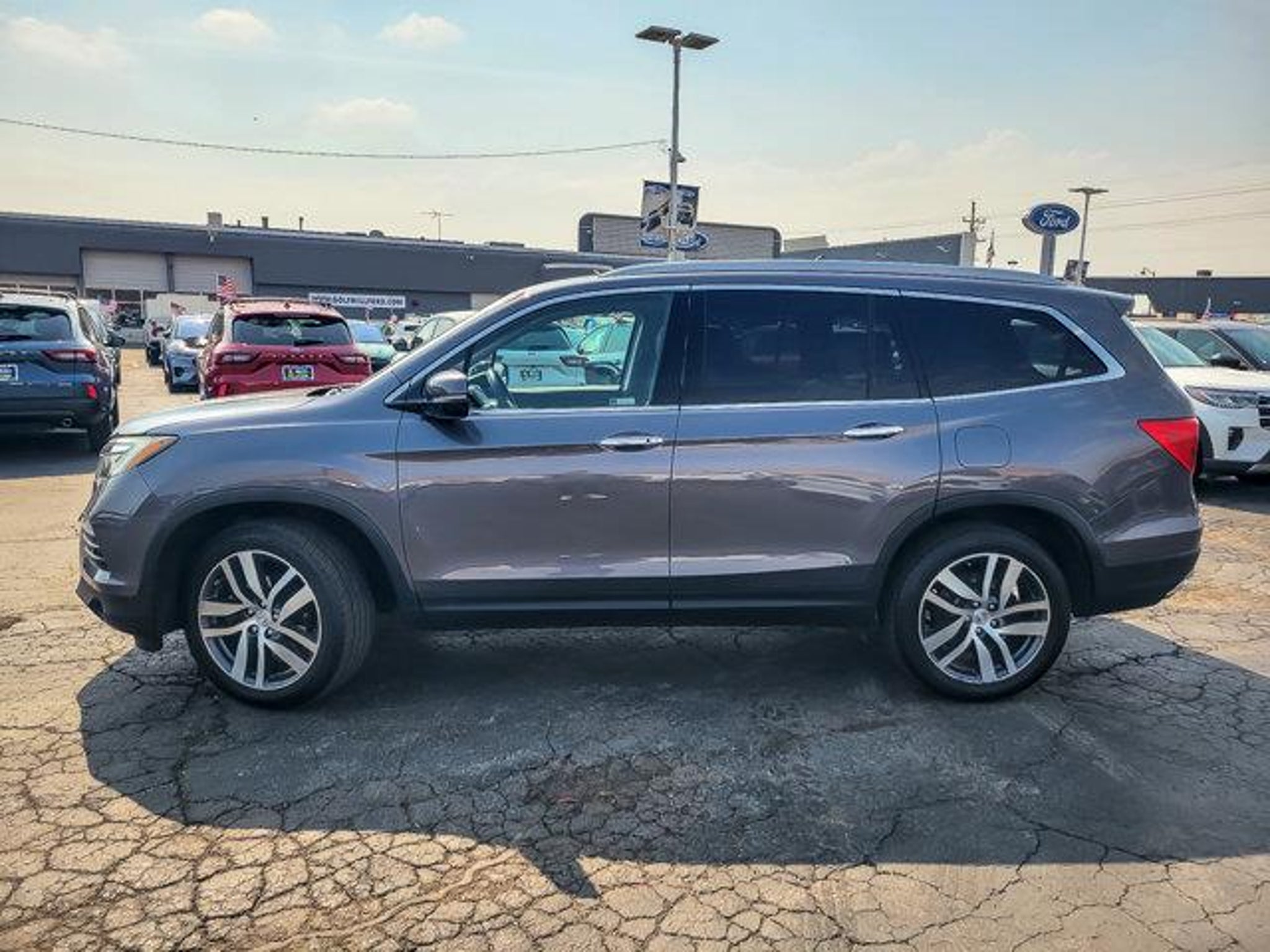 2018 Honda Pilot Touring Modern Steel Metallic AWD 4D Sport Utility 3.5L V6 24V SOHC i-VTEC 9-Speed Automatic 19/26 City/Highway MPG **With some available options like Ford Blue Advantage: Blue Certified Certified, AWD, 10 Speakers, 20 Alloy Wheels, 3rd row seats: split-bench, 4-Wheel Disc Brakes, 4.334 Axle Ratio, A/V remote, ABS brakes, Air Conditioning, Alloy wheels, AM/FM radio: SiriusXM, Apple CarPlay/Android Auto, Auto-dimming Rear-View mirror, Automatic temperature control, Brake assist, Bumpers: body-color, Compass, Delay-off headlights, Driver door bin, Driver vanity mirror, Dual front impact airbags, Dual front side impact airbags, Electronic Stability Control, Exterior Parking Camera Rear, Four wheel independent suspension, Front anti-roll bar, Front Bucket Seats, Front Center Armrest, Front dual zone A/C, Front fog lights, Front reading lights, Fully automatic headlights, Garage door transmitter: HomeLink, Headphones, Heated door mirrors, Heated Front Bucket Seats, Heated front seats, Honda Satellite-Linked Navigation System, Illuminated entry, Leather Shift Knob, Leather-Trimmed Seats, Low tire pressure warning, Memory seat, Navigation System, Occupant sensing airbag, Outside temperature display, Overhead airbag, Overhead console, Panic alarm, Passenger door bin, Passenger vanity mirror, Power door mirrors, Power driver seat, Power Liftgate, Power moonroof, Power passenger seat, Power steering, Power windows, Radio data system, Radio: AM/FM Premium Audio System, Rear air conditioning, Rear anti-roll bar, Rear audio controls, Rear reading lights, Rear seat center armrest, Rear window defroster, Rear window wiper, Remote keyless entry, Roof rack: rails only, Security system, SiriusXM Radio, Speed control, Speed-sensing steering, Speed-Sensitive Wipers, Split folding rear seat, Spoiler, Steering wheel mounted audio controls, Tachometer, Telescoping steering wheel, Tilt steering wheel, Traction control, Trip computer, Turn signal indicator mirrors, and Variably intermittent wipers ** AWD. Odometer is 14941 miles below market average! 19/26 City/Highway MPG Certified. Certification Program Details: Ford Blue Advantage: Blue Certified * 139 Point Inspection * Transferable Warranty * Vehicle History * Warranty Deductible: $100 * Roadside Assistance * Limited Warranty: 3 Month/4,000 Mile (whichever comes first) after new car warranty expires or from certified purchase date * and 11,000 FordPass Rewards Points to use toward first maintenance visit #1 VOLUME FORD DEALER IN ILLINOIS & THE ENTIRE MID