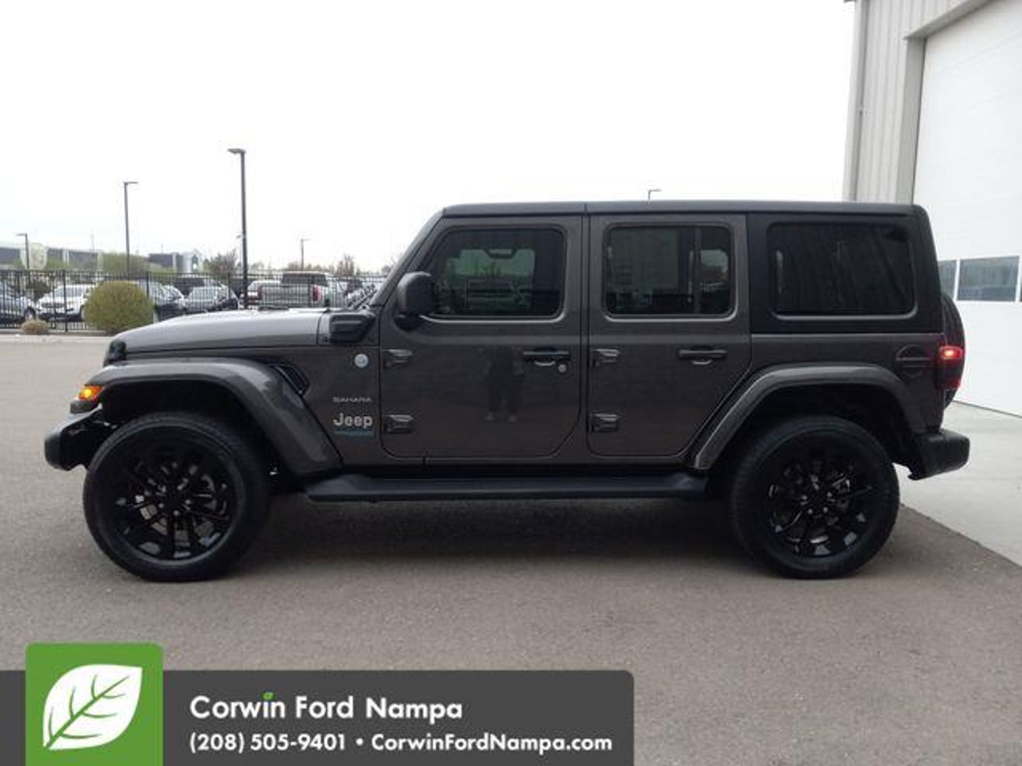 2022 Jeep Wrangler Unlimited Sahara 4xe Available at Corwin Ford Nampa located in the Idaho Center Auto Mall. Priced below KBB Fair Purchase Price! Odometer is 2344 miles below market average! 2.0L I4 DOHC. 2022 Jeep Wrangler Unlimited Sahara 4xe 4WD 2.0L I4 DOHC Granite Crystal Metallic Clearcoat Corwin Ford Nampa! Based upon current new inventory shortages, deals subject to dealer approval based upon trade, loyalty, and proximity to dealership. Friendly service and aggressive pricing is why we are your new and pre-owned vehicle dealer serving, Nampa, Boise, Meridian, Caldwell, Kuna, Eagle, Emmett, Idaho City, Wilder, New Plymouth, Star, Middleton, Weiser, Payette, Horseshoe Bend, Mountain Home, Idaho, and surrounding states. Although every reasonable effort has been made to ensure the accuracy of the information contained on this site, absolute accuracy cannot be guaranteed. This site, and all information and materials appearing on it, are presented to the user as is without warranty of any kind, either express or implied. All vehicles are subject to prior sale. Price does not include applicable tax, title, and $499 Dealer Documentation.