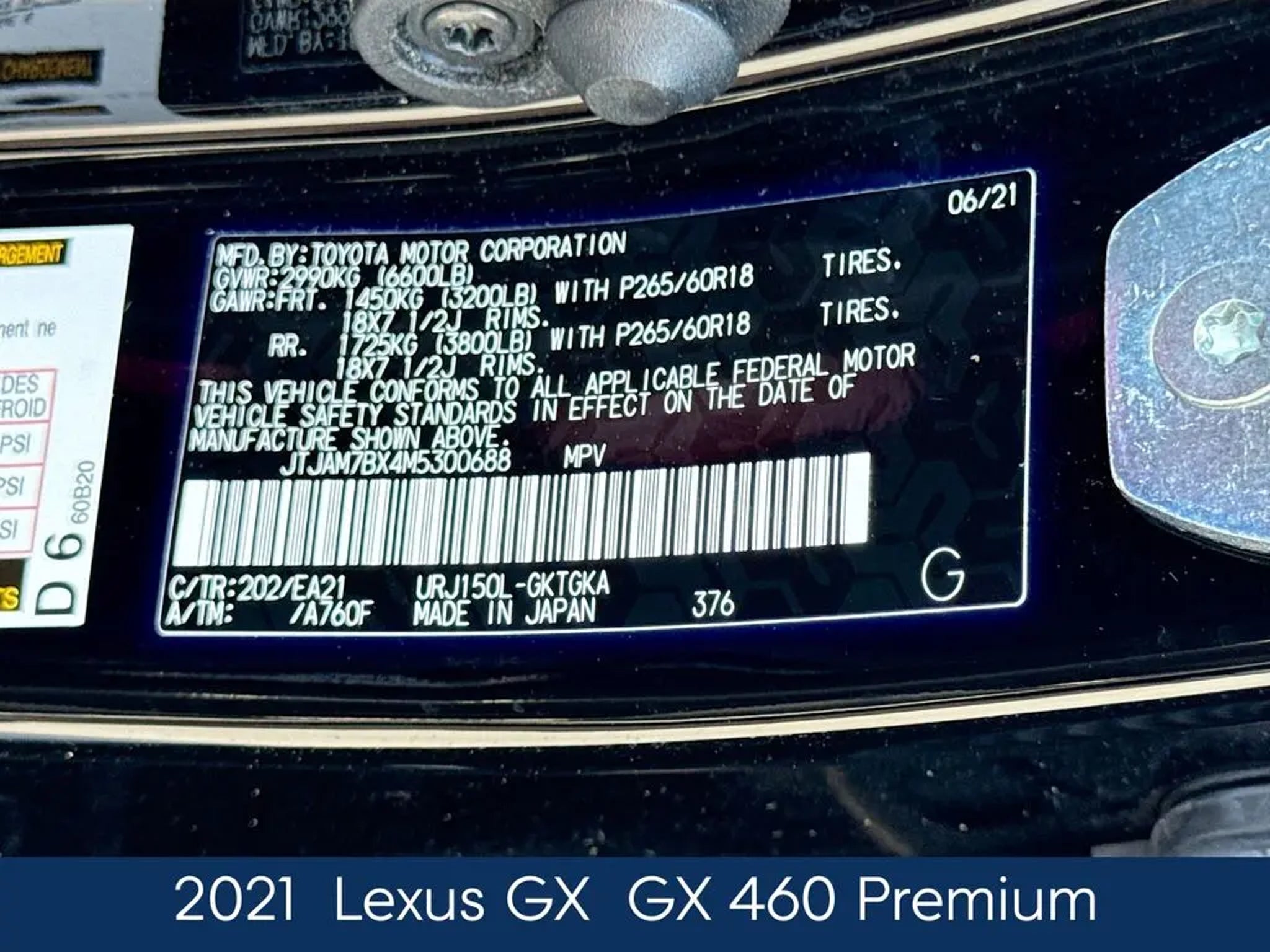 2021 Lexus GX 460 Recent Arrival! CARFAX One-Owner. Pre-delivery services completed: Changed oil/filter, replaced 3 tires, alignment, replaced engine/cabin air filter, replaced wiper blades & washed/detailed vehicle. Discover the exceptional 2021 Lexus GX 460, a premium SUV that redefines the driving experience. With its commanding presence and uncompromising craftsmanship, this vehicle is the perfect blend of luxury, capability, and style. Tailored to your needs, this GX 460 comes equipped with a host of premium features, including - a Premium Package with ventilated front seats, a windshield deicer, LED fog and driving lamps, dual-zone automatic climate control, and heated front and rear seats; a Tow Hitch Receiver with Ball Mount; and an Accessory Package featuring key gloves, alloy wheel locks, a cargo mat, and a cargo net. The heart of this SUV is its powerful 4.6L V8 engine, paired with a smooth-shifting 6-speed automatic transmission and robust 4-wheel drive system. This potent powertrain delivers an exceptional balance of performance and efficiency, with an EPA-estimated 19 MPG on the highway. Slip behind the wheel and experience the refined comfort of the NuLuxe-trimmed interior, complete with a memory driver's seat, power-adjustable front seats, and a premium Lexus Multimedia System. The spacious cabin offers seating for up to eight, along with ample cargo space for all your adventures. Safety is paramount in the GX 460, with features like a rearview camera, Intuitive Parking Assist, and a comprehensive suite of airbags. Plus, the Lexus Safety Connect system provides added peace of mind, with features like automatic collision notification and emergency assistance. Whether you're navigating the city streets or exploring the great outdoors, the 2021 Lexus GX 460 is the perfect companion. Its exceptional build quality, impressive capabilities, and unparalleled attention to detail make it a true standout in the luxury SUV segment. We invite you to experience the exceptional 2021 Lexus GX 460 for yourself. Schedule a test drive today and discover the difference that Lexus craftsmanship and innovation can make in your driving experience.